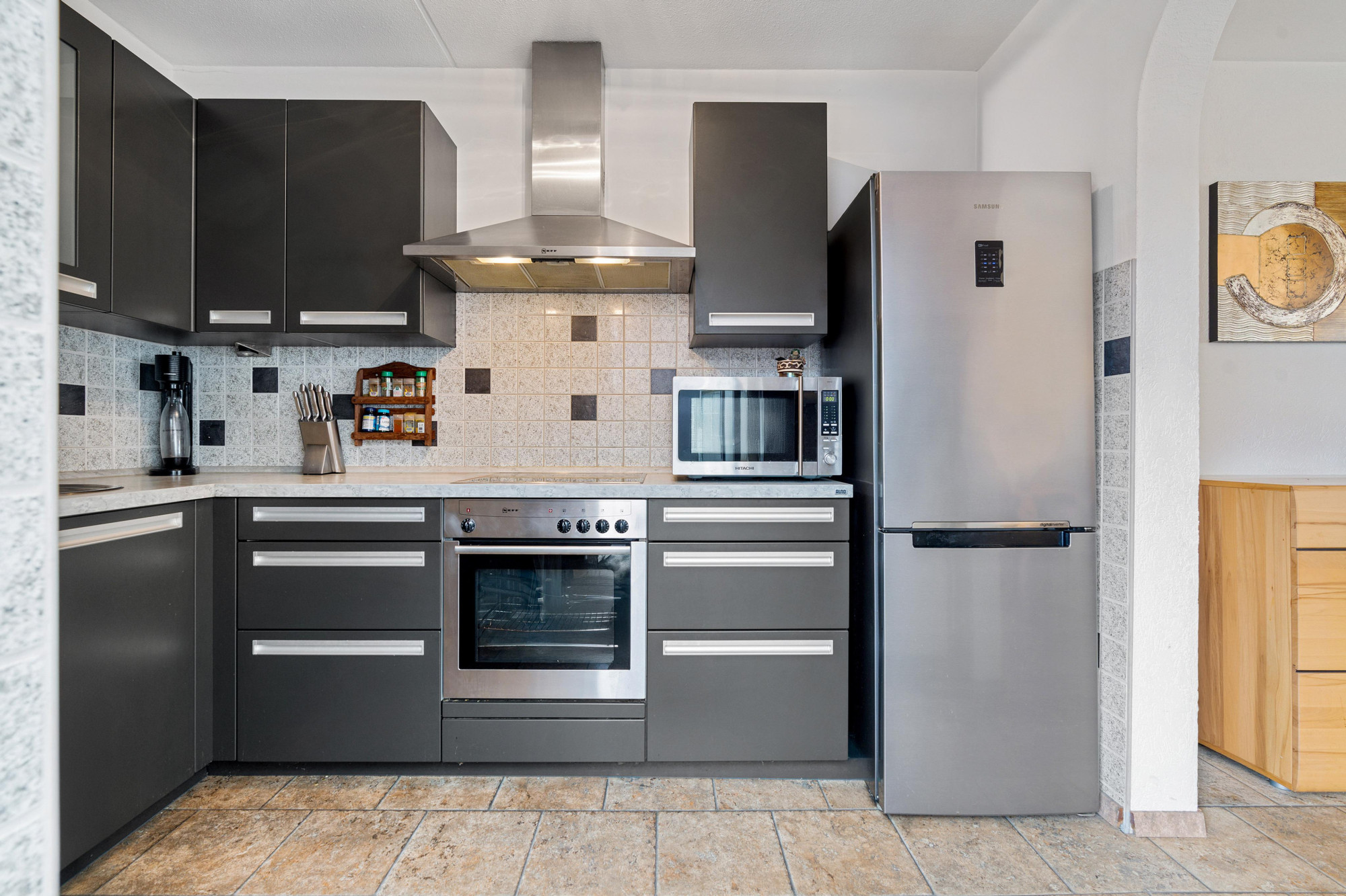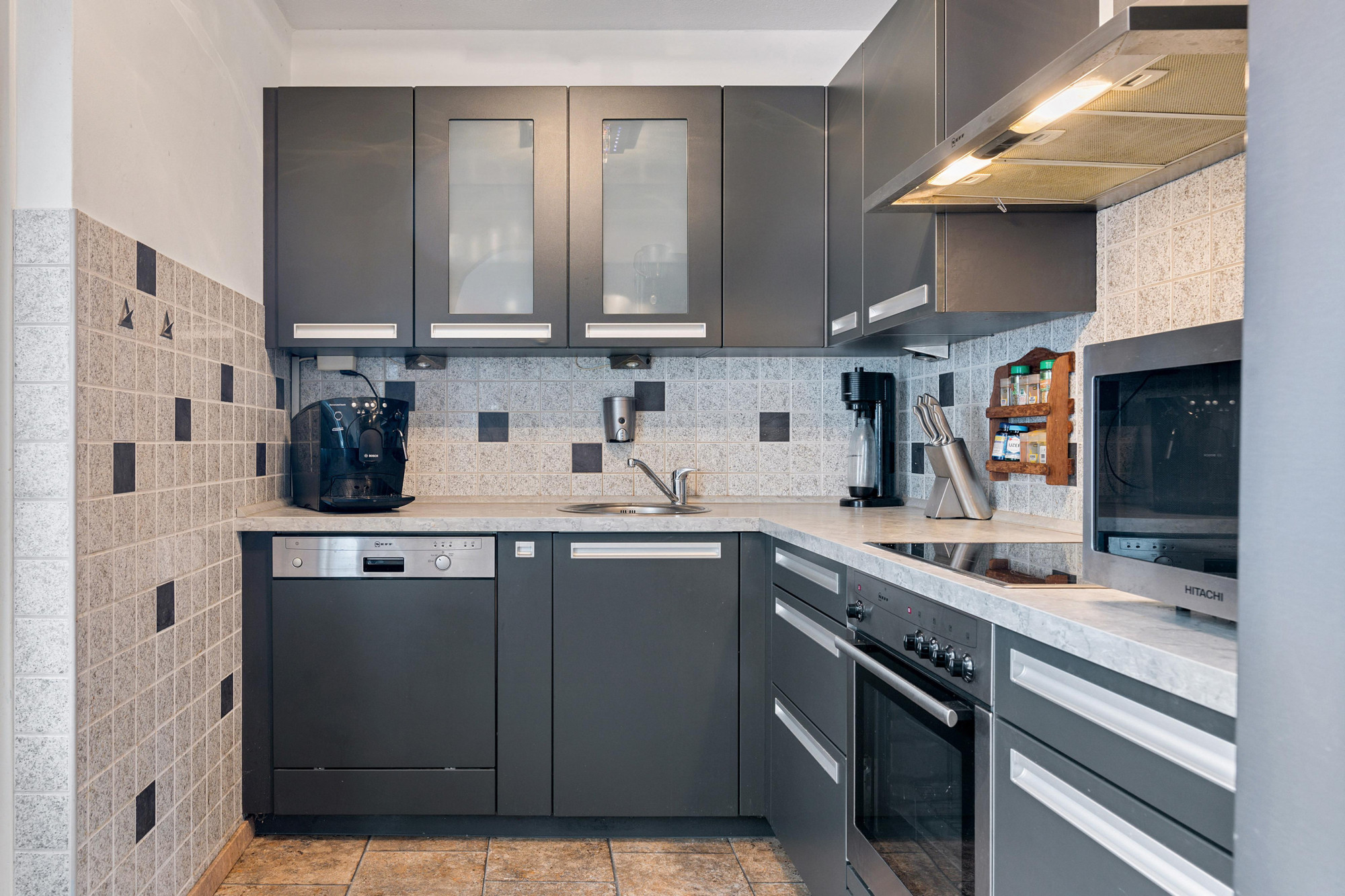 Semi open keuken (3.17mx1.98m) is voorzien van een vaatwasser, kookplaat, afzuigkap.