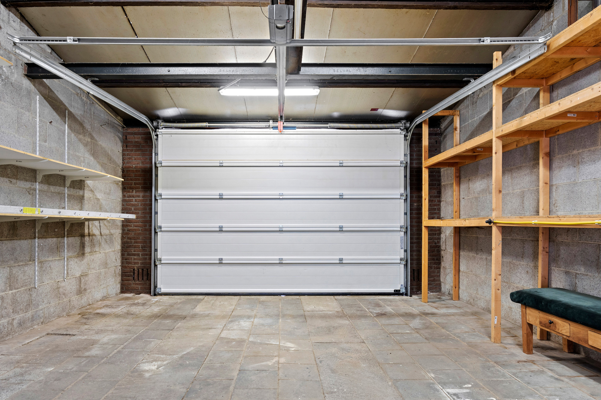 Via de zij-ingang, bereikbaar via een afsluitbare poort, kom je in de achtertuin. Achterin de tuin ligt de ruime dubbele garage, bereikbaar via een binnenplaats en voorzien van een automatische poort.