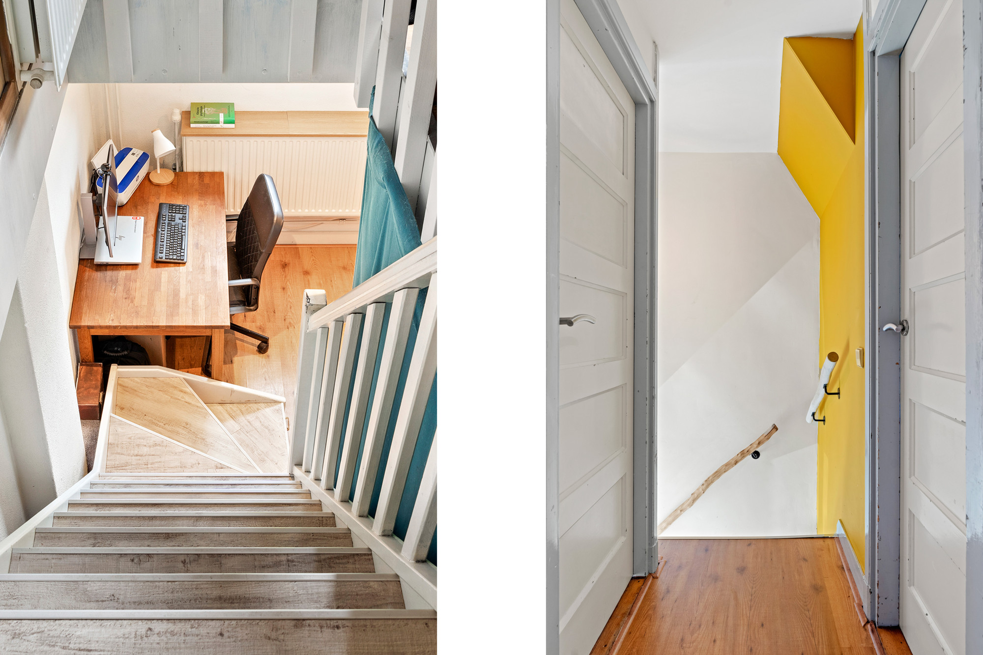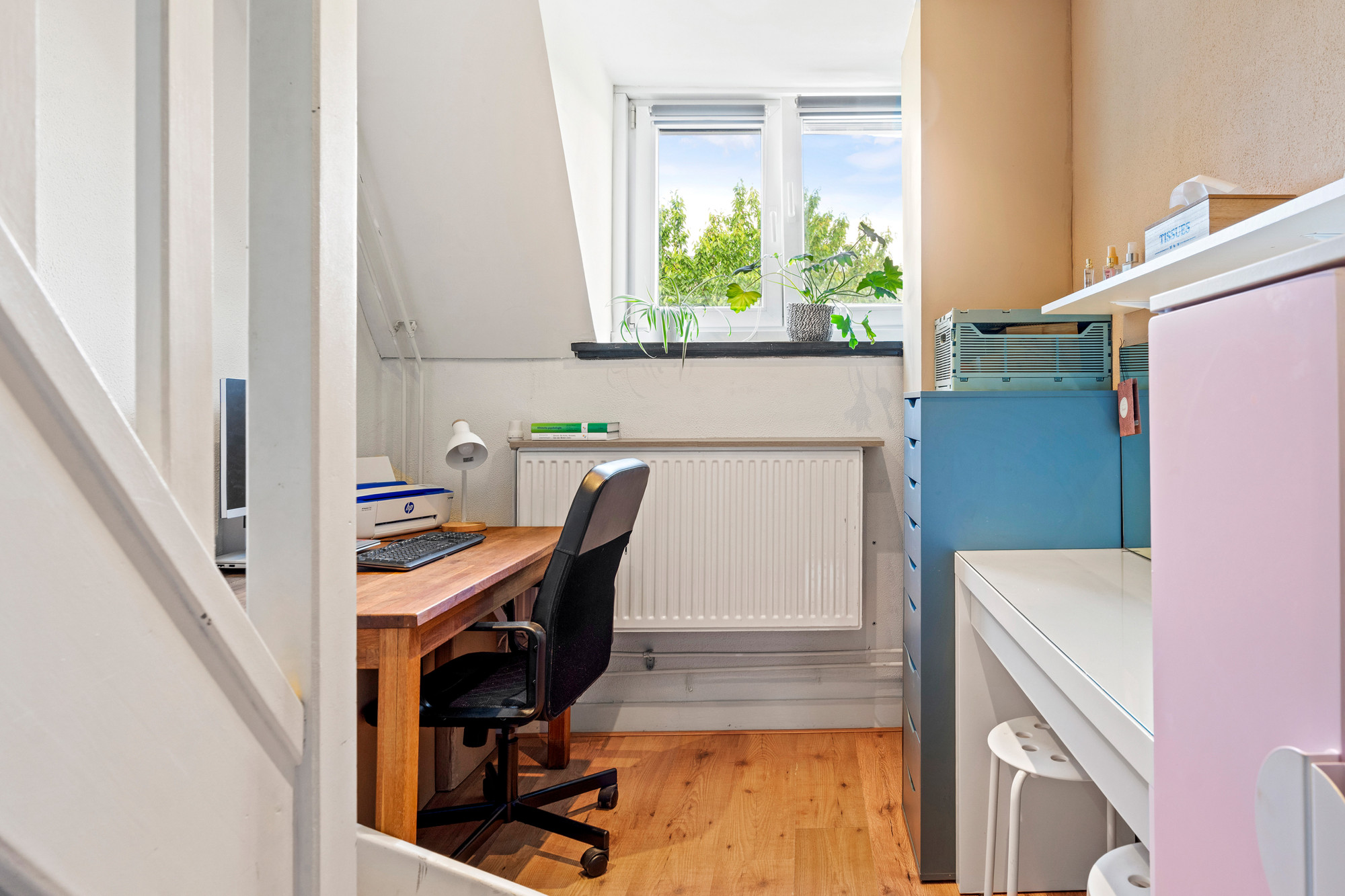 Grenzend aan de trap naar boven bevindt zich een derde kamer. Deze wordt momenteel gebruikt als werk- of studieruimte, maar is dankzij de praktische indeling ook uitstekend geschikt om in te richten als extra slaapkamer.