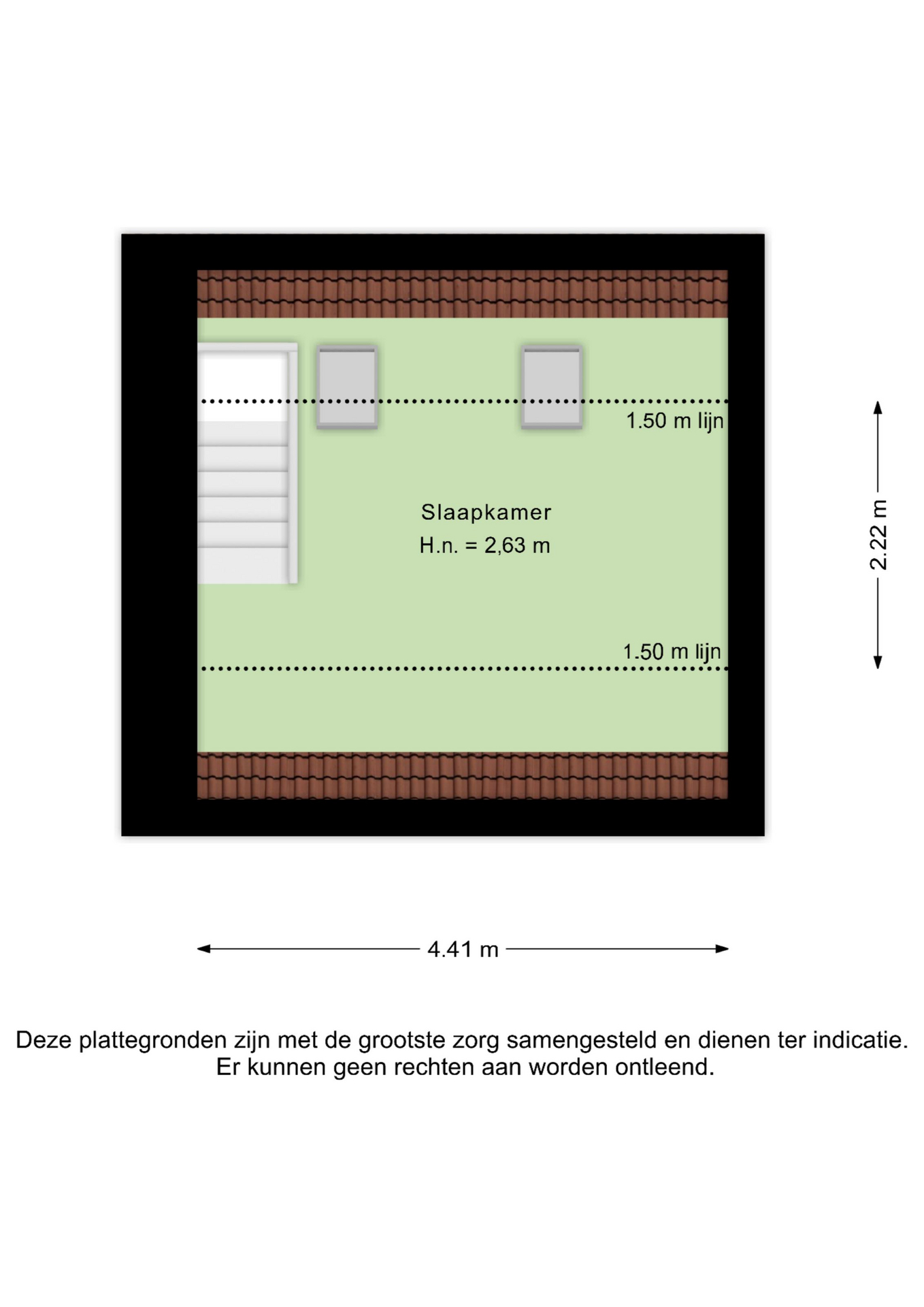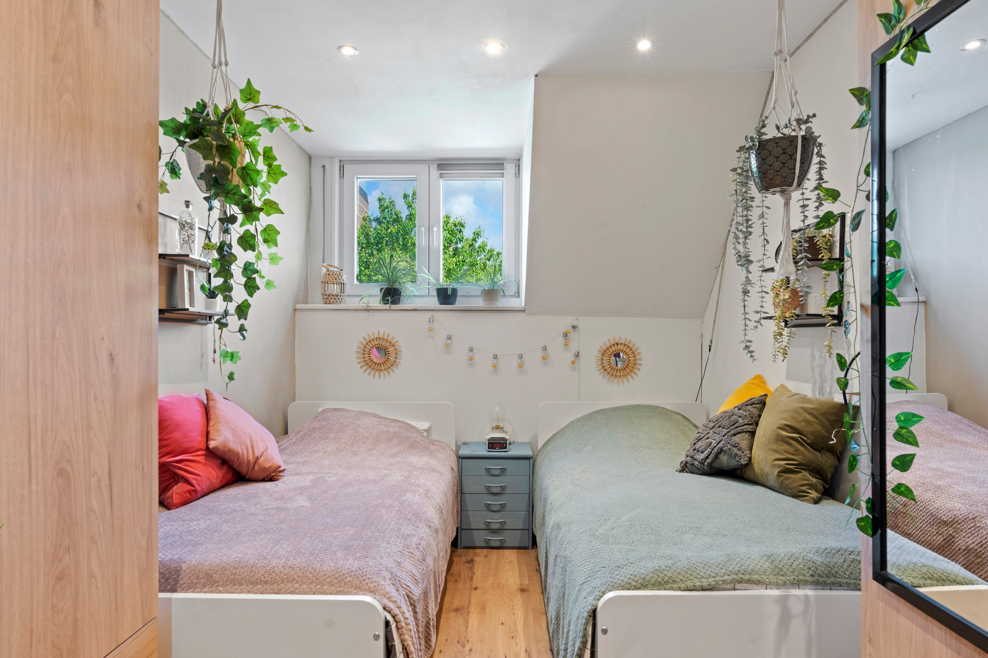De tweede verdieping is ingericht als derde slaapkamer (ca. 4.41 x 2.37 m, hoogte ca. 2.00 m), voorzien van een laminaatvloer en twee kantelramen, wat zorgt voor een prettige lichtinval. Deze ruimte is perfect als slaapkamer, hobbykamer of thuiskantoor.