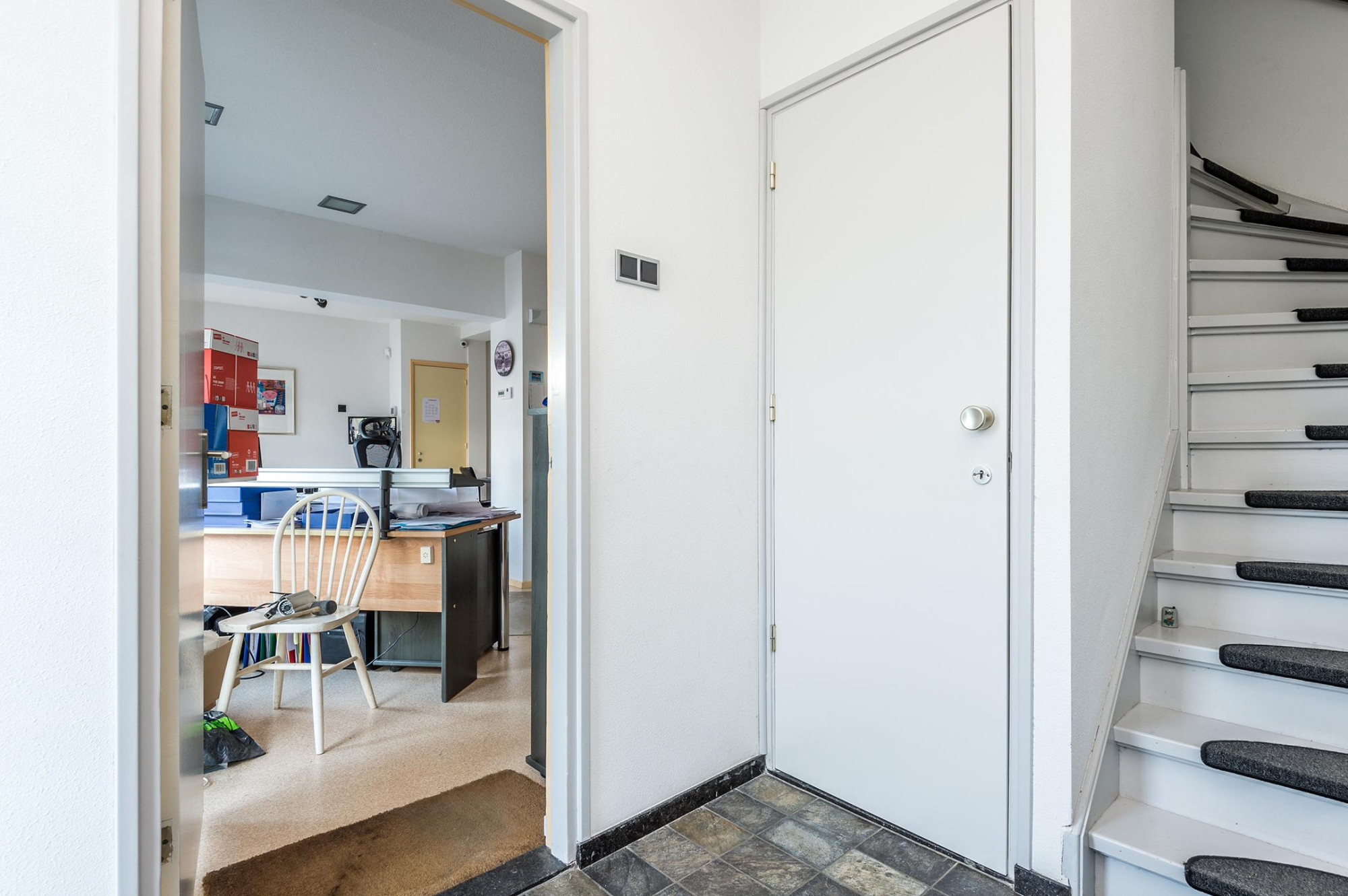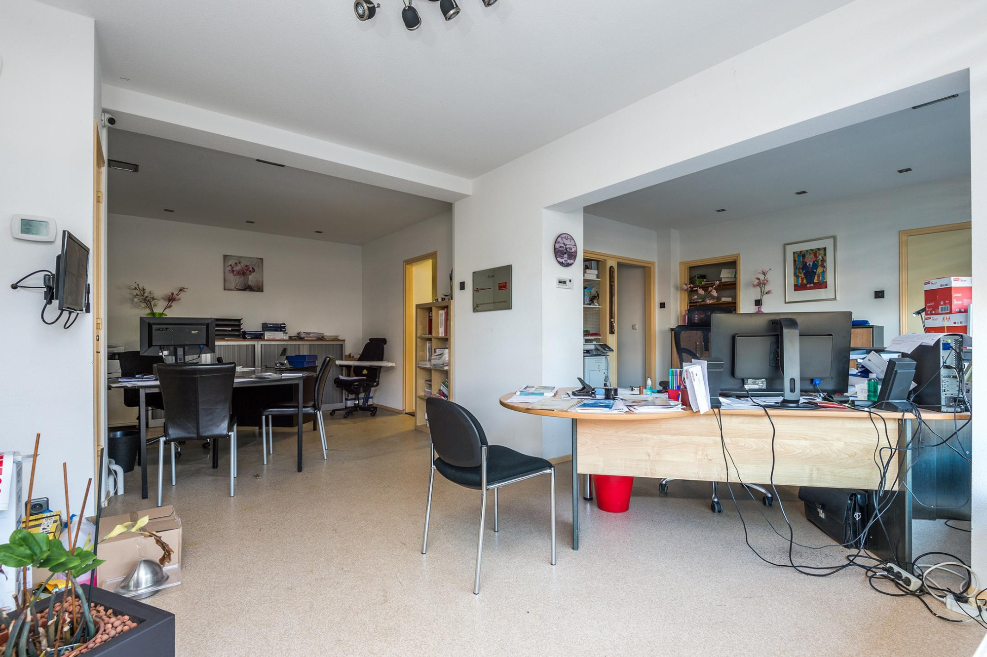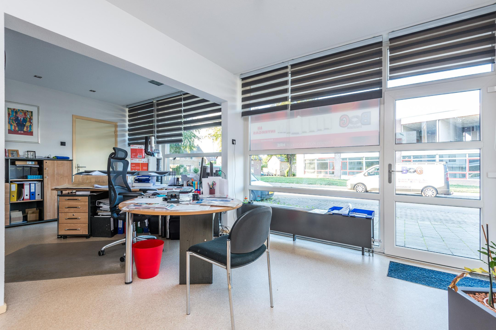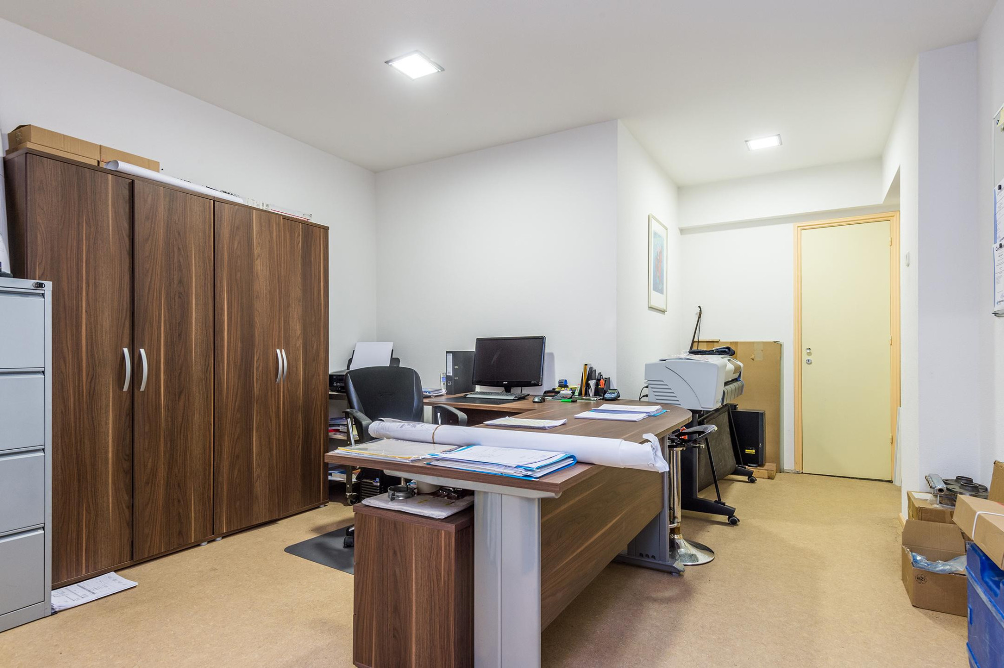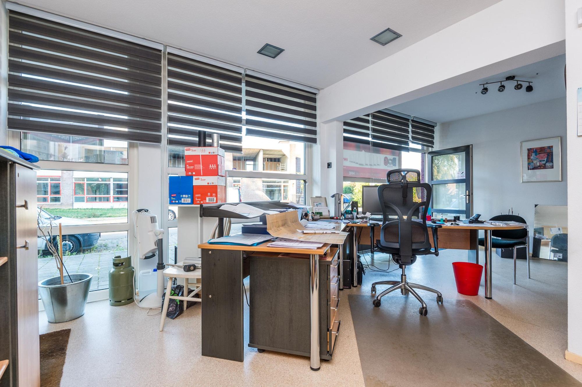 - L-vormige winkelruimte c.q. kantoorruimtes (6.85mx7.73m/2.83m) en gang met tegelvloer.