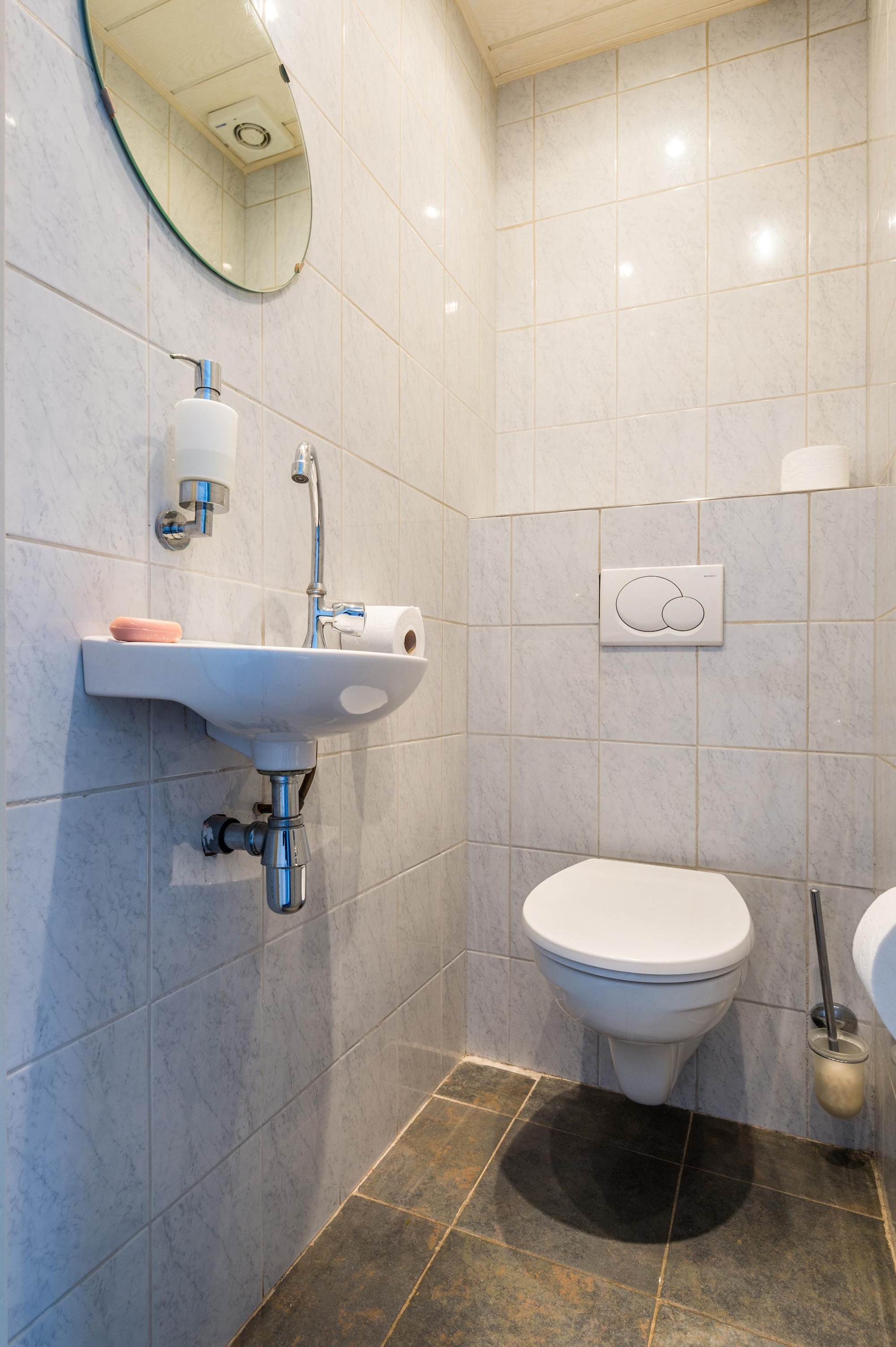 - Volledig betegelde zwevende toiletten (2 stuks).
