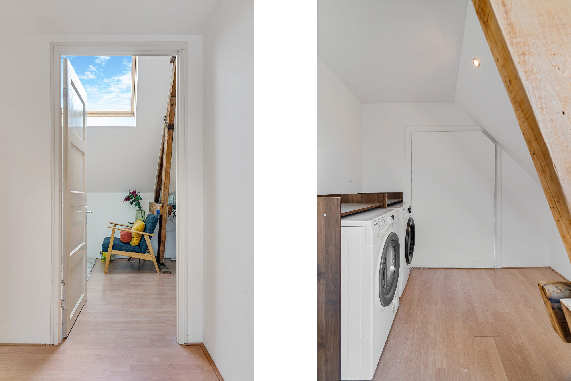 Een van de kamers beschikt over een trapje naar een handige opbergruimte, tevens is de loft bereikbaar via een vaste trap, terwijl in de andere kamer de cv-ketel netjes is weggewerkt in een kast. Ook is hier een witgoedaansluiting aanwezig – praktisch en efficiënt.