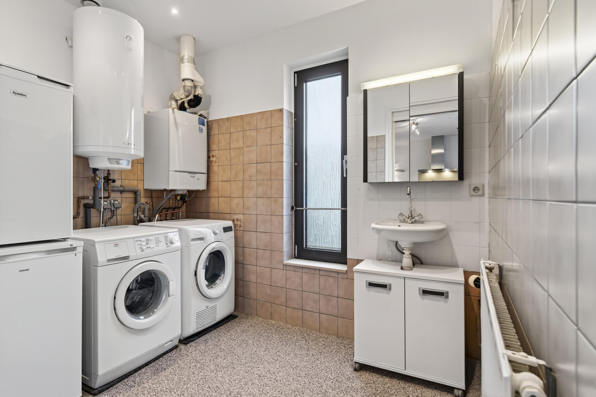 Bijkeuken, (2.66mx2.05m), opstelplaats cv installatie(eigendom), boiler (eigendom), aansluitpunten wasmachine en droger, vaste wastafel met ombouw, de bijkeuken is voorzien van een grindvloer.