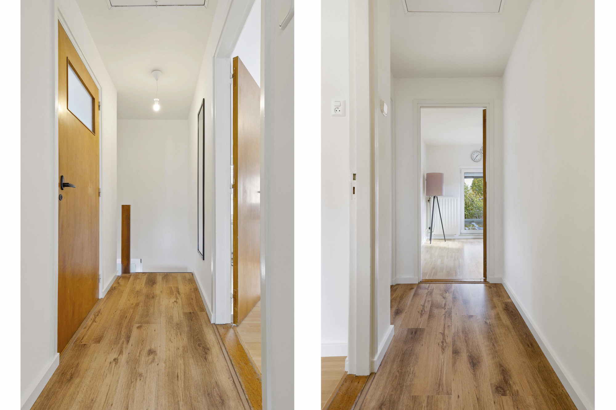 Overloop met toegang tot drie verzorgde slaapkamers, alle voorzien van laminaatvloeren.