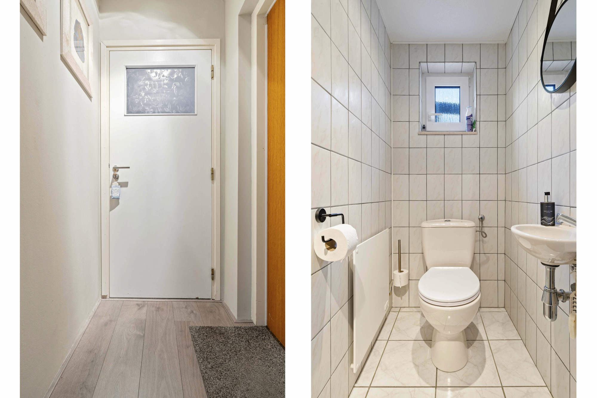 Via de tussenhal is het toilet met fonteintje bereikbaar, evenals de aanpandige garage met elektrische sectionaalpoort, geïsoleerde bergzolder en opstelplaats van de CV-installatie (Intergas HR, bouwjaar 2023, eigendom).