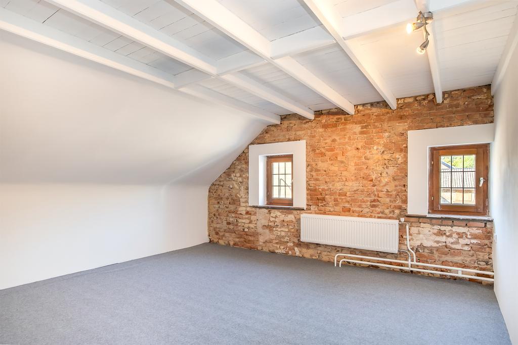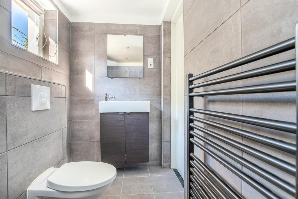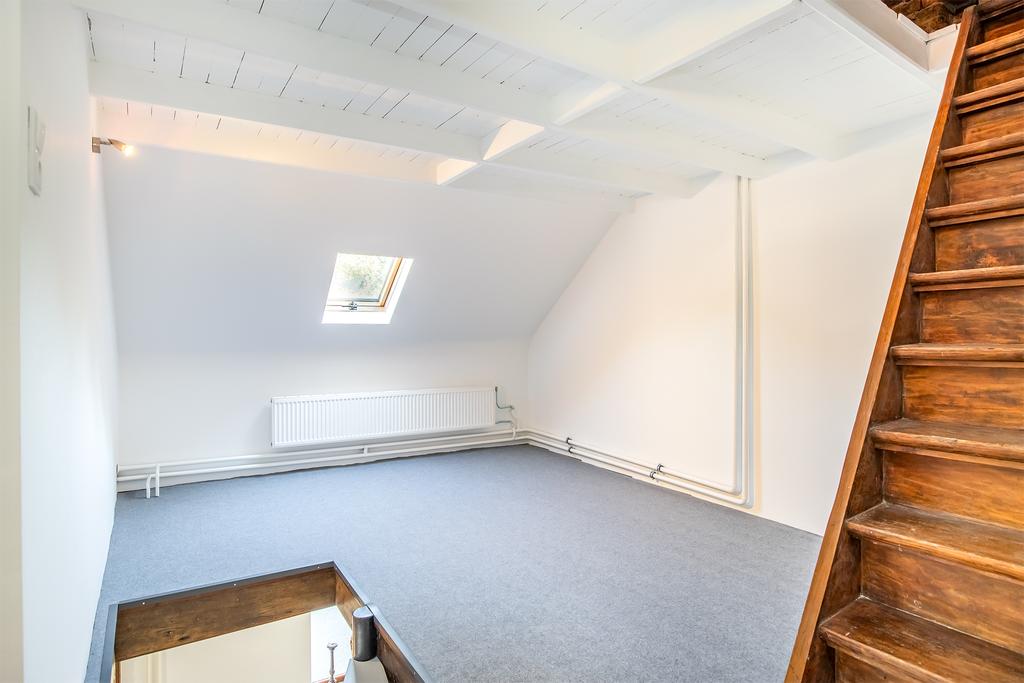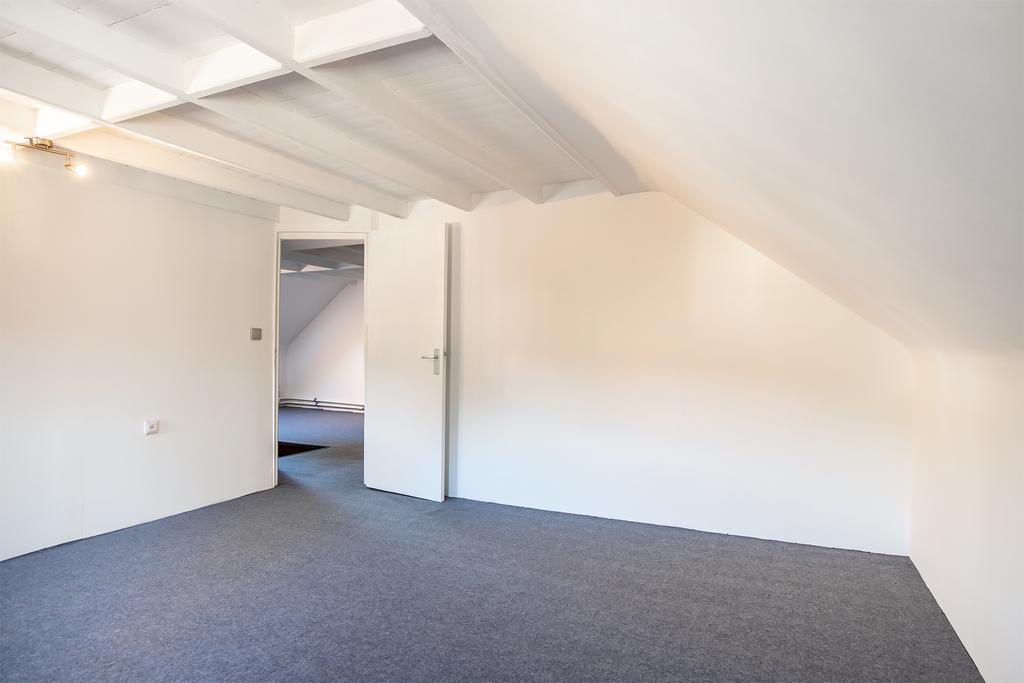 Via een wenteltrap in de woonkamer bereikt u de riante overloop op de eerste verdieping. U treft daar drie slaapkamers. Eventueel is er via de overloop een toegang te maken naar de bovenverdieping van de werkkamer, waardoor u één of meerdere slaapkamers kunt realiseren.