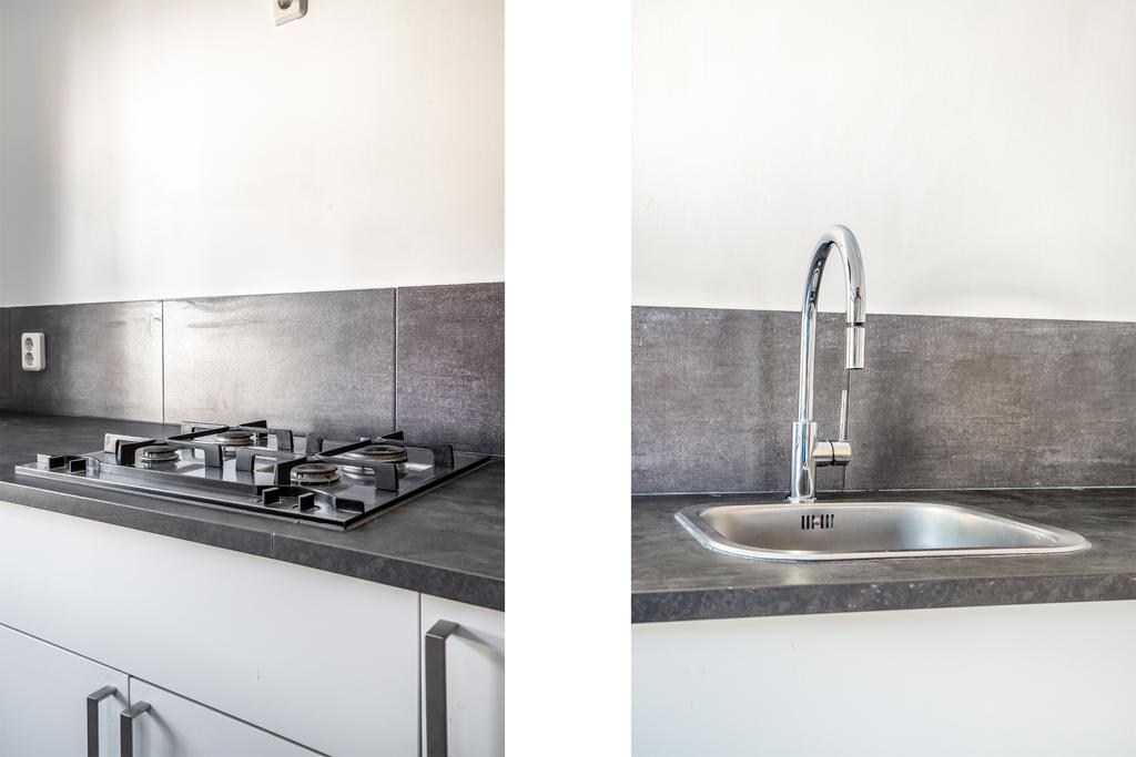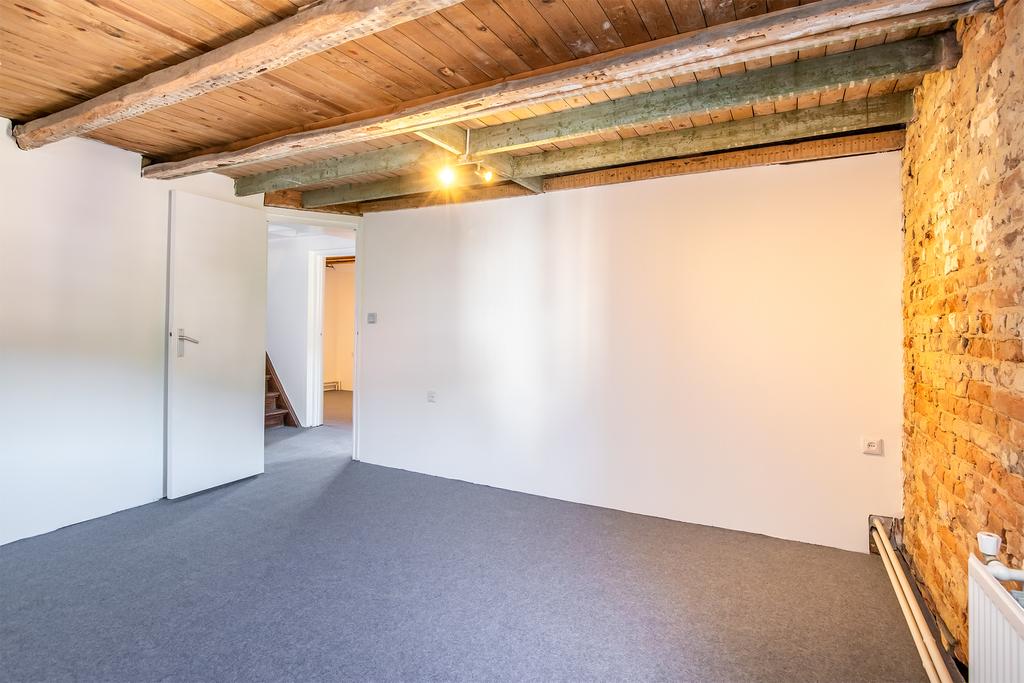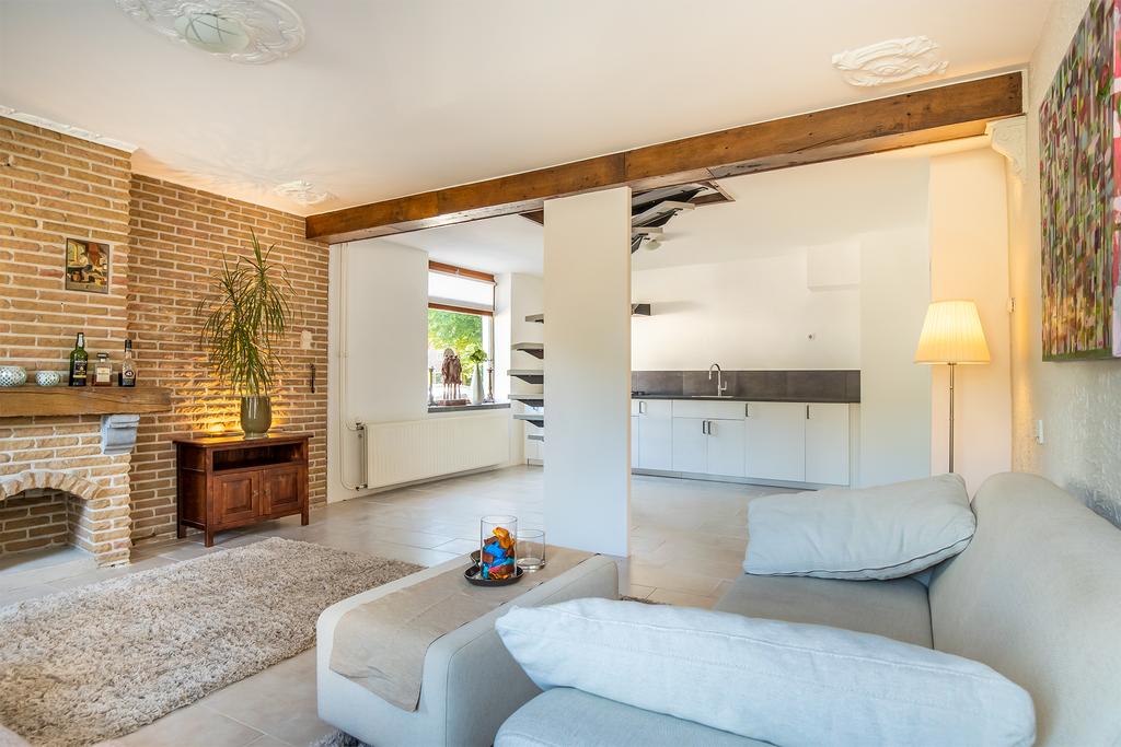 De sfeervolle woonkamer beschikt over karakteristieke elementen waaronder verschillende ornamenten in het plafond en heeft een open verbinding tot de keuken. De keuken is voorzien van een rechte aanrecht-combinatie met kastruimte en de navolgende apparatuur: 4-pits inductiekookplaat, afzuiginstallatie, koelkast en wastafel.
