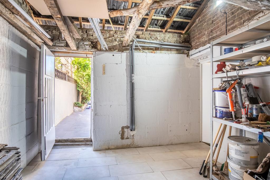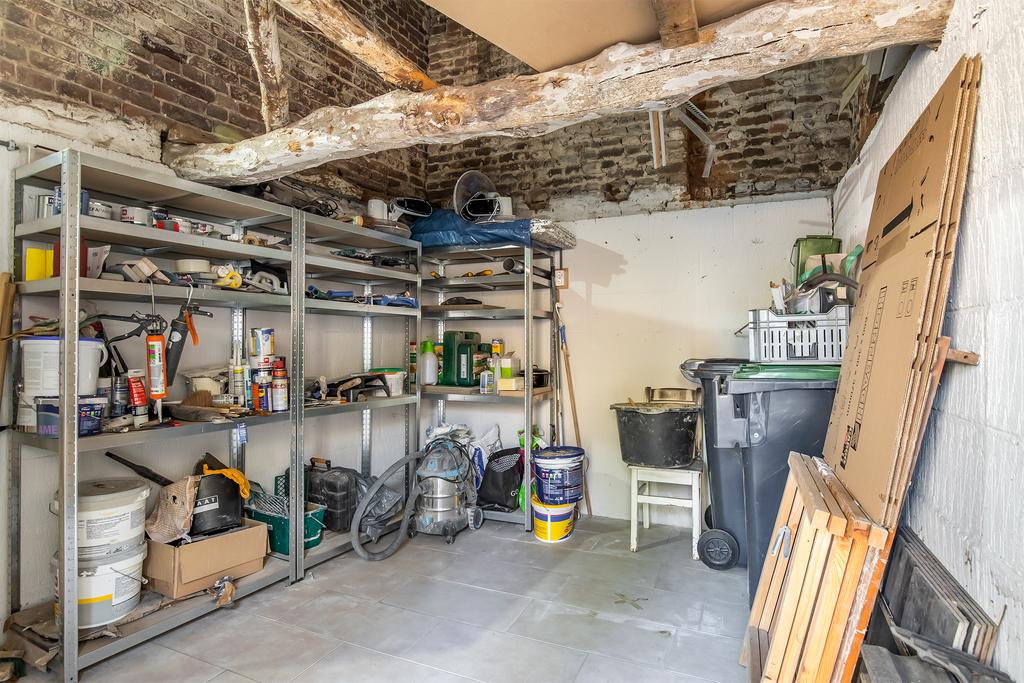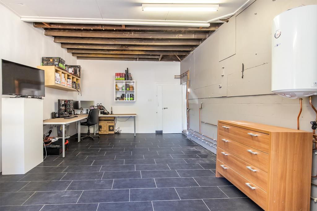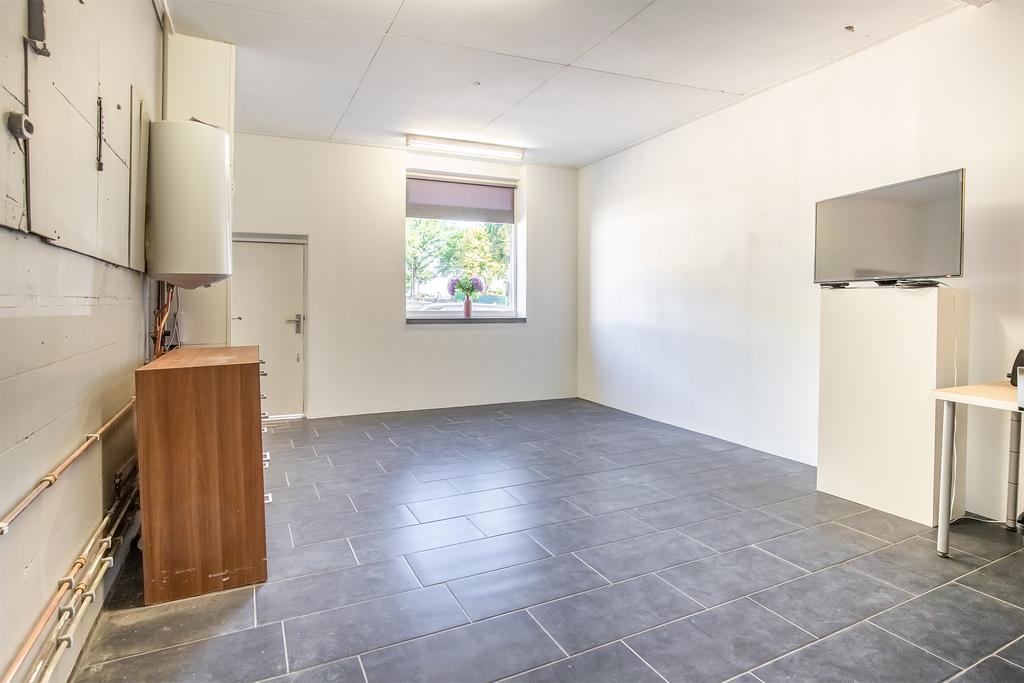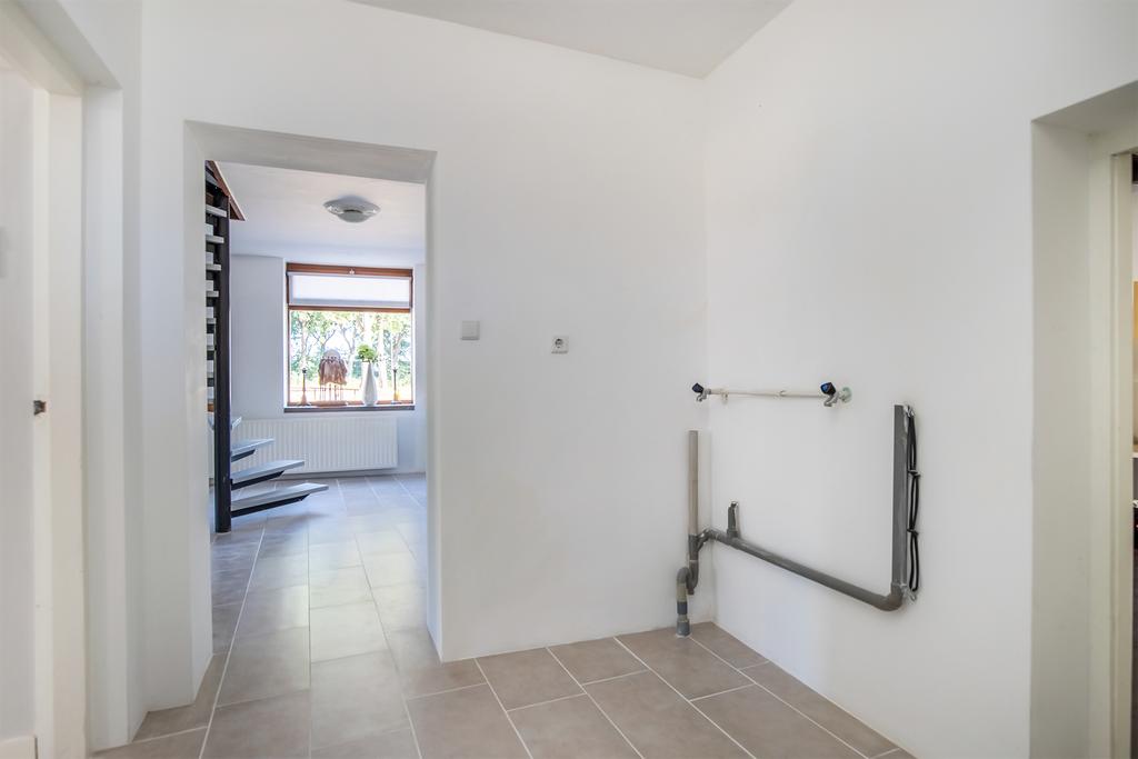 Via de entree/hal tevens zitkamer bereikt u de meterkast (6 groepen, 2 aardlekschakelaars) en bijkeuken (met witgoed-aansluiting). Vanuit deze bijkeuken bereikt u alle vertrekken waaronder de woonkamer, toilet/doucheruimte en een riante werkkamer met bovenverdieping die nog geheel naar smaak in te delen is. Voorheen stonden in deze ruimte de ovens van de bakkerij. Vanuit de betreffende ruimte is de buitenberging te bereiken als ook via de voortuin van de woning.