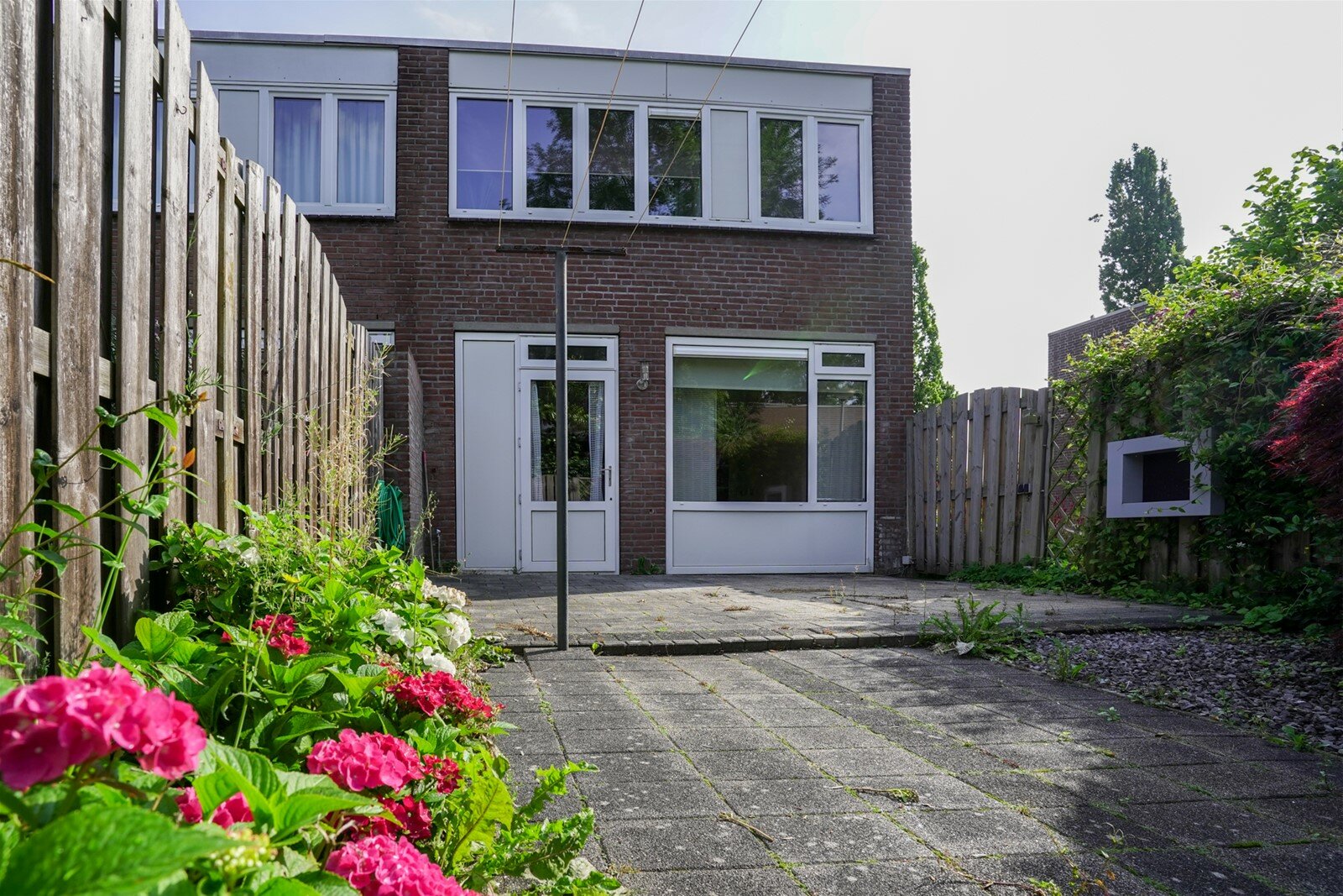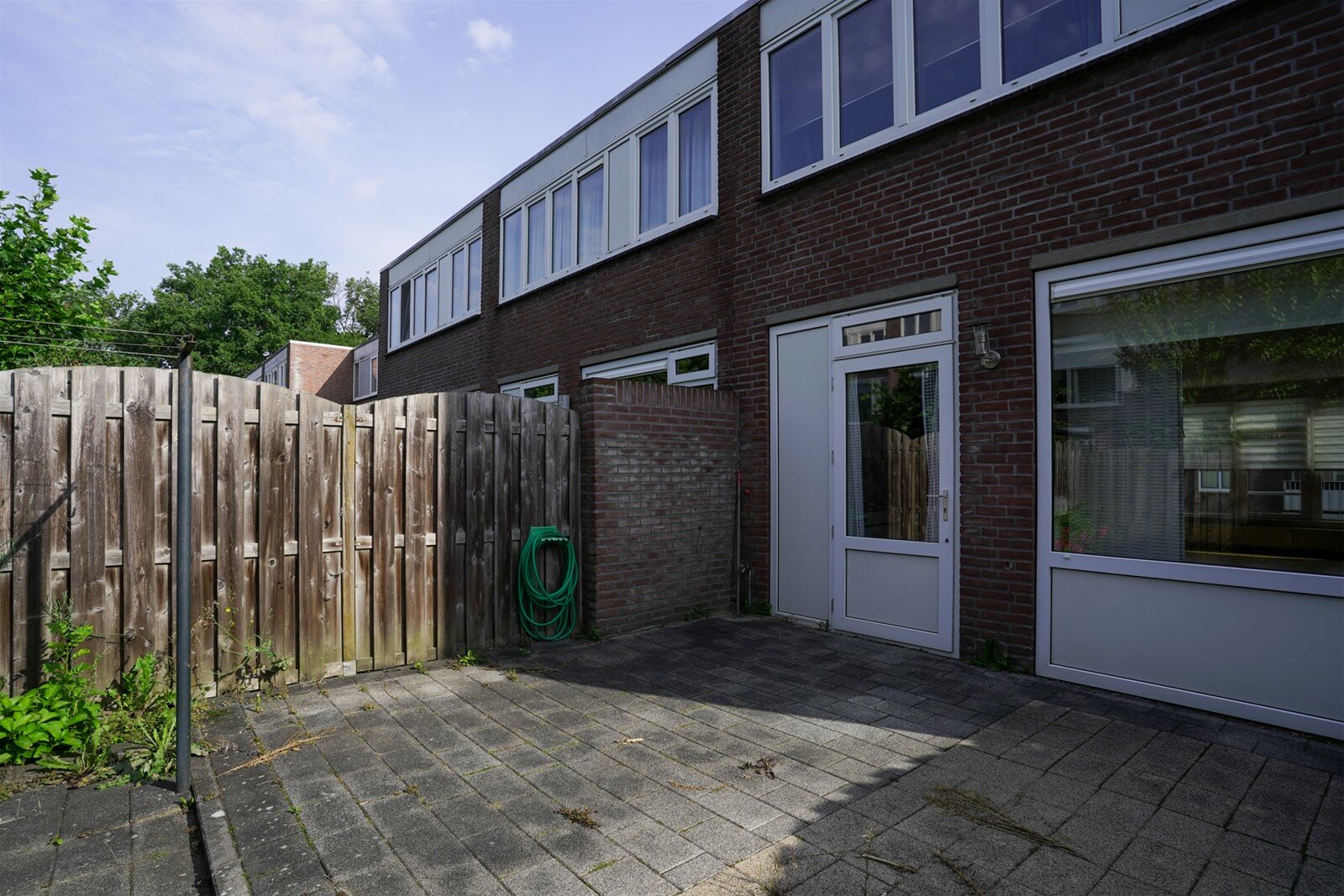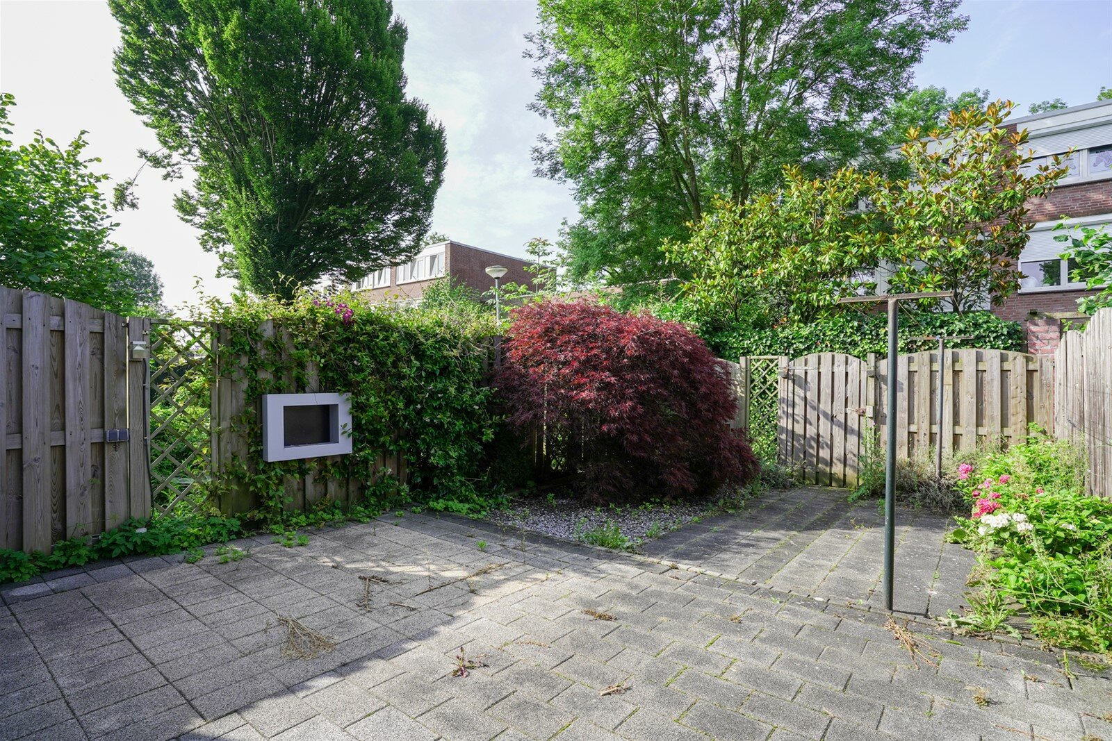 Achtertuin met achterom. De tuin is bereikbaar via de keuken.