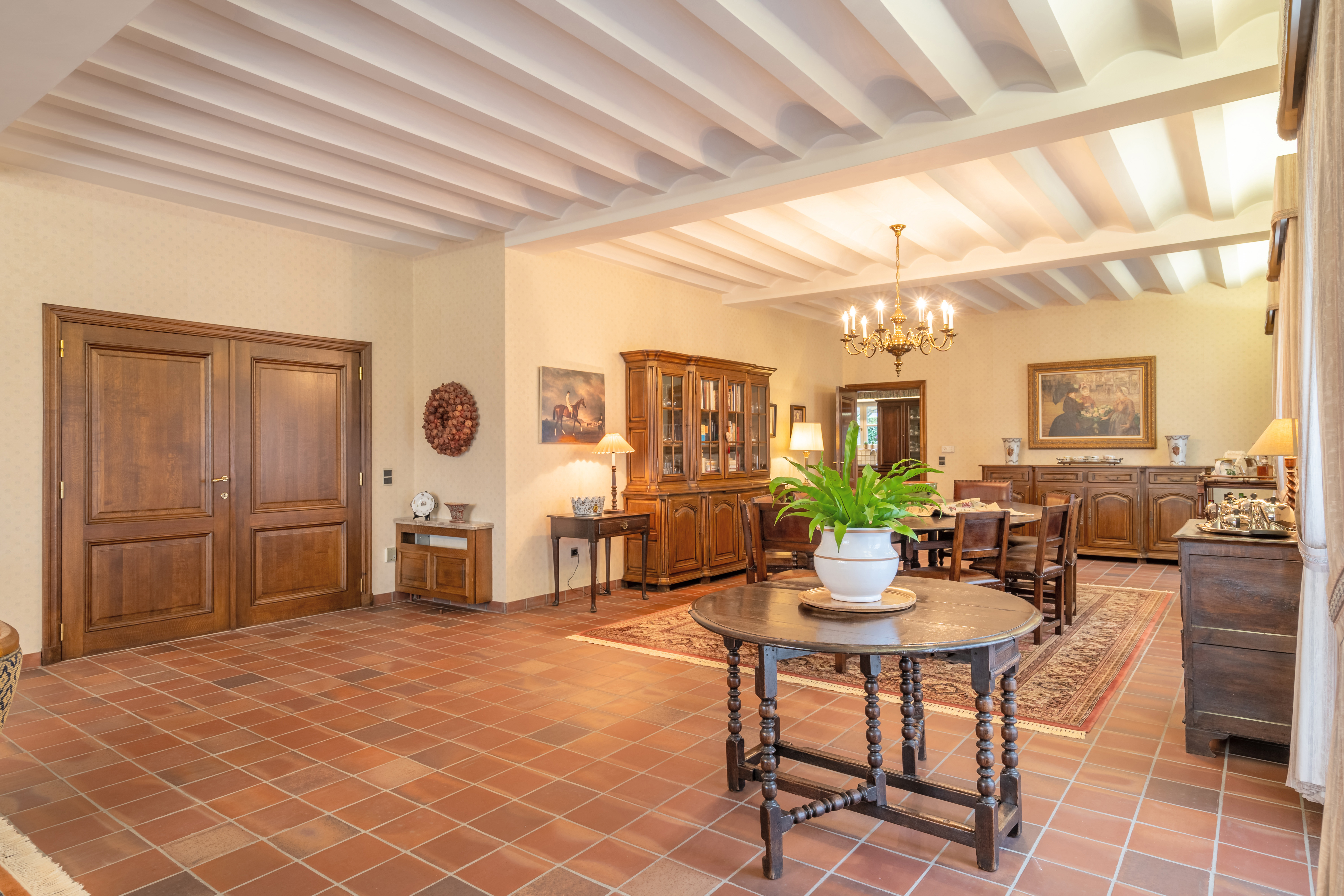 - Via de dubbele massief eiken deur heeft u toegang tot de royale leefruimte