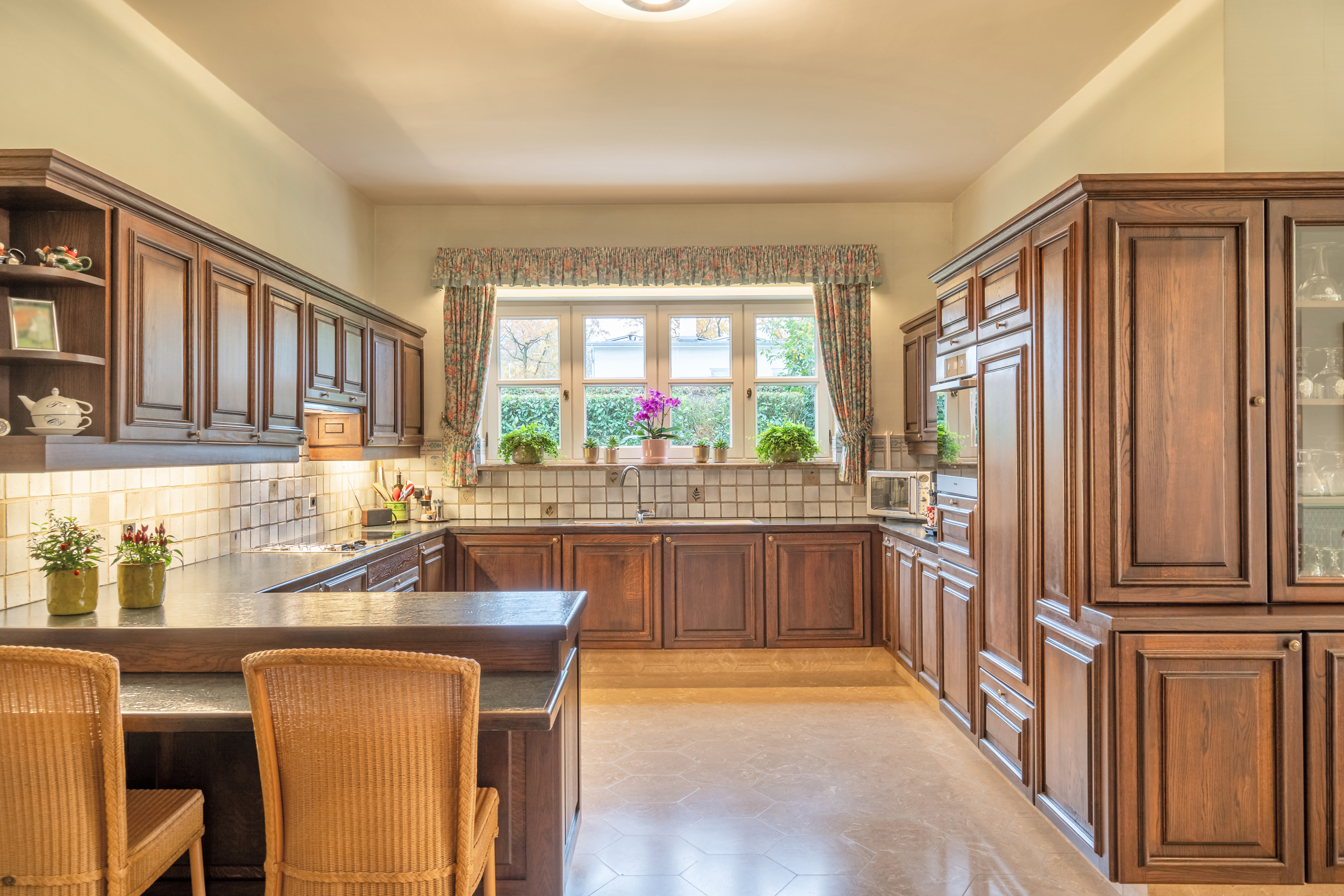 - Eiken keuken voorzien van de nodige apparatuur en voldoende werkruimte