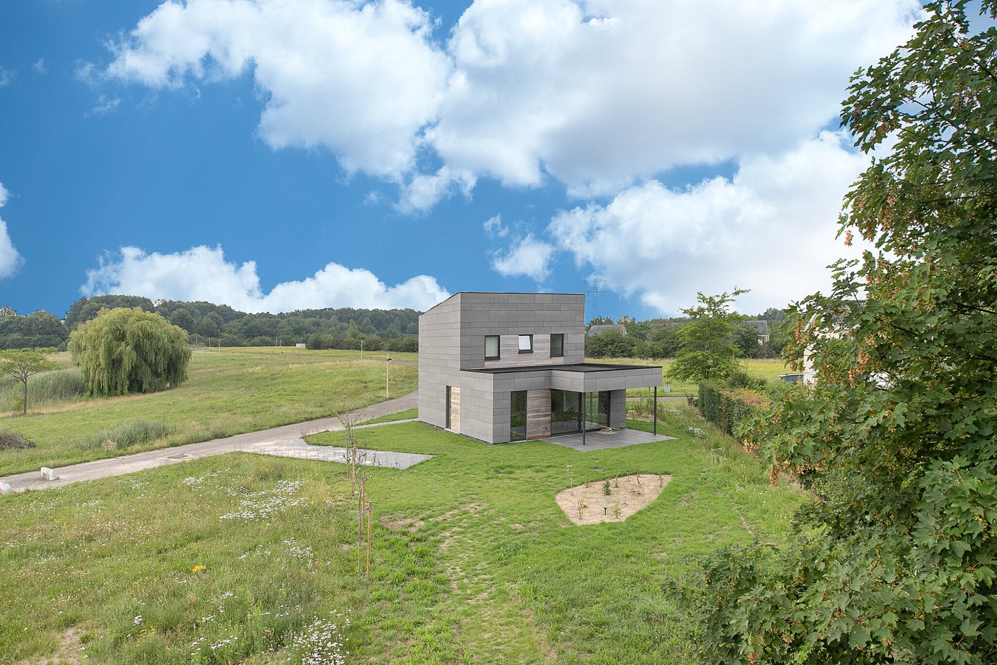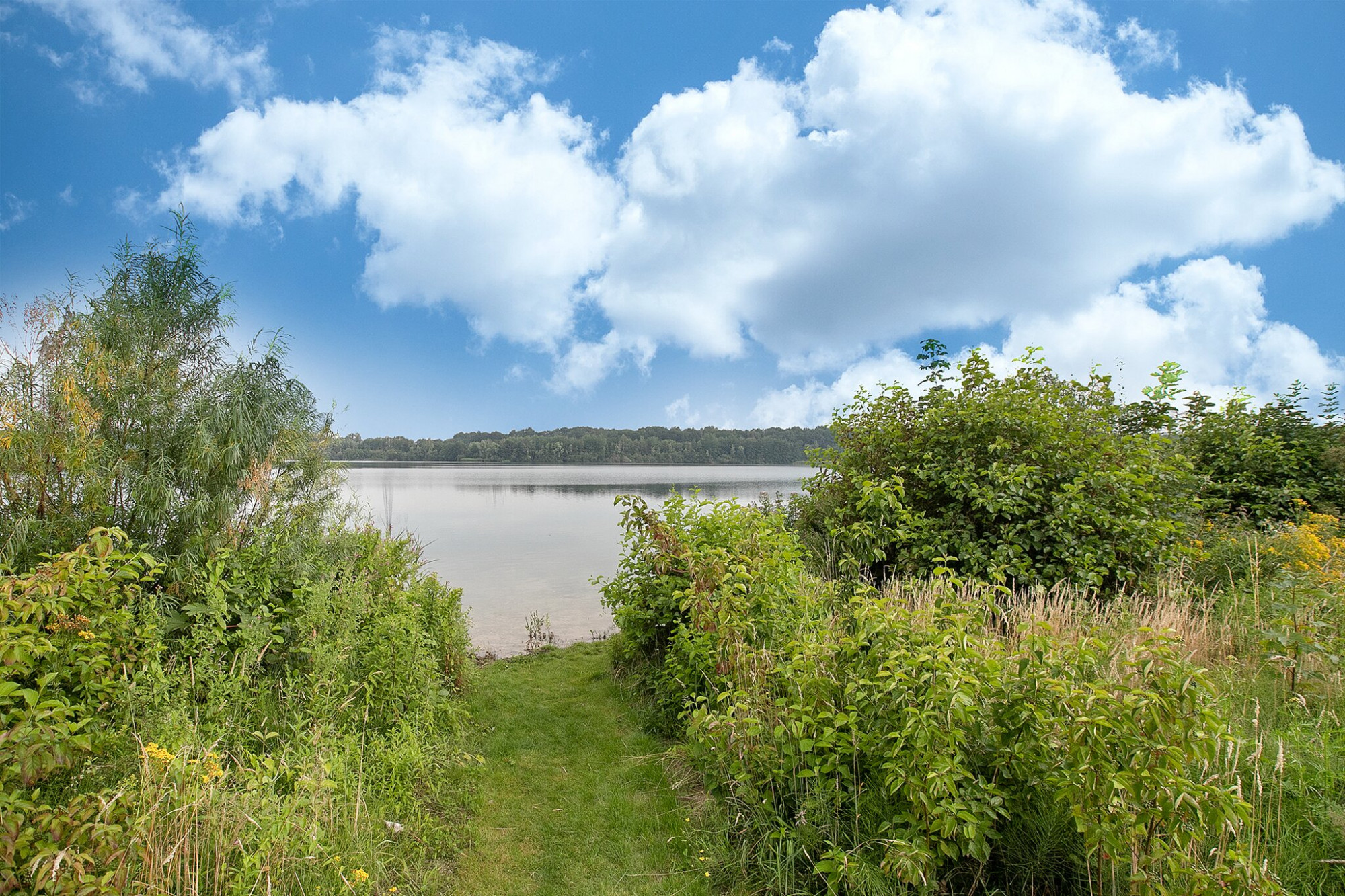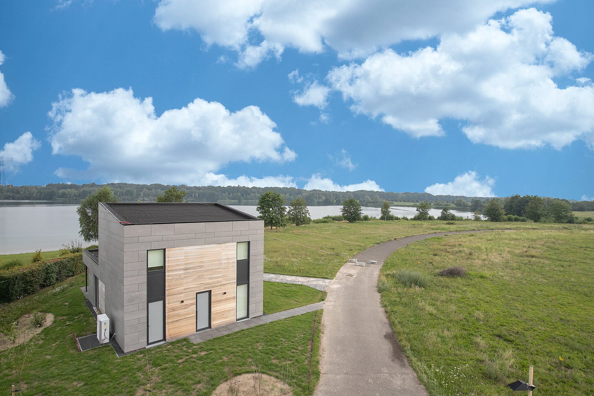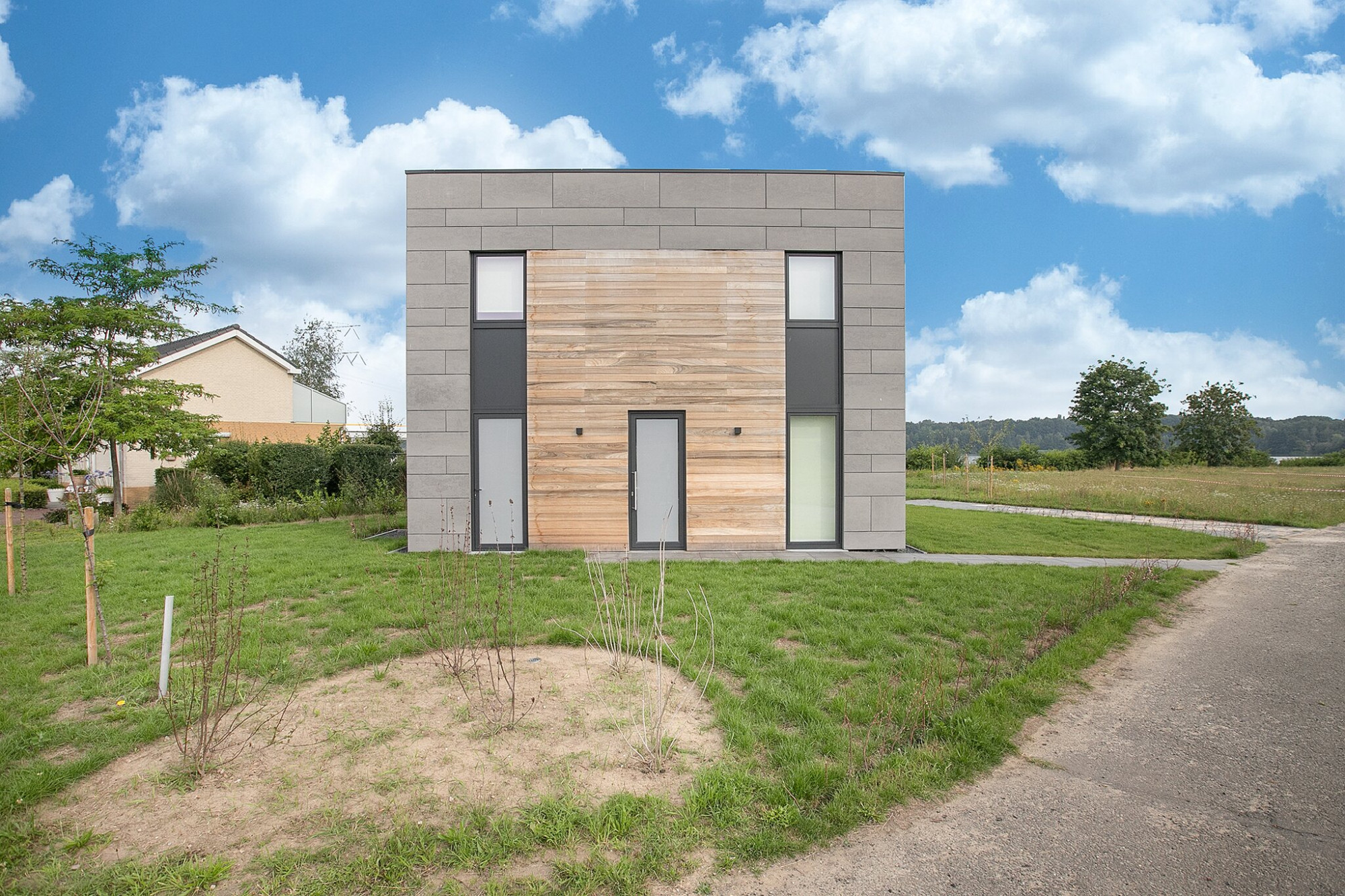 Een natuurlijke begrenzingen tussen de kavels zorgt voor beschutting en privacy. Alle woningen hebben zicht over het water.