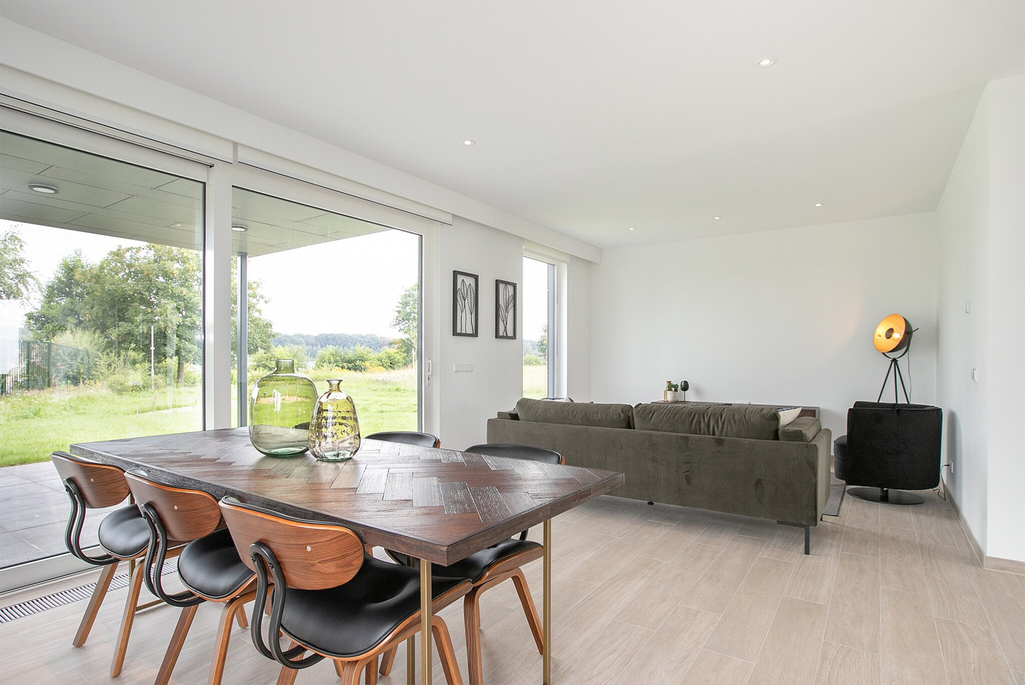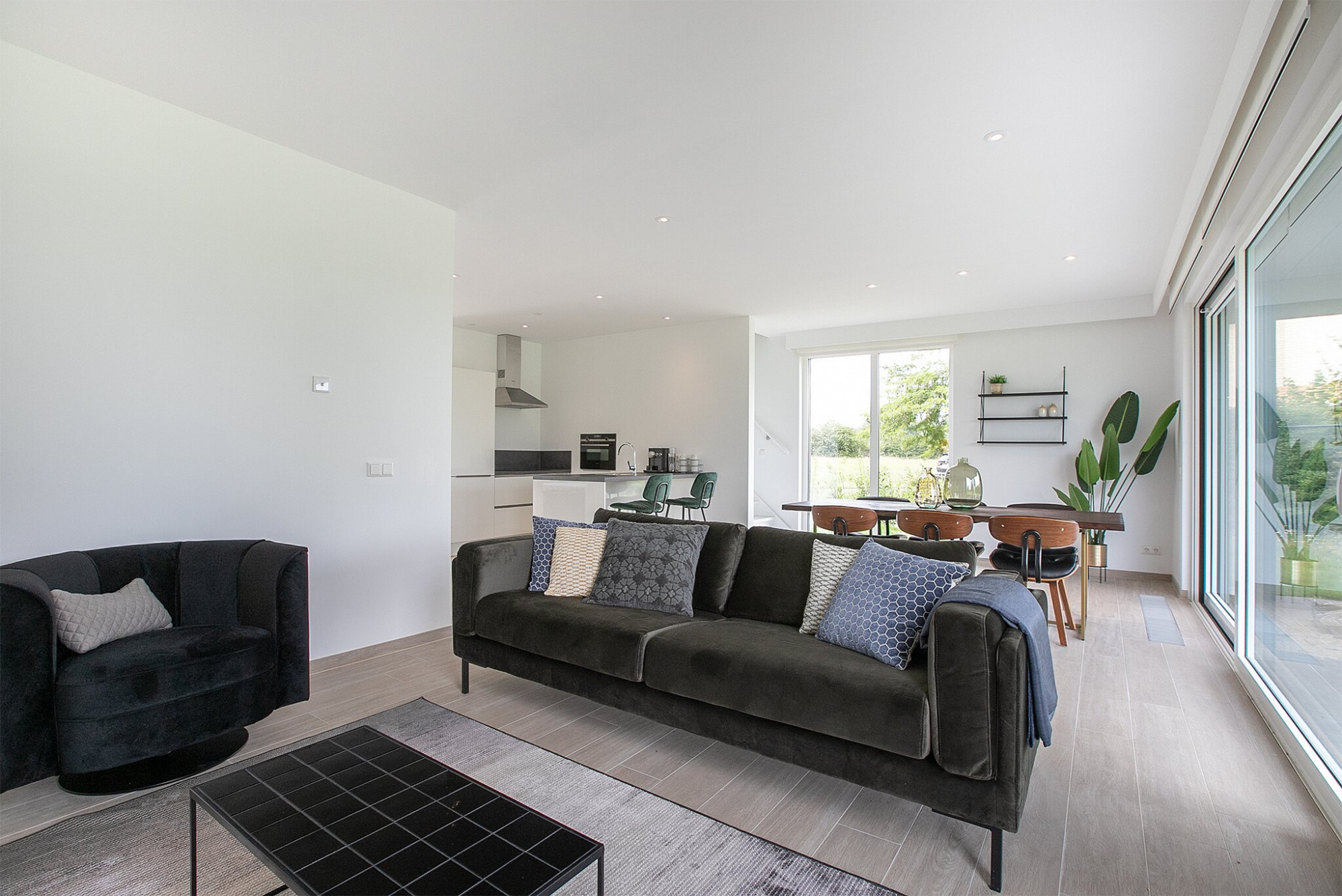 Alle Wohnungen haben ein schönes großes Wohnzimmer met direkten Blick auf dem Garten, eine Moderne offene Küche mit verschiedene Gerate, Vier Schlafzimmer und Zwei Badezimmer.