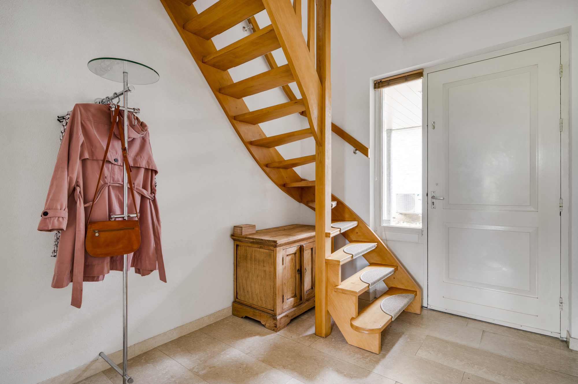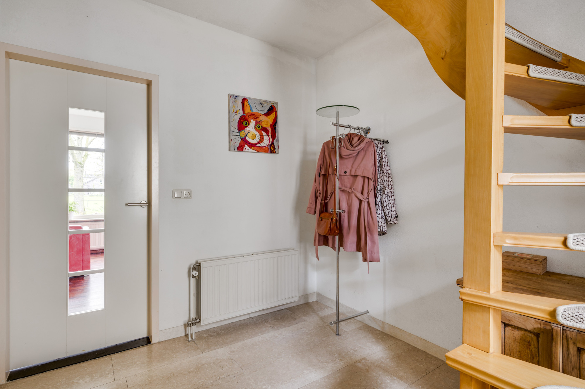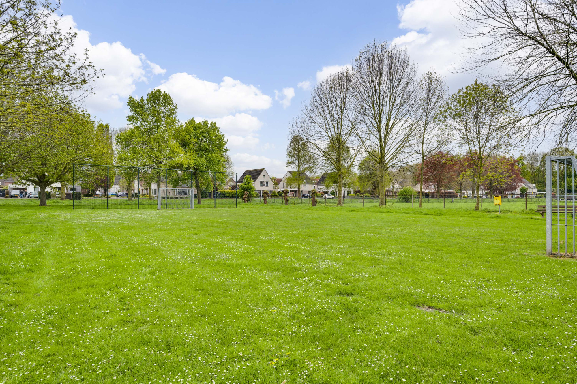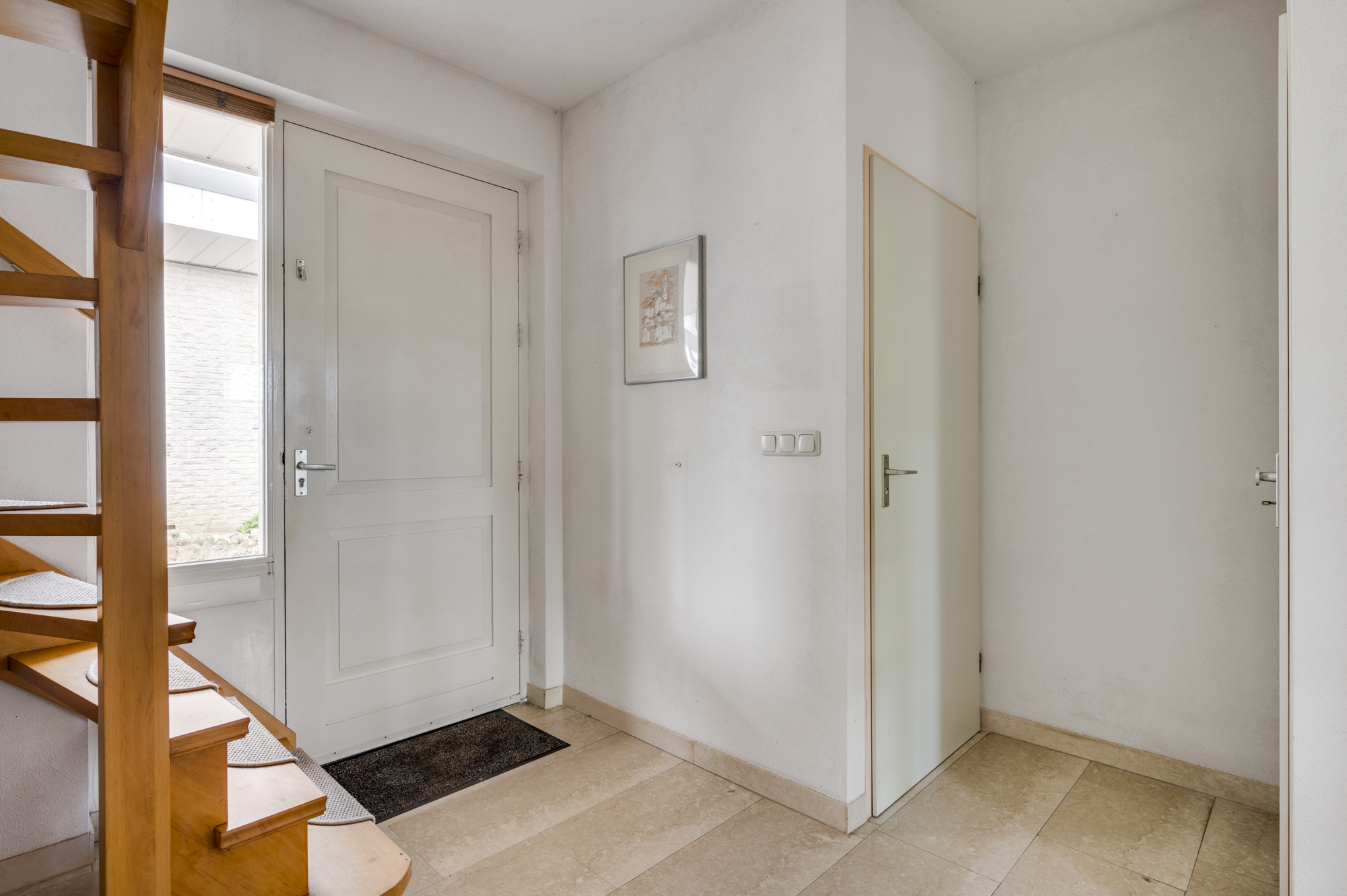 Bij binnenkomst word je verwelkomd door een ruime entree met een elegante beige marmeren vloer, een moderne meterkast en een trap naar de eerste verdieping. Hier vind je ook een toiletruimte met een vrij hangend toilet en fonteintje. De L-vormige woonkamer, toegankelijk vanuit de hal, is slim ontworpen met een zitgedeelte aan de voorzijde en een eetgedeelte aan de achterzijde. Grote ramen, waaronder een erker aan de voor- en zijgevel en een schuifpui aan de achterzijde, zorgen voor veel natuurlijk licht. Deze fraaie erker biedt wijds uitzicht over de prachtige groenvoorziening nabij de Sleybeek. Een prachtig plekje om heerlijk tot rust te komen en te genieten van de natuur. Via een schuifpui heb je toegang tot het overdekte terras en de achtertuin. De keuken, in open verbinding met de woonkamer, is voorzien van moderne apparatuur, namelijk een 4-pits gaskookplaat, RVS afzuigkap, combi-oven, koelkast, vaatwasser, inbouwspots en een stijlvol hardstenen aanrechtblad. Via de keuken is er toegang tot een handige bijkeuken met loopdeur naar het terras. Deze bijkeuken is voorzien van een schuifwandkast met witgoedaansluiting en biedt inpandig toegang tot de multifuctionele ruimte. De voormalige garage is omgebouwd tot een multifunctionele kamer, ideaal als thuiskantoor, hobbyruimte of extra slaapkamer. Vaste kasten zorgen voor veel handige bergruimte.