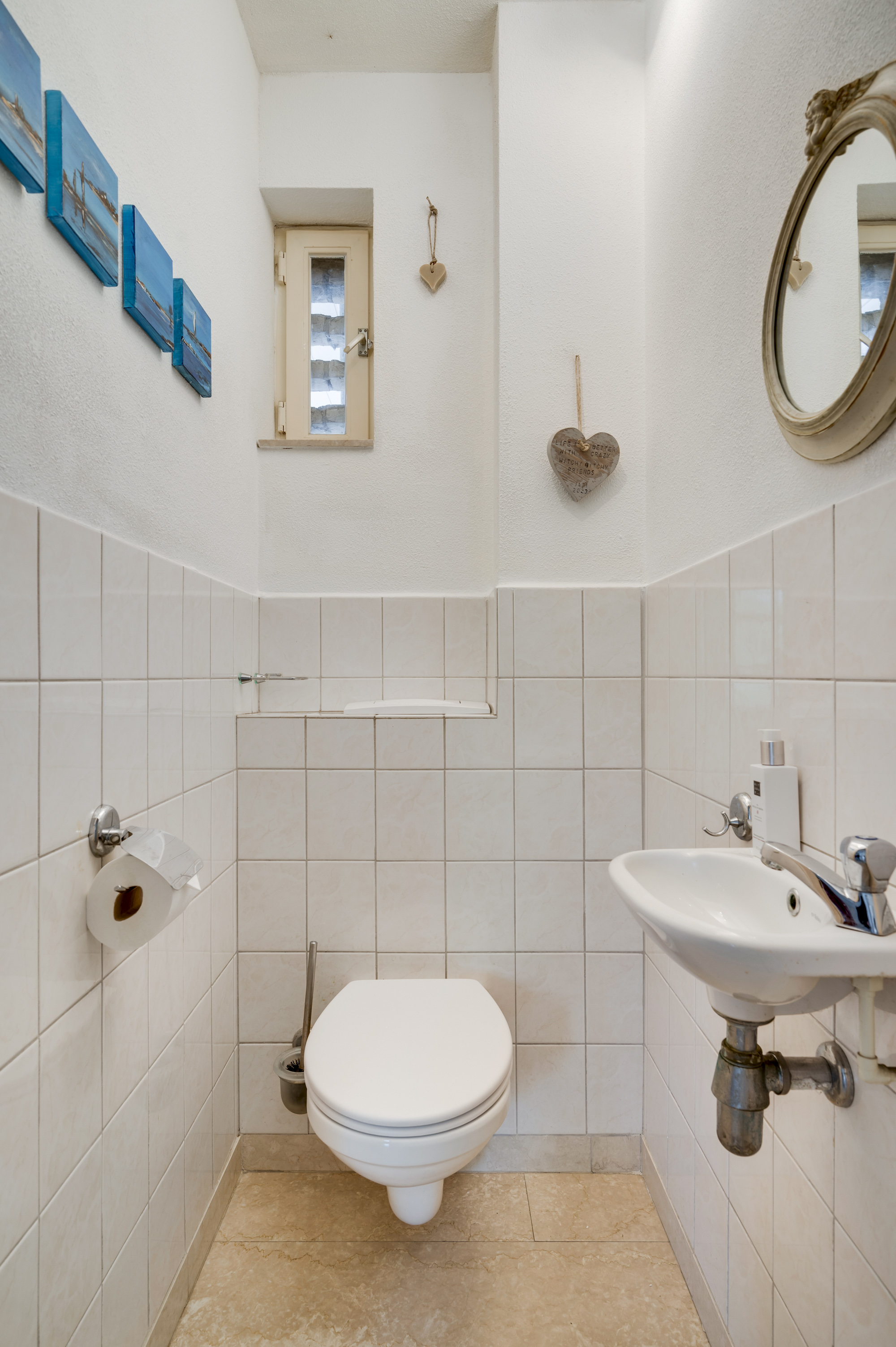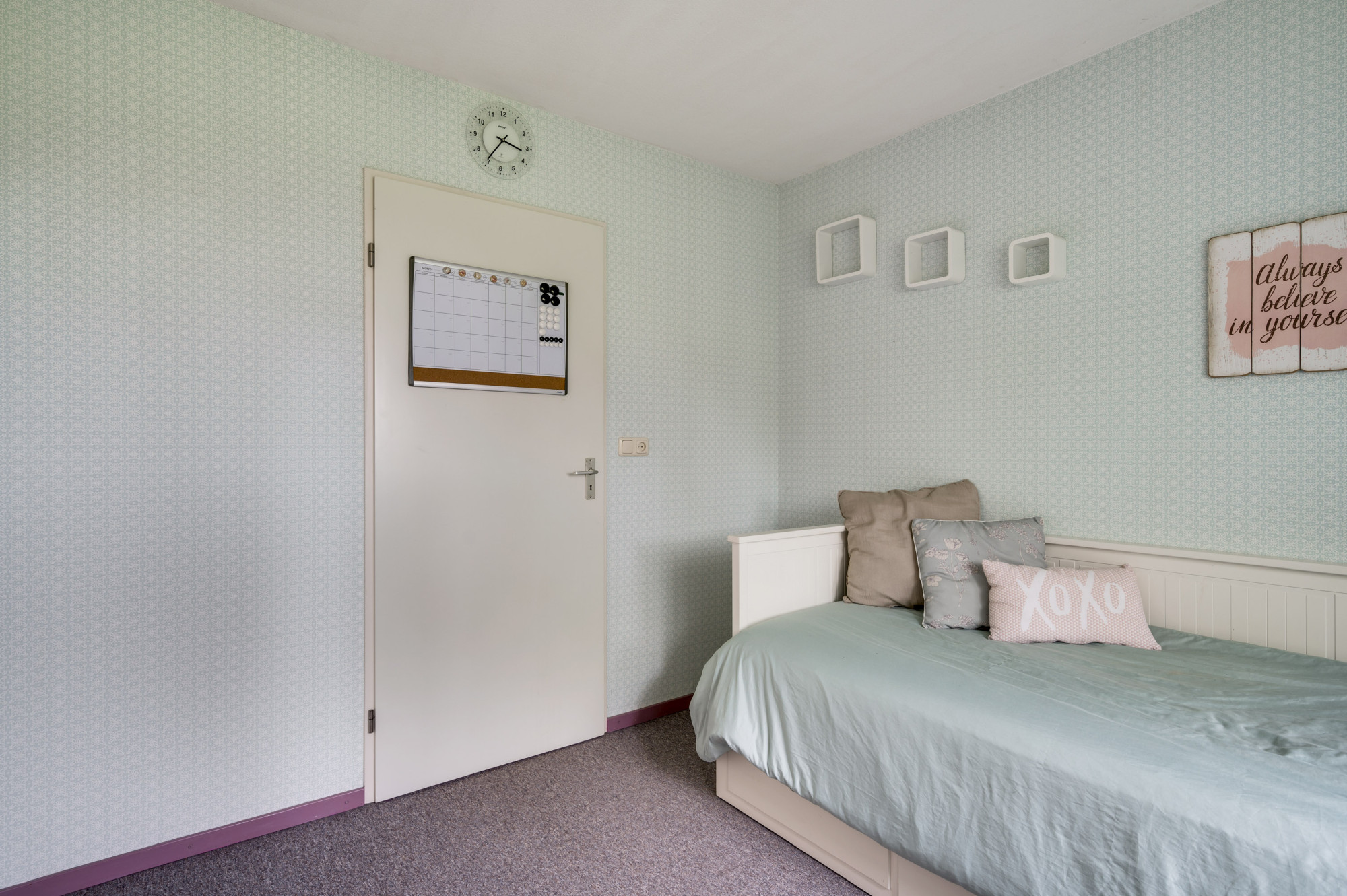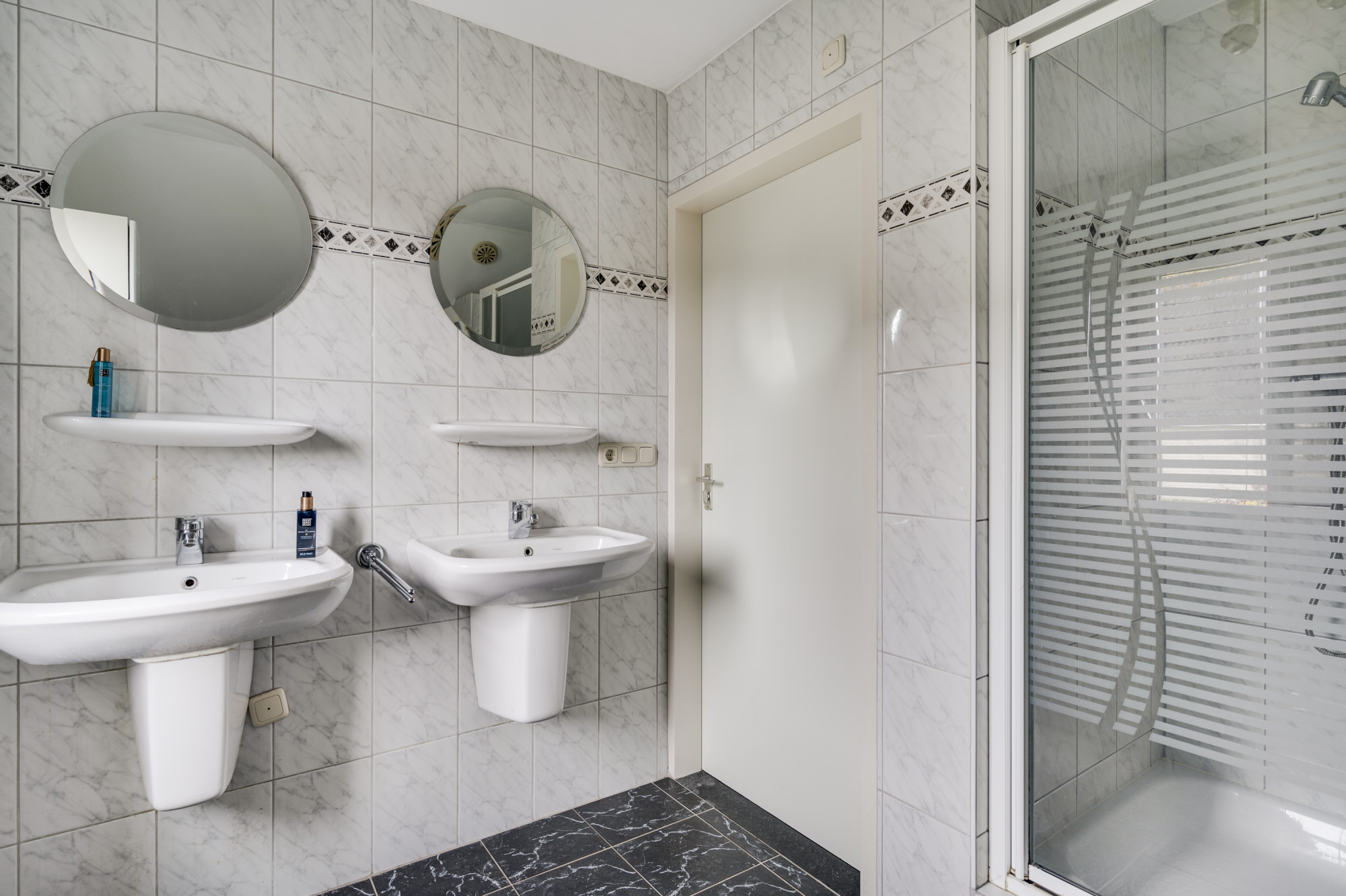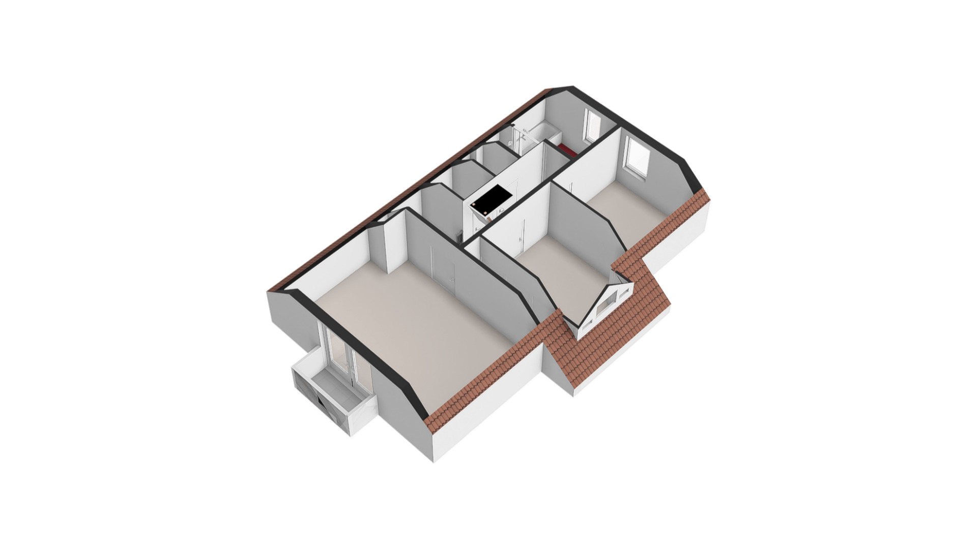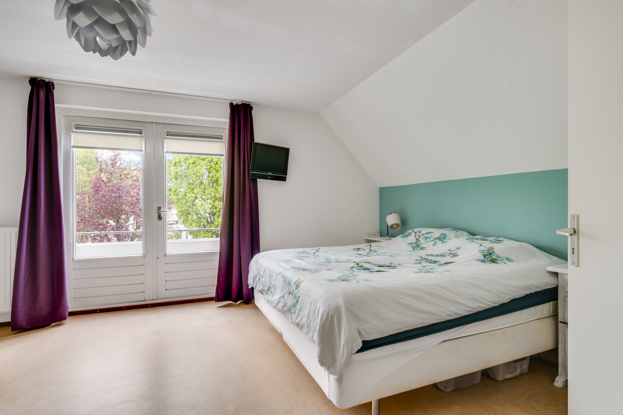 Op de eerste verdieping kom je bij een overloop met een berging en een aparte toiletruimte met een vrijhangend toilet. Verder zijn hier 3 slaapkamers en de badkamer gelegen. De ruime hoofdslaapkamer bevindt zich aan de voorzijde van de woning en heeft openslaande deuren naar het balkon. De zijslaapkamer is uitgerust met een dakkapel en heeft een vaste kastenwand. Aan de achterzijde bevindt zich de derde slaapkamer, die beschikt over een raam met rolluik voor de nodige privacy en lichtregulering. De badkamer is volledig betegeld en heeft een tijdloze uitstraling dankzij de witte kleurstelling. Hier vind je een ligbad met thermostaatkraan, een aparte ruime douche met thermostaatkraan en twee vaste wastafels met spiegels.
