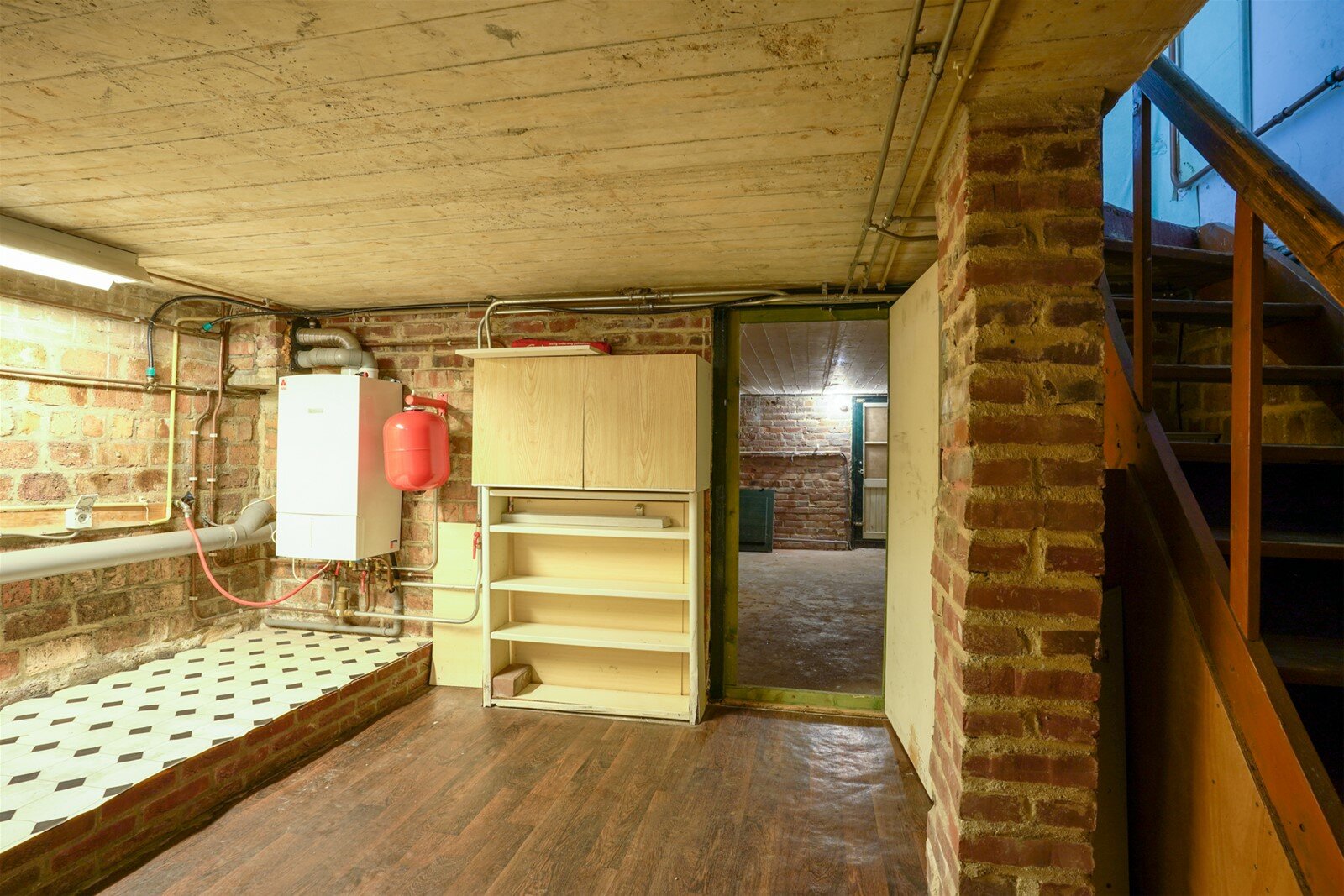 Kelder van 37m2 met CV (HR, 2011, huur). Hoogte 1,82meter. Wasmachine aansluiting aanwezig.