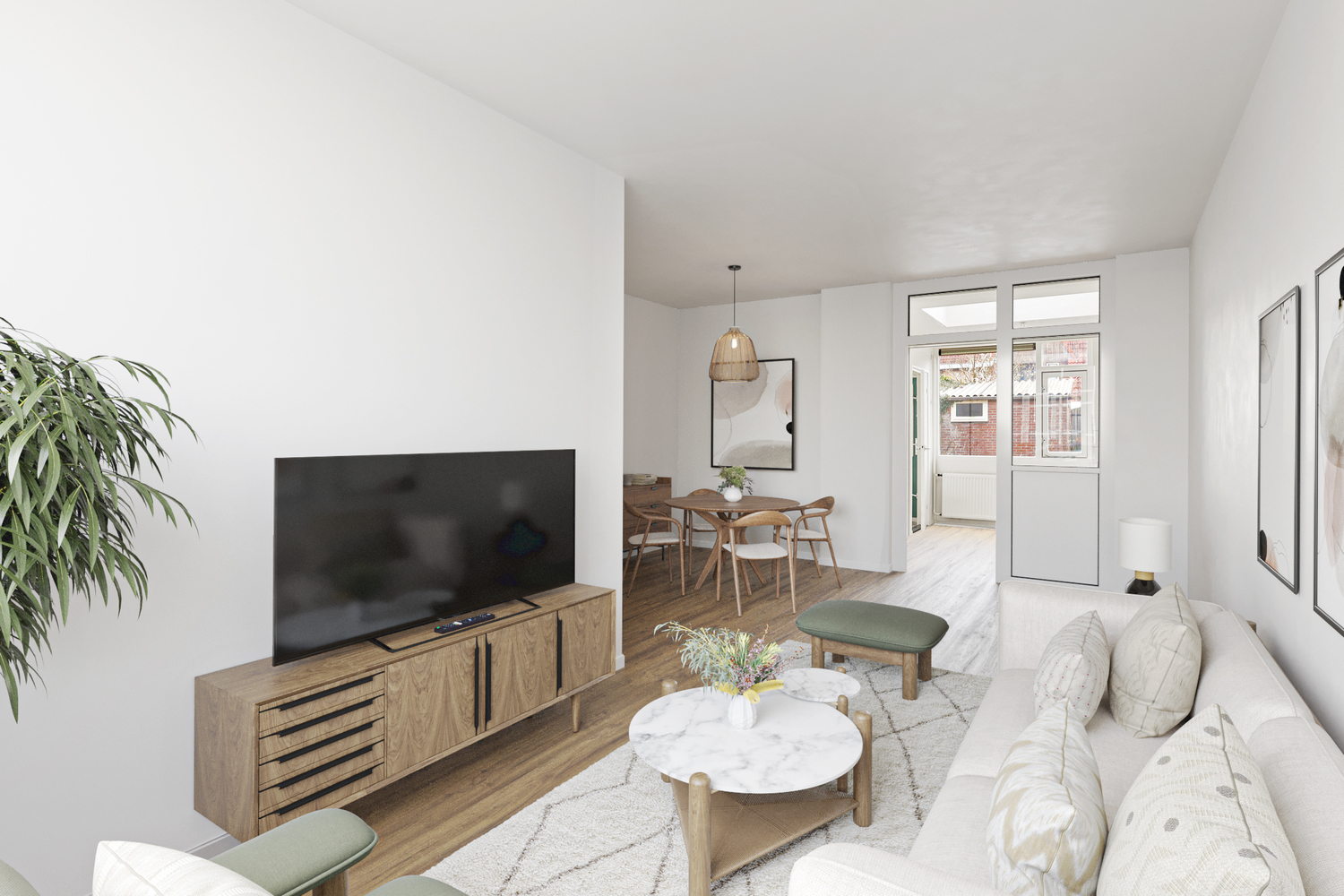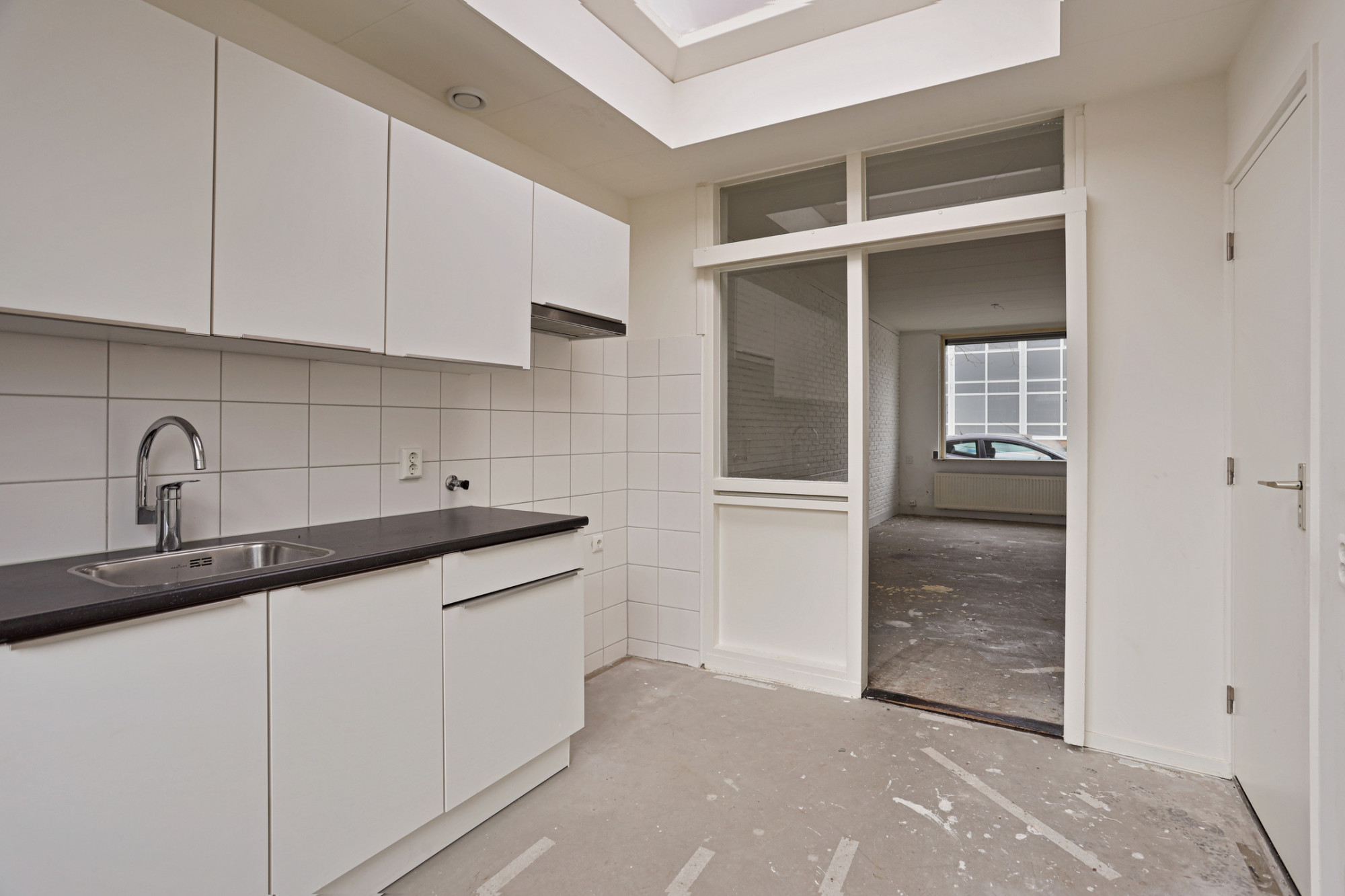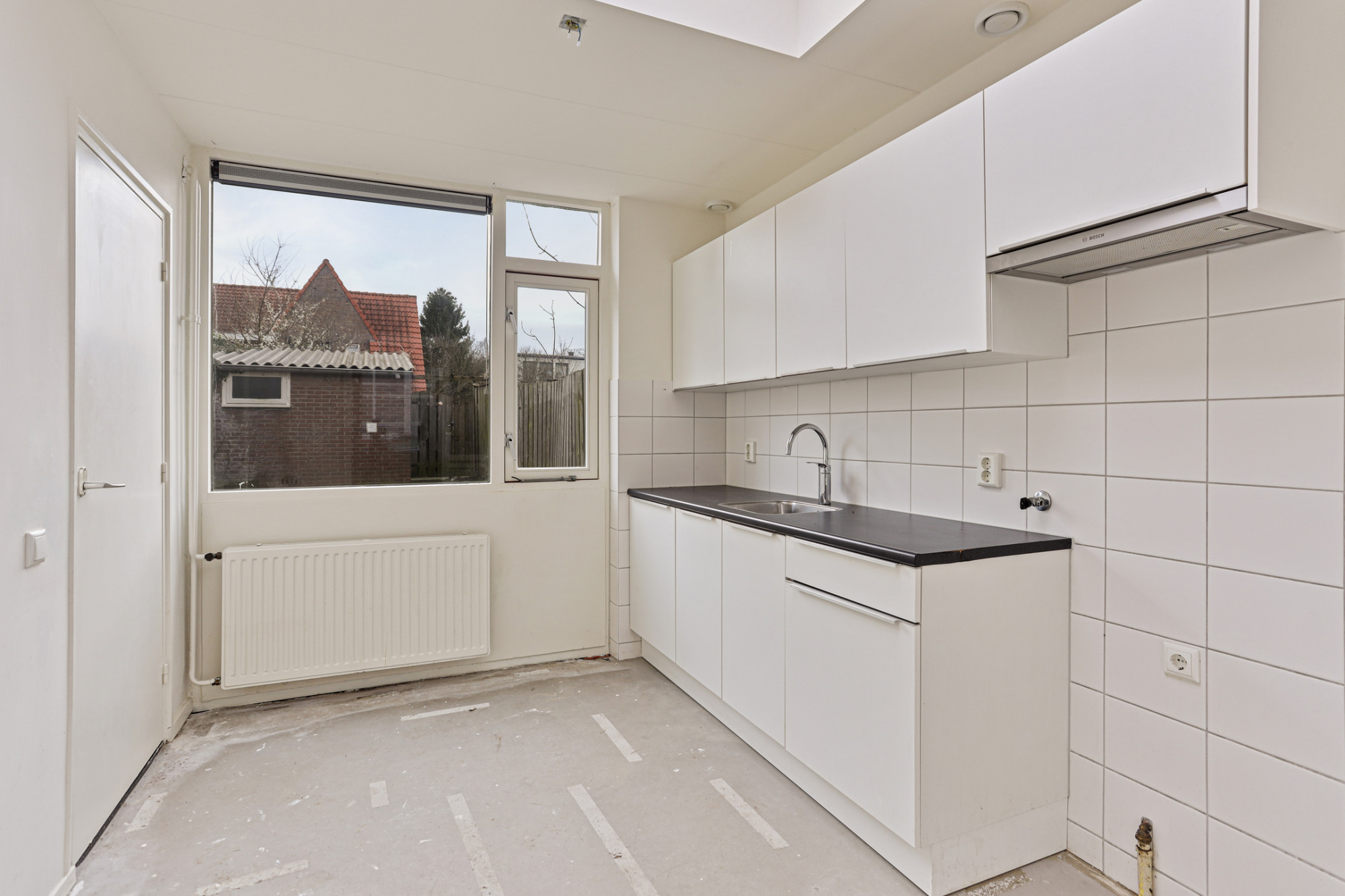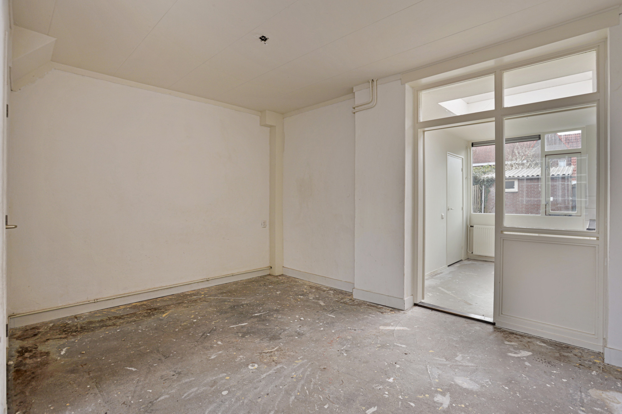 Via de entree/hal met trap en meterkast komt u bij de woonkamer met toegang tot de keuken. Achter de keuken is de gerenoveerde badkamer met een douche en wastafel gesitueerd. Separaat is er nog een toilet. De achtertuin is deels betegeld en heeft een buitenberging. De tuin is via een poortje ook achterom bereikbaar.
