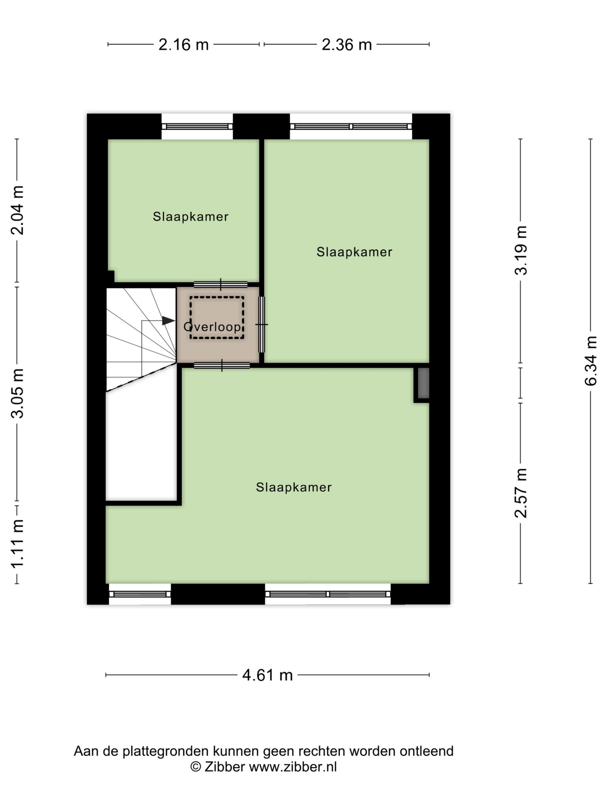 Via de overloop heeft u toegang tot de 3 slaapkamers. 2 slaapkamers zijn aan de achterzijde gelegen en de grootste slaapkamer aan de voorzijde.