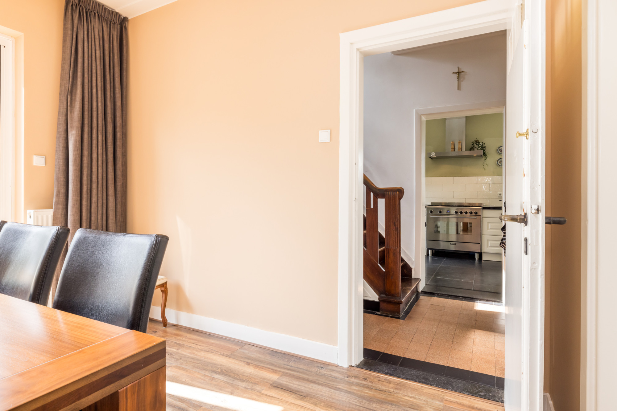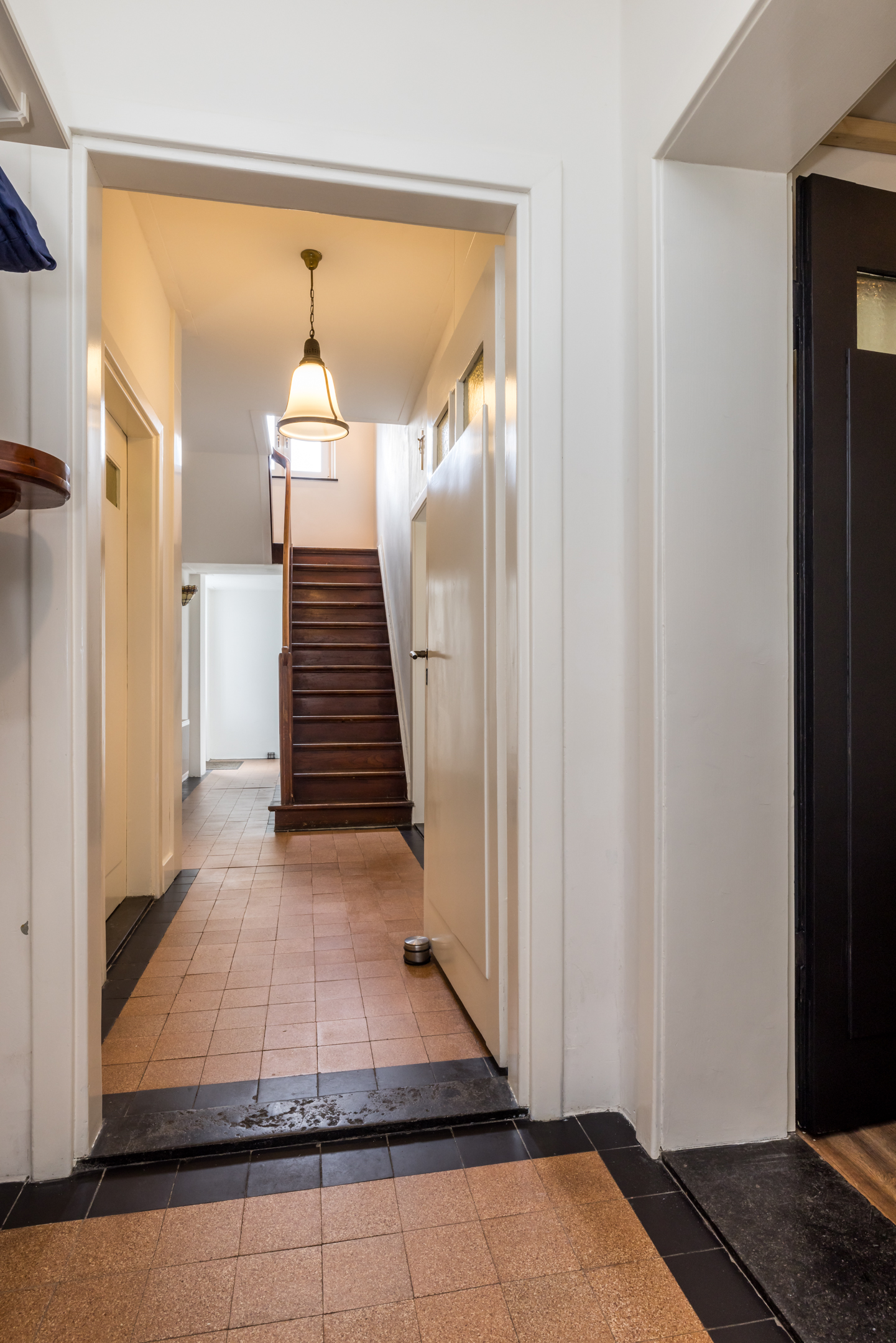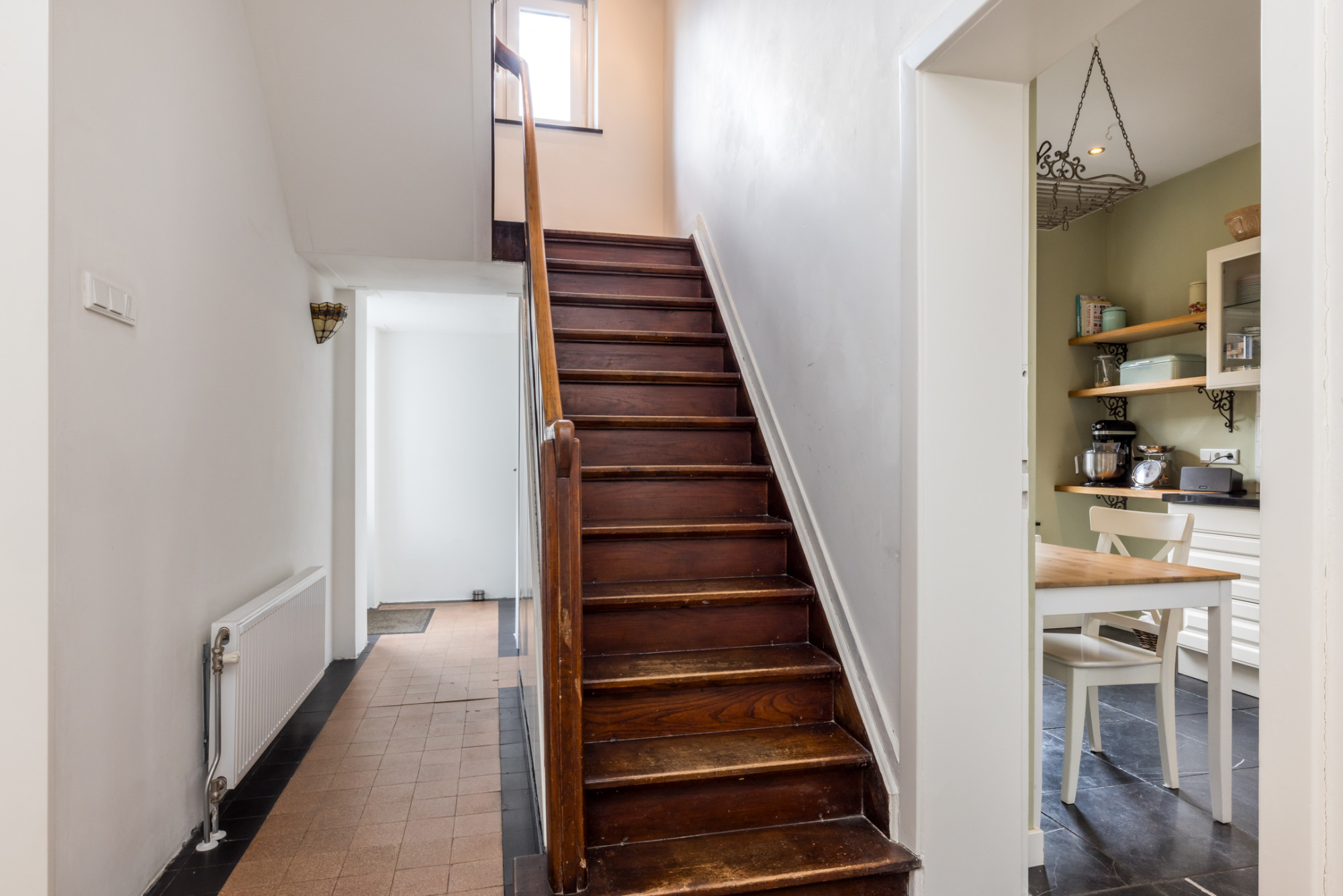 De fraaie entree- hal is v.v. authentieke vloer, meterkast en biedt toegang tot speelkamer/ kantoor (2,60 m 2,27 m) en gang. Vanuit de ruime gang heeft men toegang woonkamer, eetkamer keuken, deur naar kelder en moderne betegelde toiletruimte v.v. zwevend closet en fonteintje. De sfeervolle living verdeel in woon en eetkamer. De woonkamer (4,49 m x 3,97 m) aan de voorzijde gelegen is v.v. gashaard een heeft middels ensuite deuren toegang tot eetkamer (3,98 m x 3,48 m). Vanuit de eetkamer heeft men middels dubbele openslaande deuren ideaal tuincontact. De ruime keuken (5,65 m x 2,57 m) v.v. plavuizenvloer, installatie en apparatuur t.w.: 5-pits gas kooktoestel met oven, afzuigkap, vaatwasser, koelkast en warm water boiler.