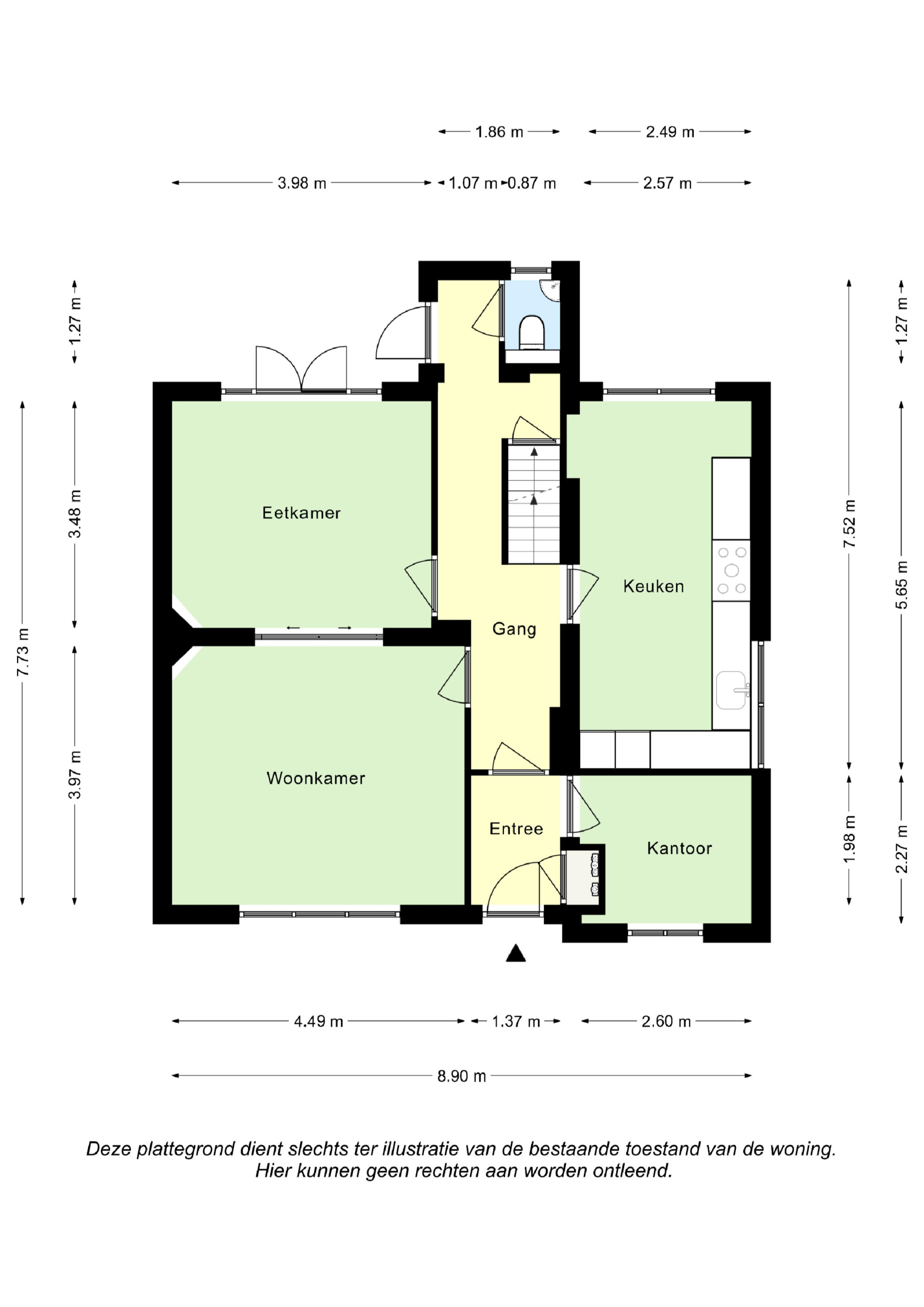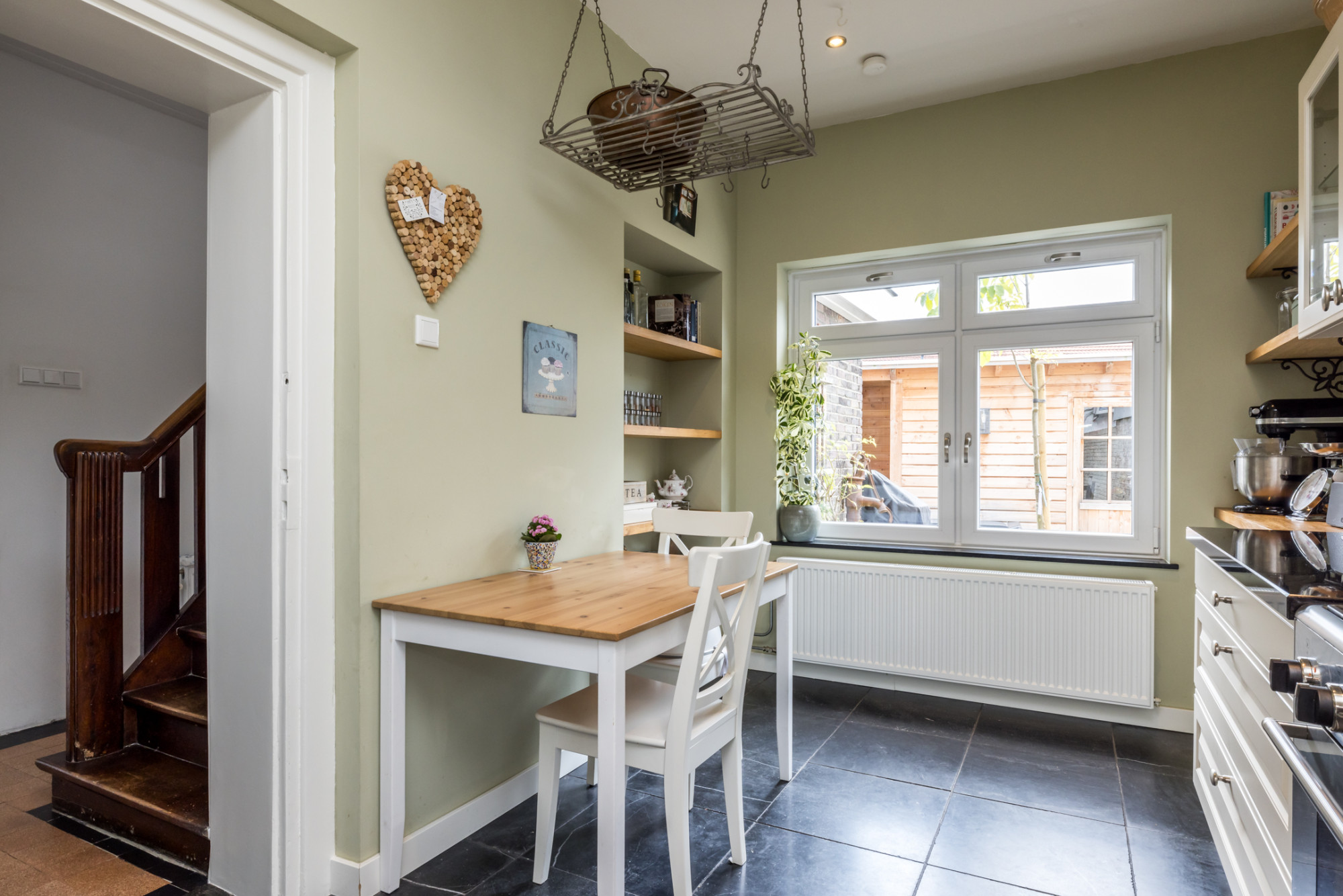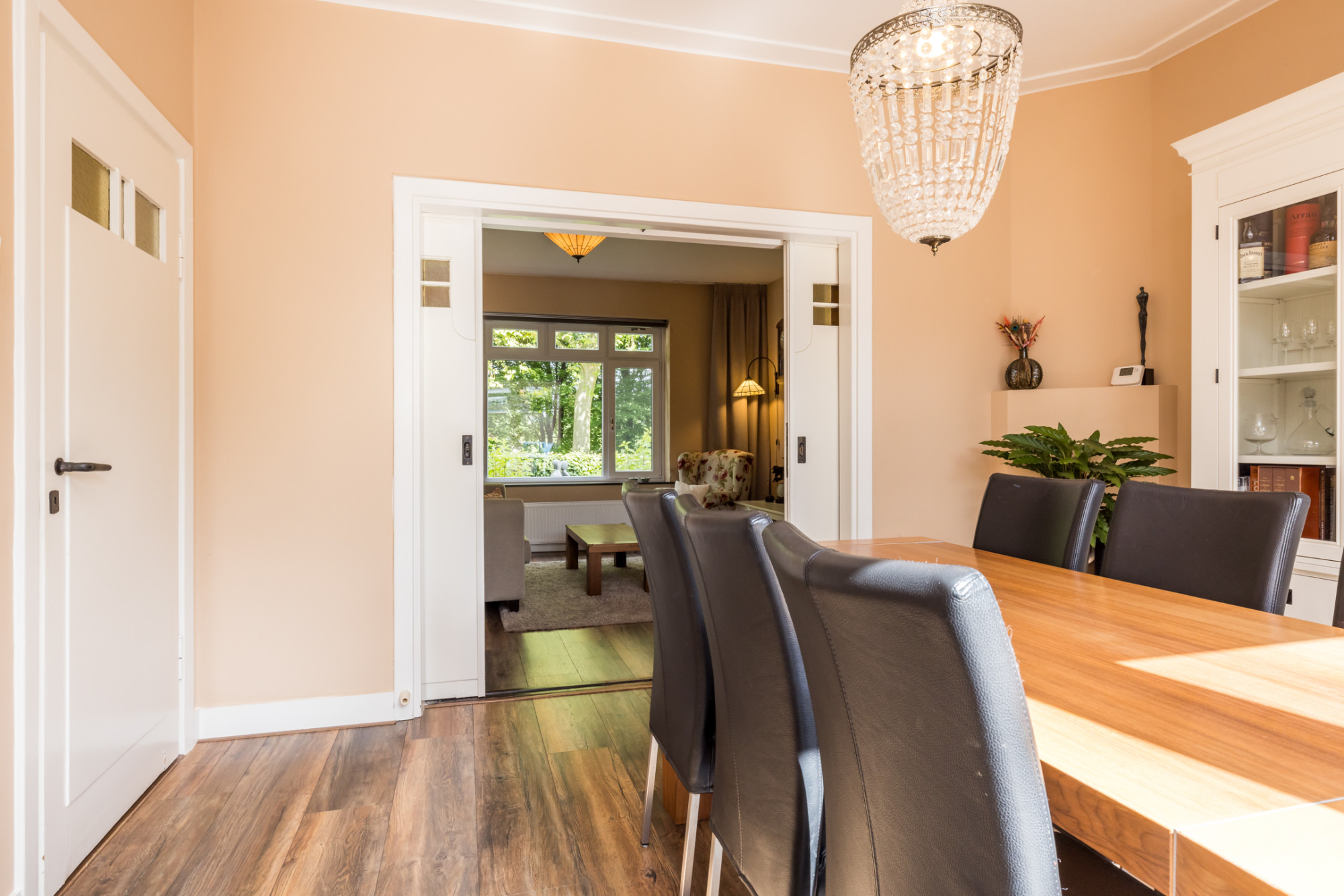 De fraaie entree- hal is v.v. authentieke vloer, meterkast en biedt toegang tot speelkamer/ kantoor (2,60 m 2,27 m) en gang. Vanuit de ruime gang heeft men toegang woonkamer, eetkamer keuken, deur naar kelder en moderne betegelde toiletruimte v.v. zwevend closet en fonteintje. De sfeervolle living verdeel in woon en eetkamer. De woonkamer (4,49 m x 3,97 m) aan de voorzijde gelegen is v.v. gashaard een heeft middels ensuite deuren toegang tot eetkamer (3,98 m x 3,48 m). Vanuit de eetkamer heeft men middels dubbele openslaande deuren ideaal tuincontact. De ruime keuken (5,65 m x 2,57 m) v.v. plavuizenvloer, installatie en apparatuur t.w.: 5-pits gas kooktoestel met oven, afzuigkap, vaatwasser, koelkast en warm water boiler.