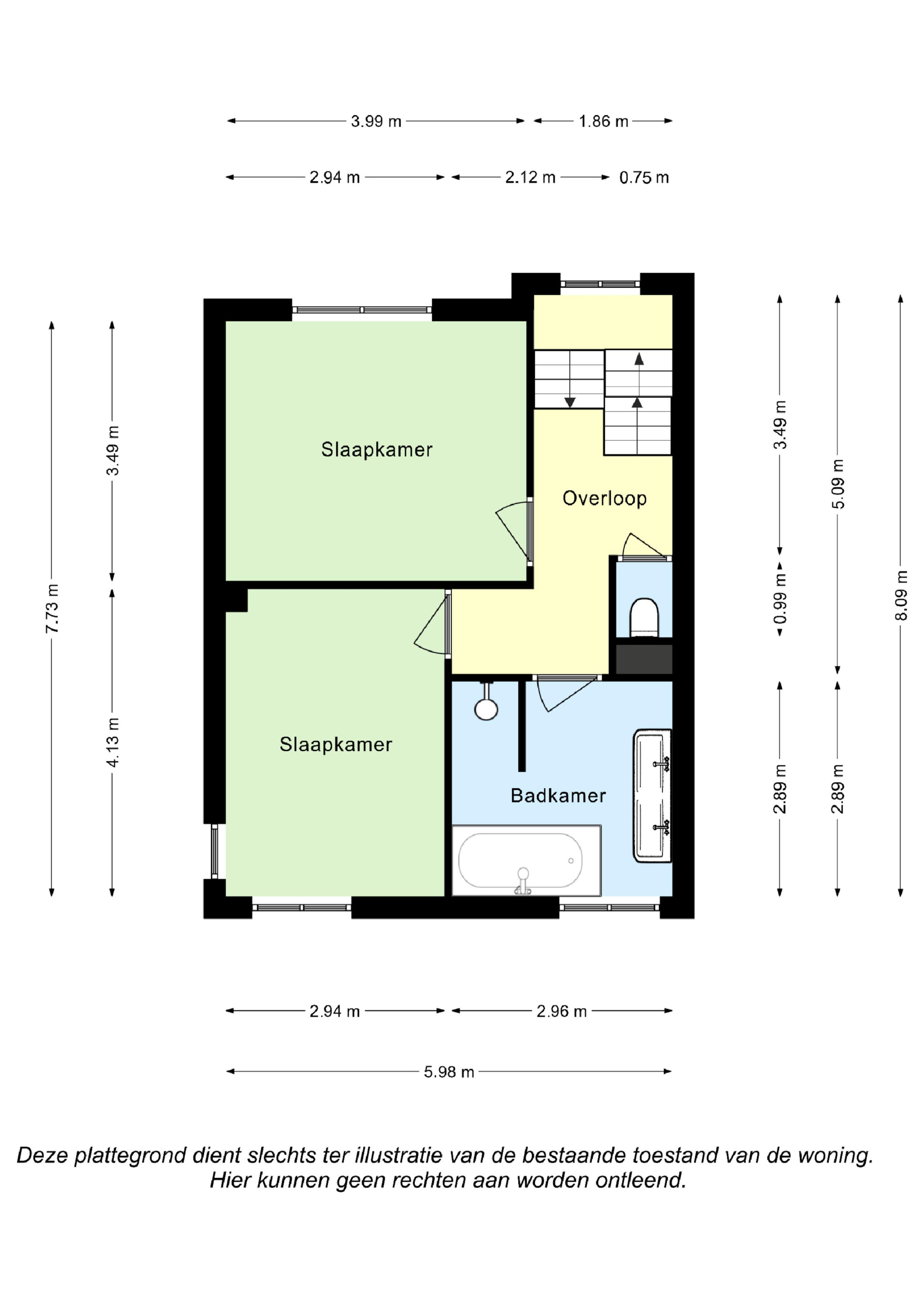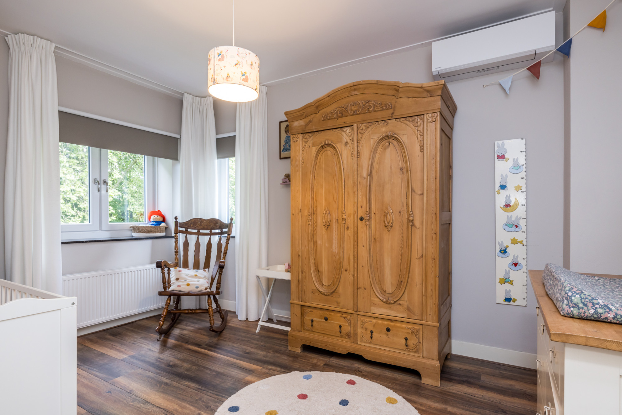 De overloop biedt toegang tot 2 slaapkamers (beide slaapkamers v.v. airco), separaat toilet en moderne badkamer.