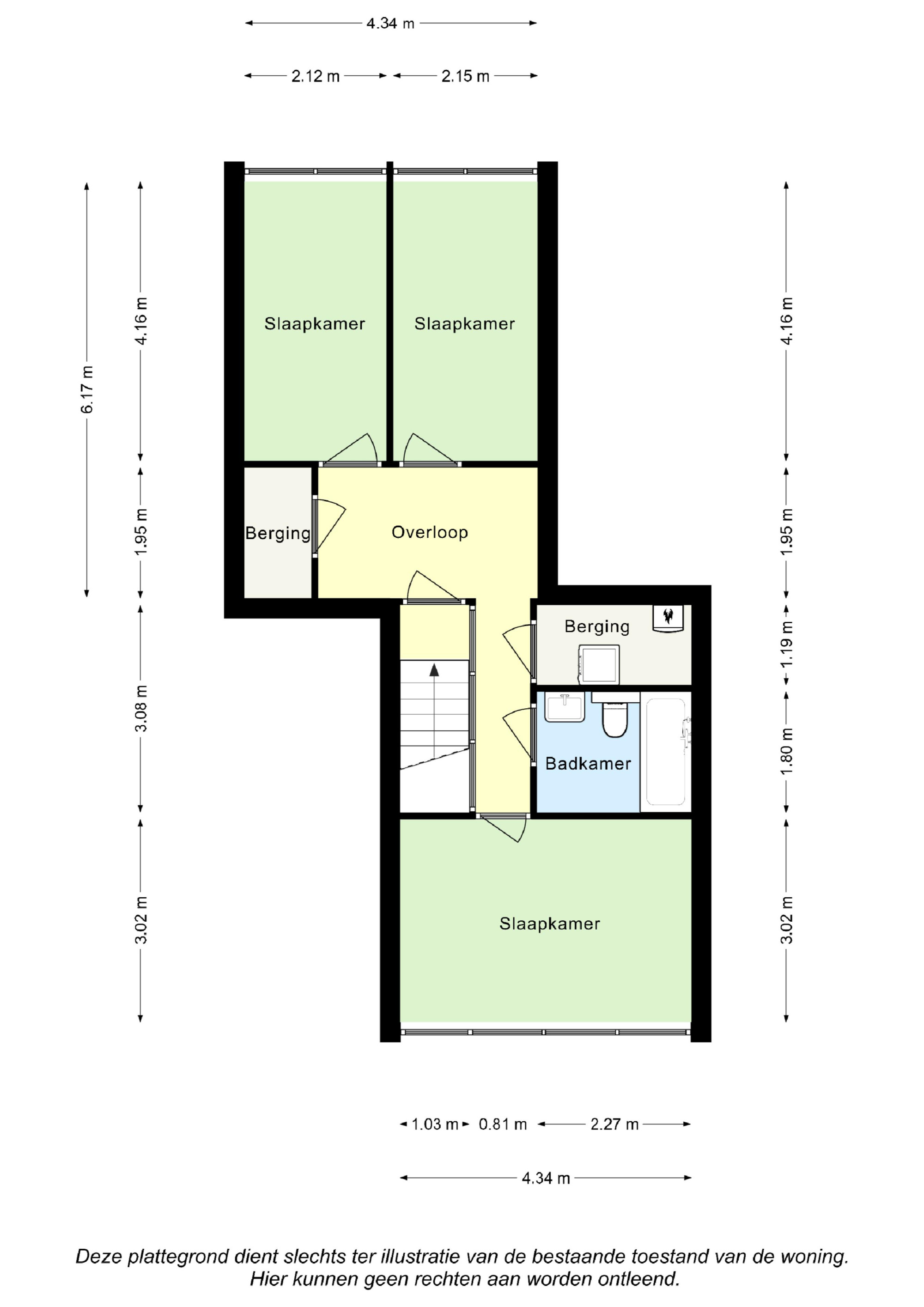 Slaapkamer II (4,16 m x 2,12 m) aan de achterzijde gelegen en is v.v. vloerbedekking