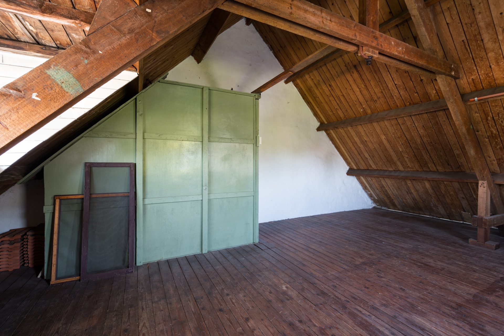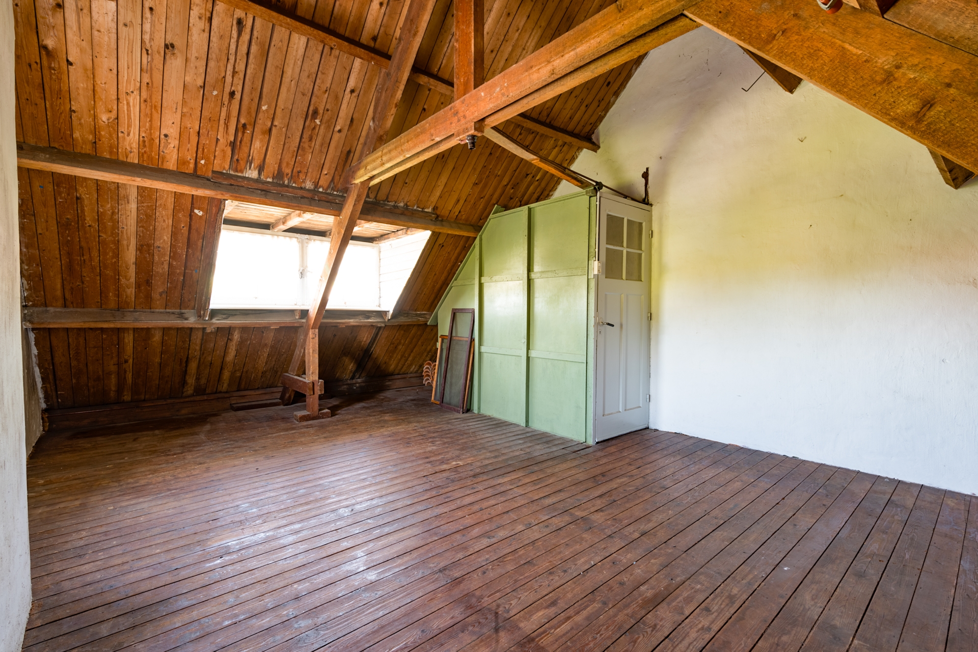 Met de vaste trap komen we op de zolder. Een zolder met dakkapel aan de voorzijde. Hier kan zonder al te veel werk een ruime slaapkamer van worden gemaakt. Eventueel met een scheidingswand, waardoor nog voldoende ruimte overblijft voor was- en/of bergruimte.
