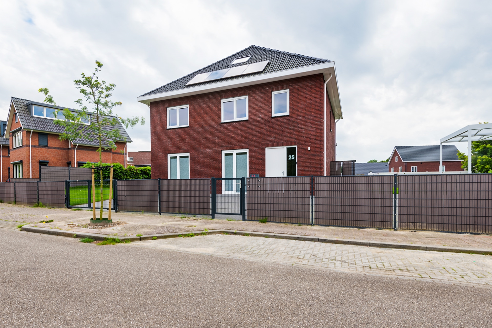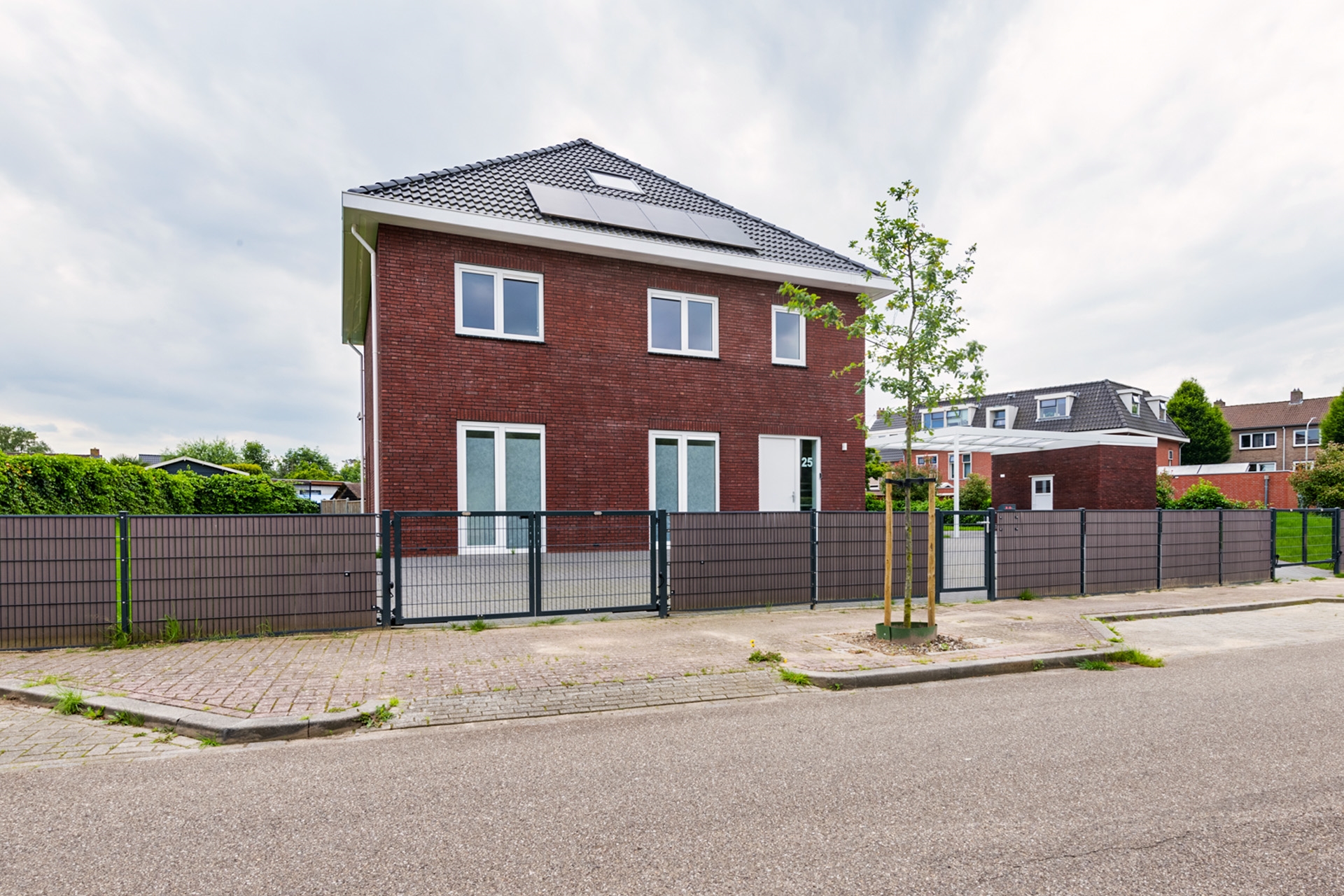 tegenover het Heidser Park. Opgeleverd in 2023 en omgeven door een omheind perceel van