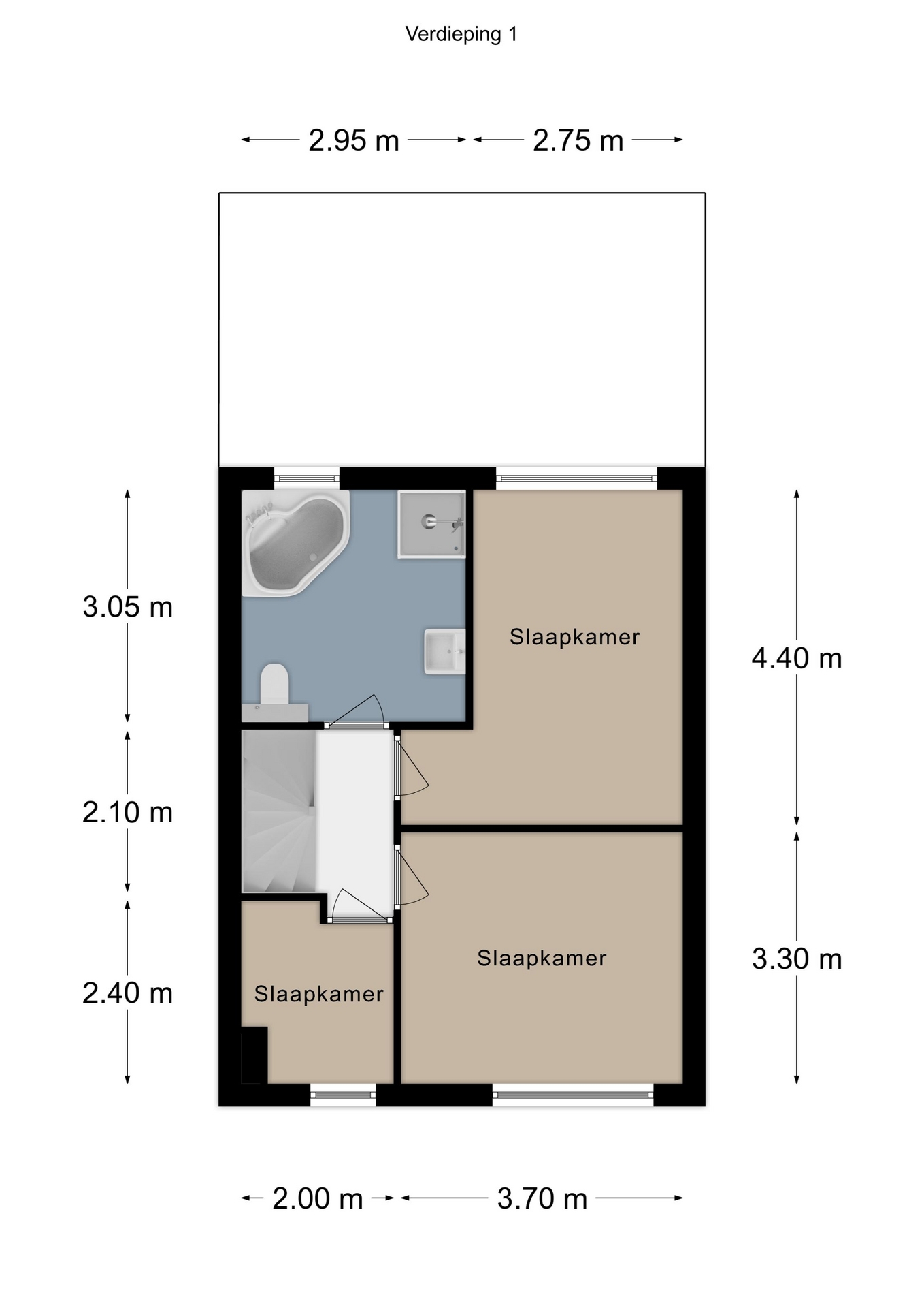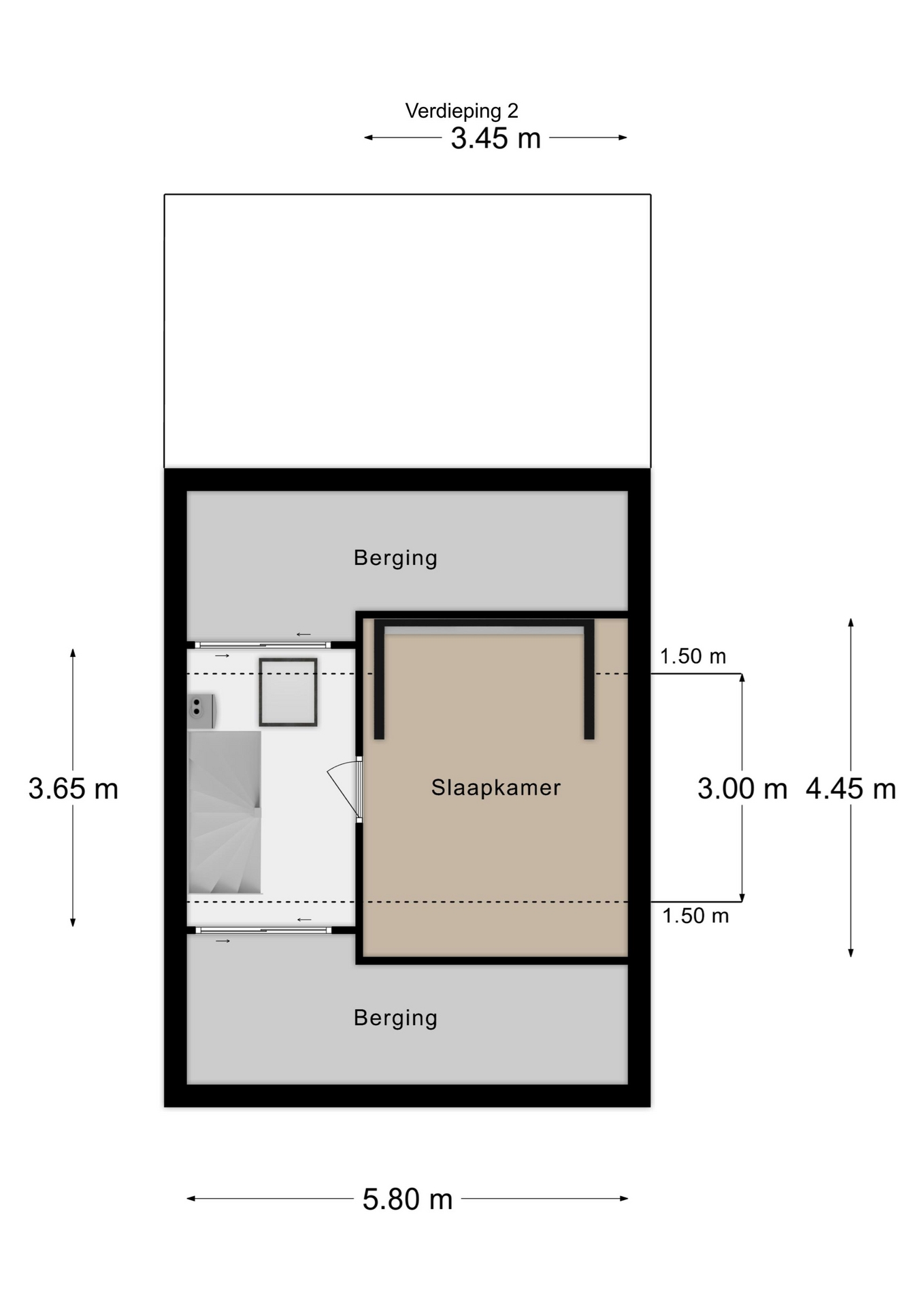 Deze verdieping is te bereiken met een vaste trap.