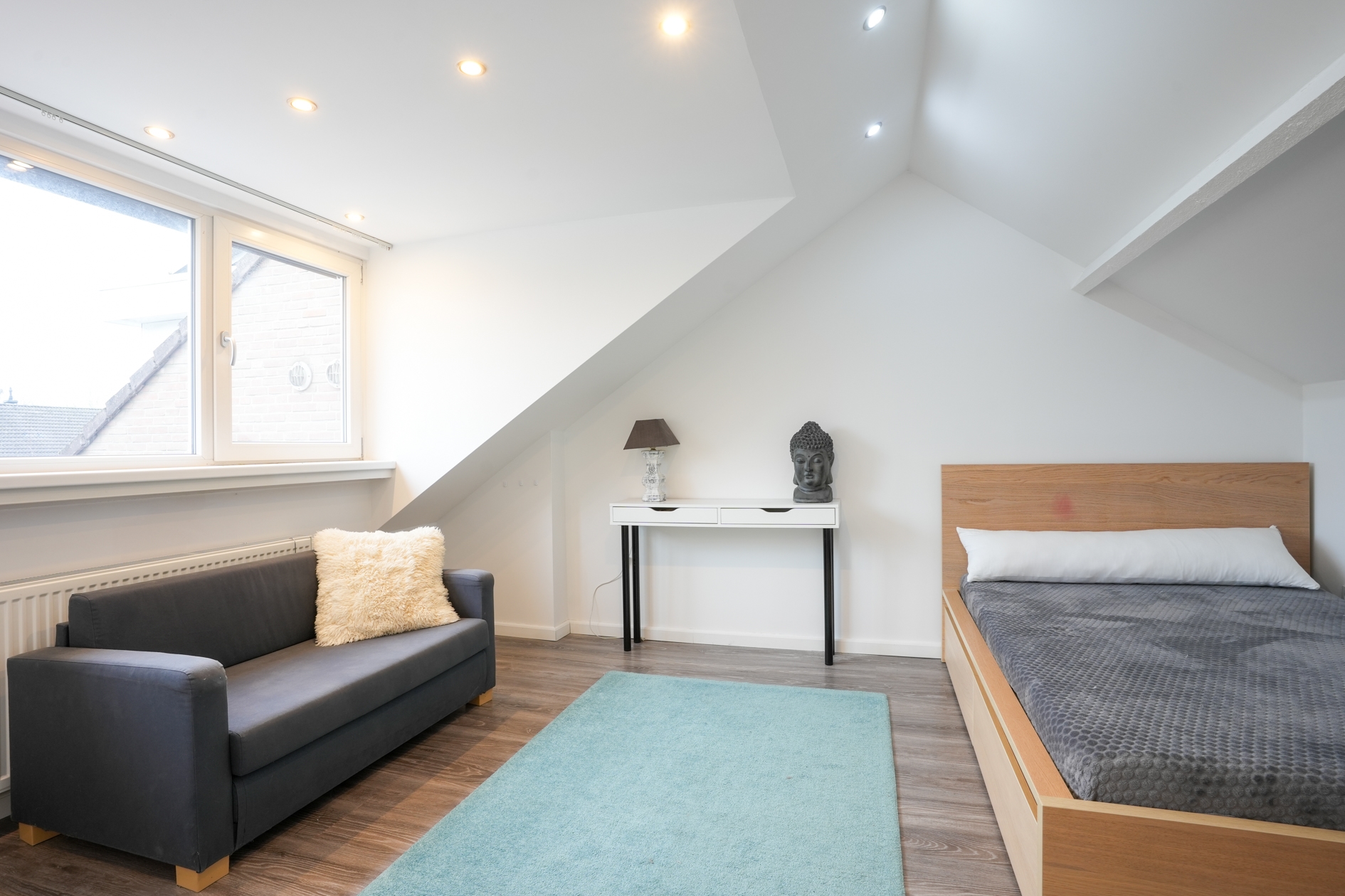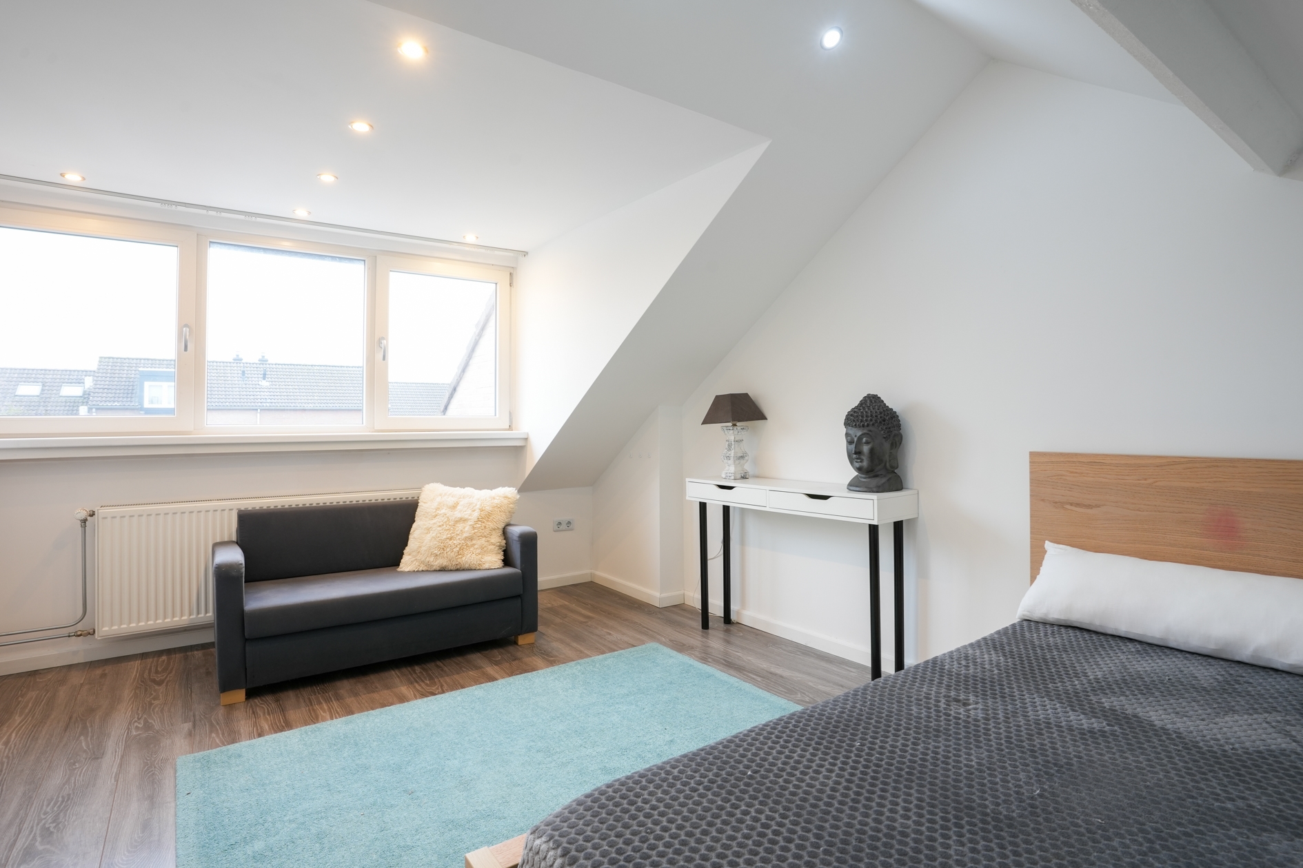 Ruime 3de slaapkamer / werkkamer van ca 11 m2 met ruime dakkapel en voldoende opbergmogelijkheden.