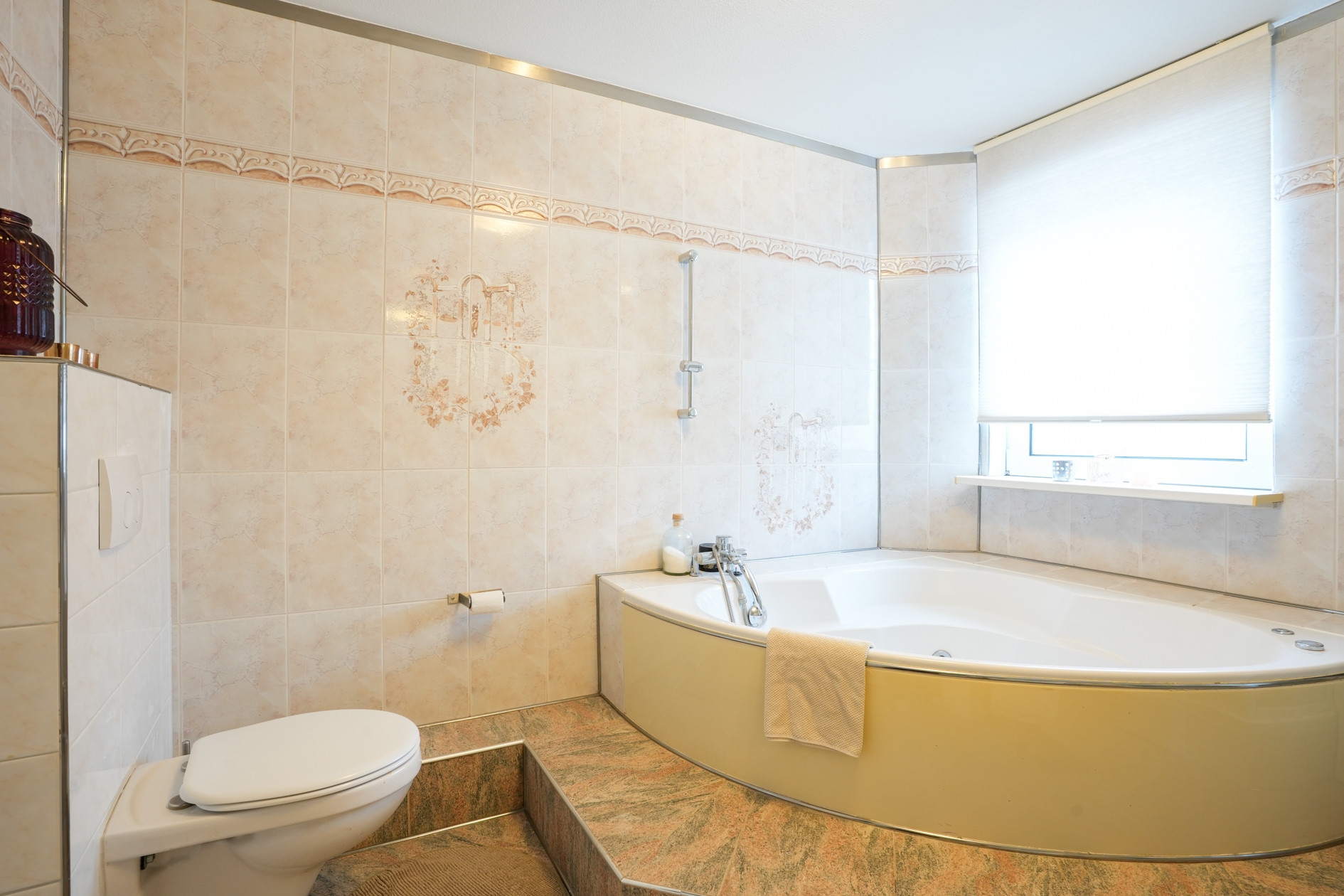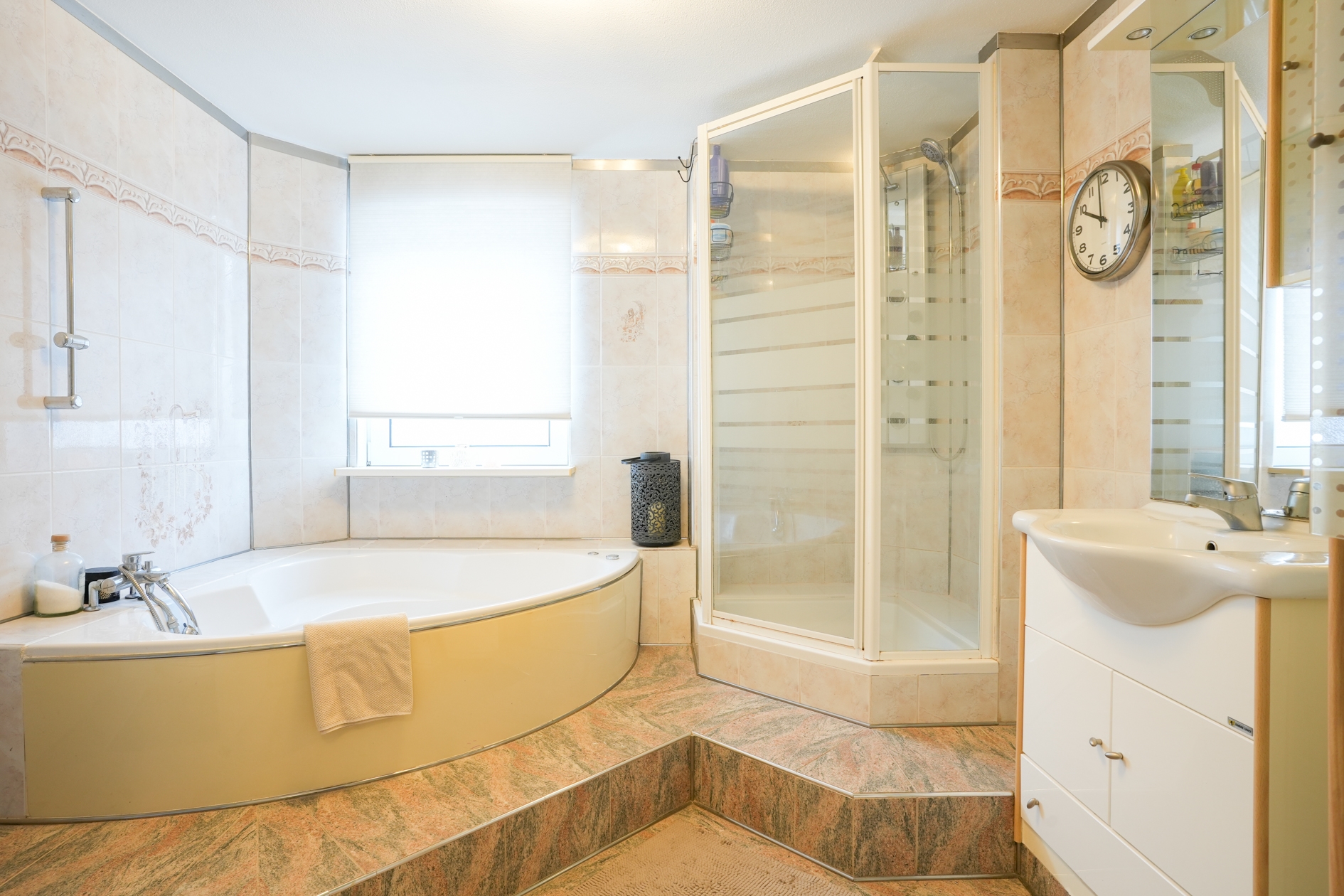 Vanaf de overloop bereikt u de 2 slaapkamers van respectievelijk 13m2 / 12m2, de wasruimte van circa 5m2 en de ruime badkamer met ligbad, douche, wastafel meubel en 2de toilet.