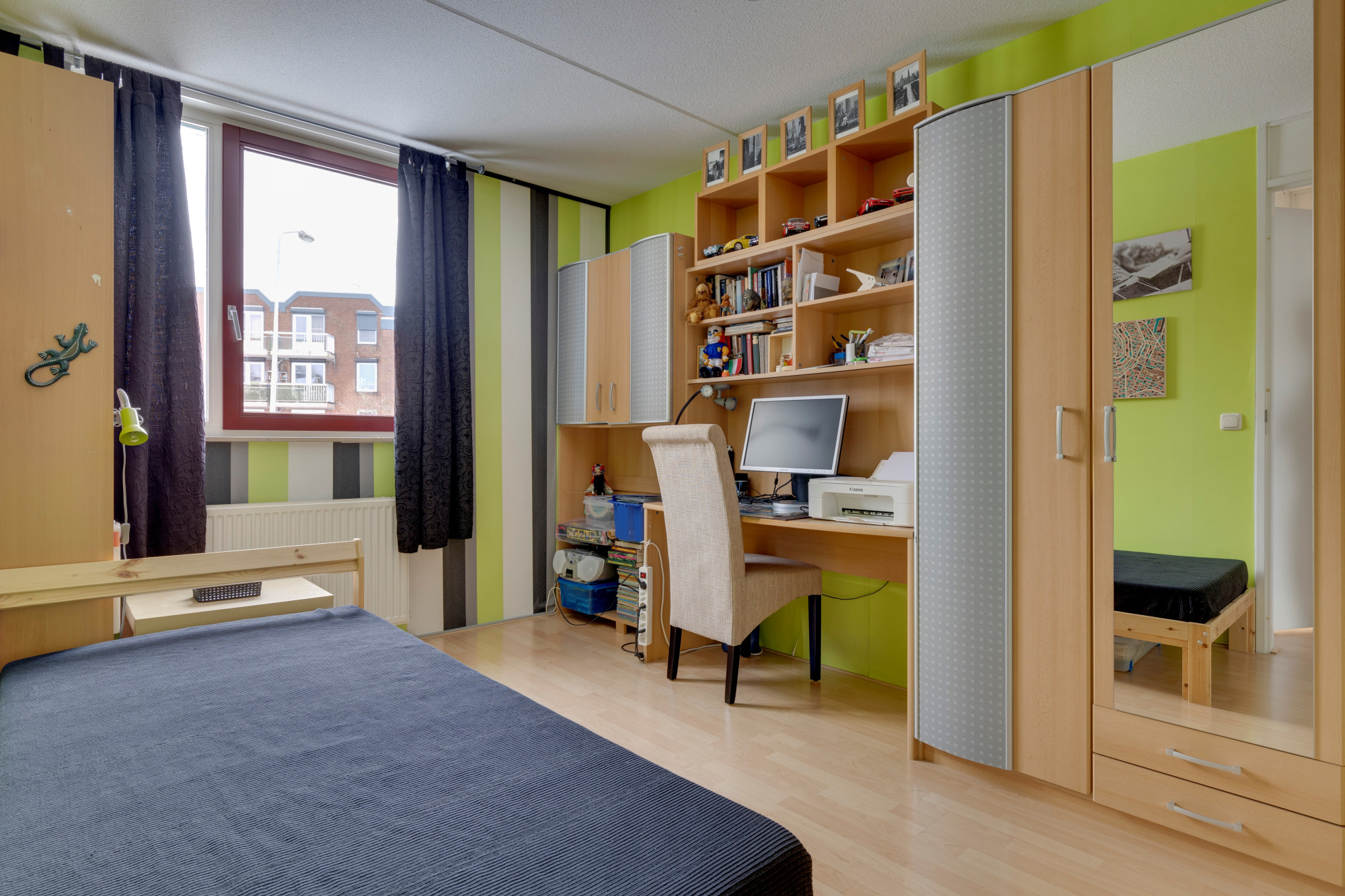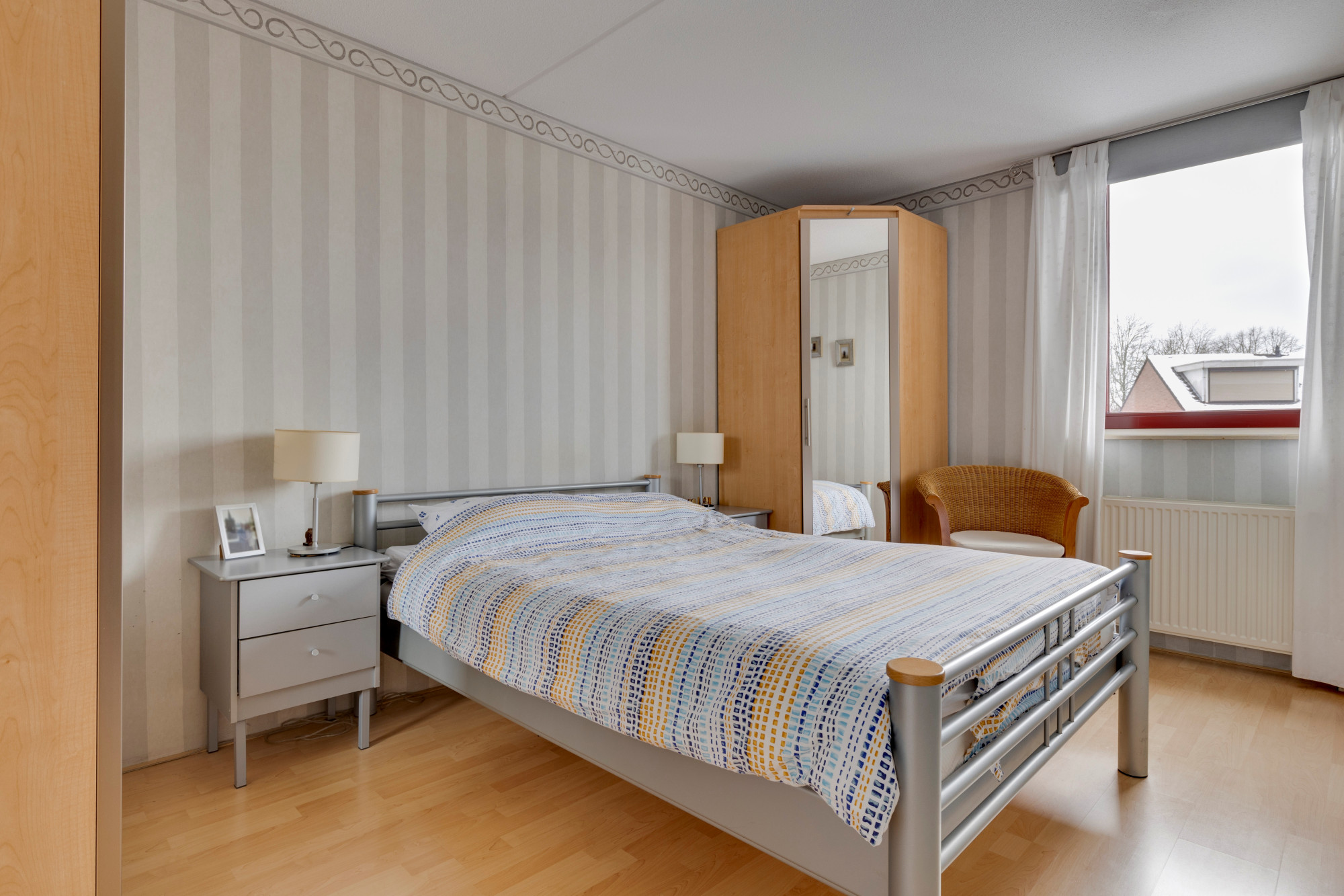 Slaapkamer 2 V/Z voorzien van een laminaatvloer.