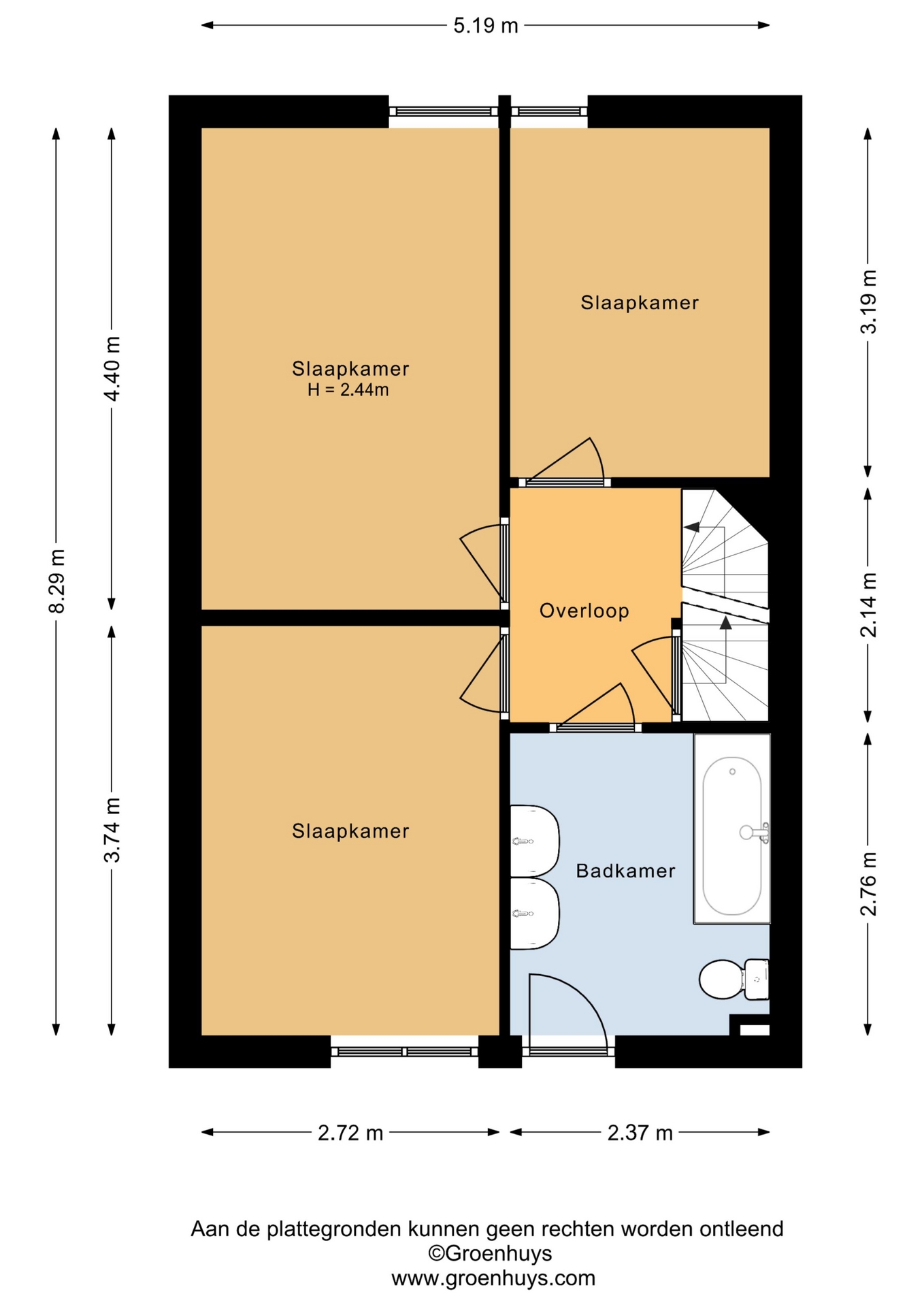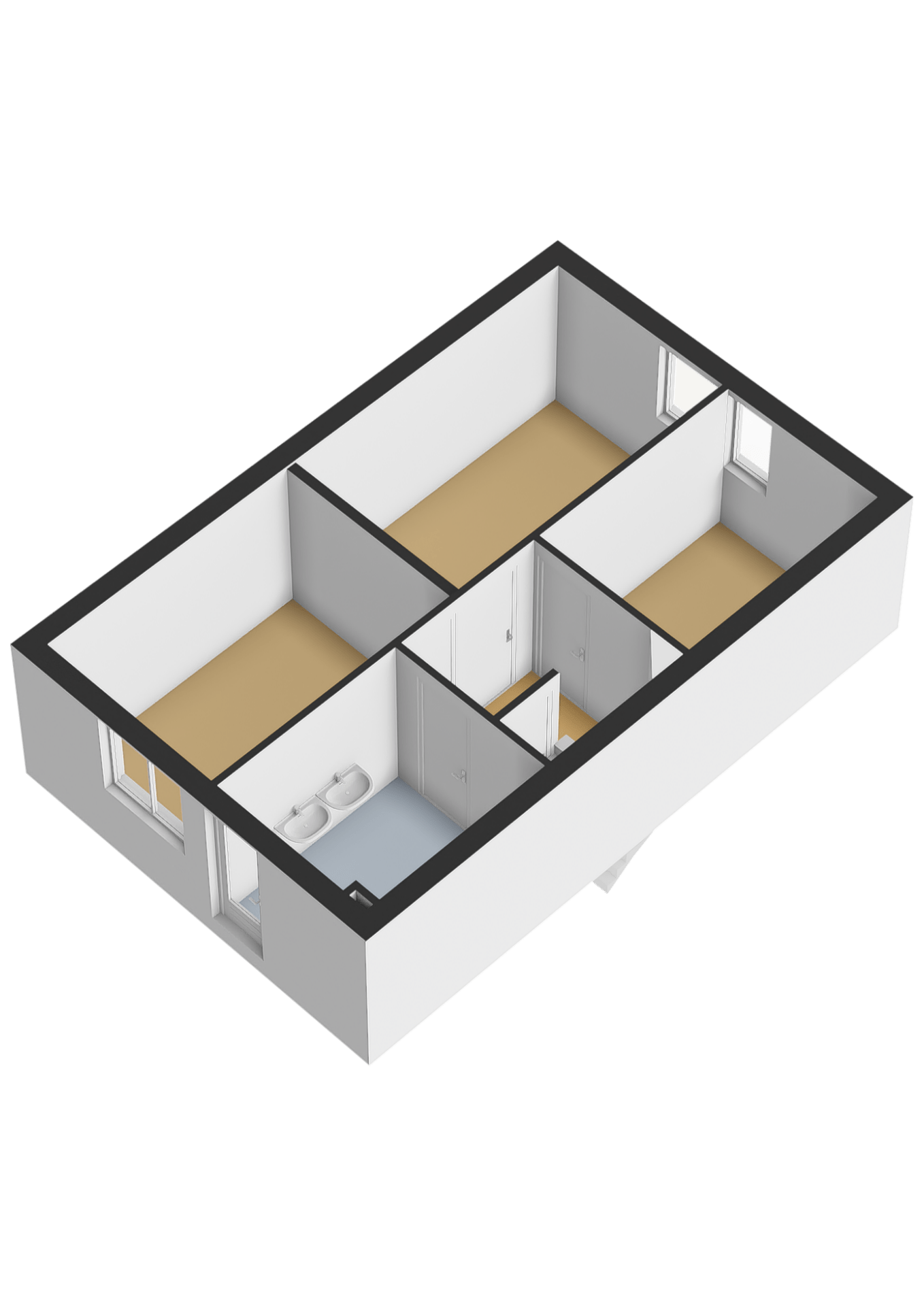 3 slaapkamers, en een betegelde badkamer.
