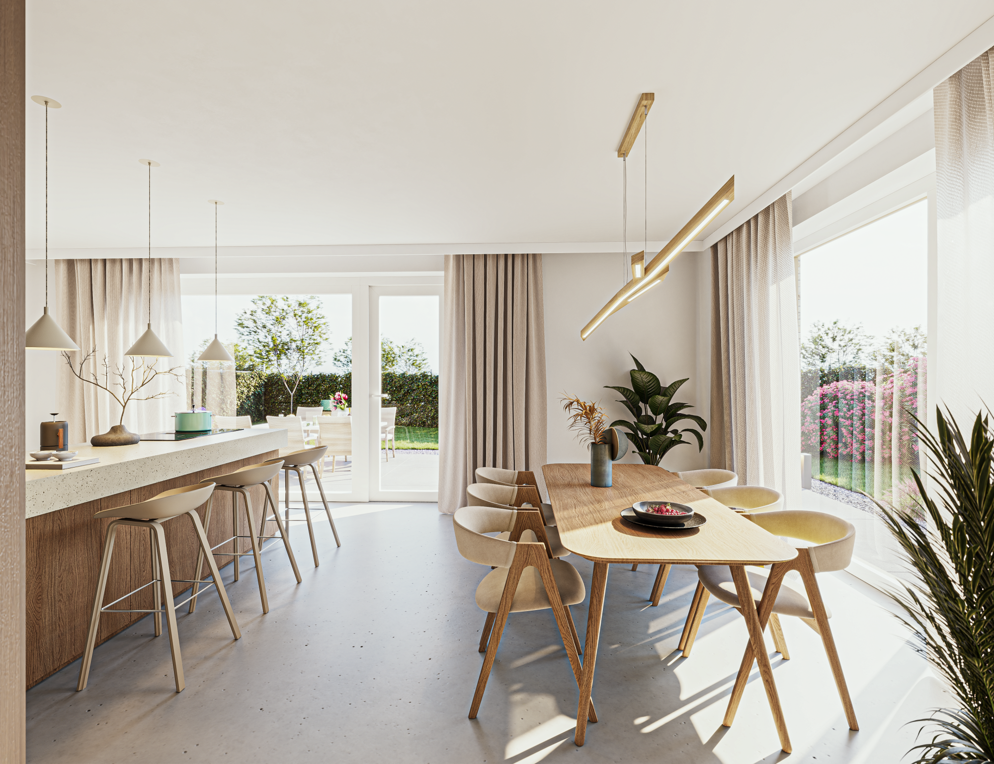 De ruime Cascade woningen zijn, op de hoekwoningen en de situering van enkele ramen na, identiek. Op de begane grond beschikken de hoekkavels 298 en 301 over een iets grotere leefkeuken van 34m2 met een erker/uitbouw. Daarnaast heeft kavel 301 een