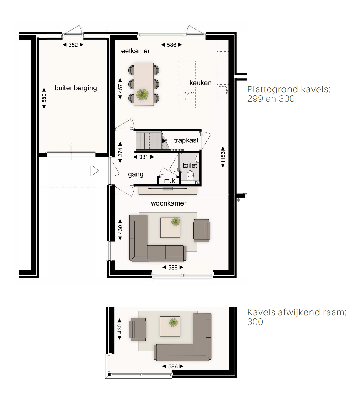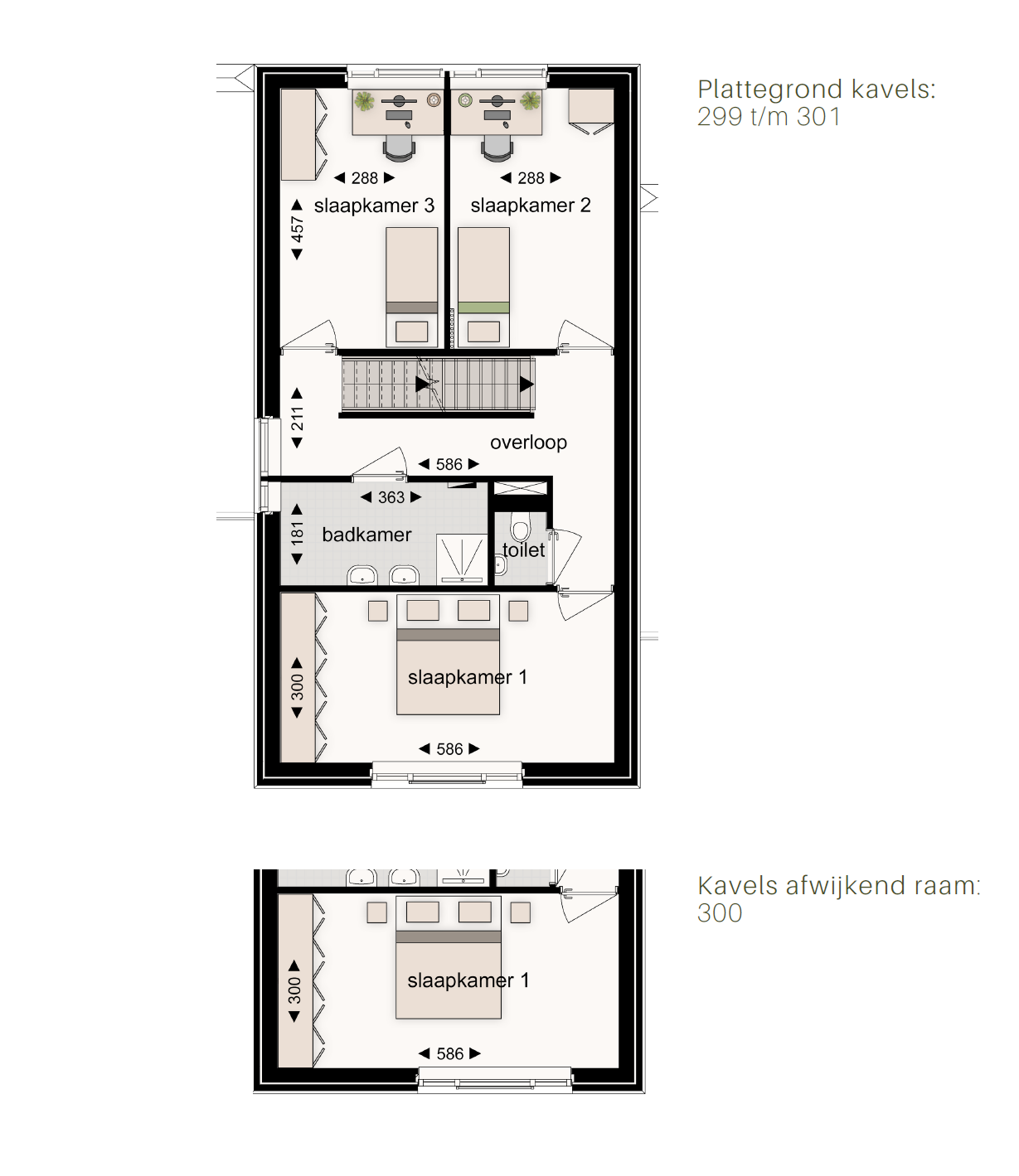 woningen 298 en 301 zijn ruimer. De 1e en 2e verdiepingen zijn gelijk.