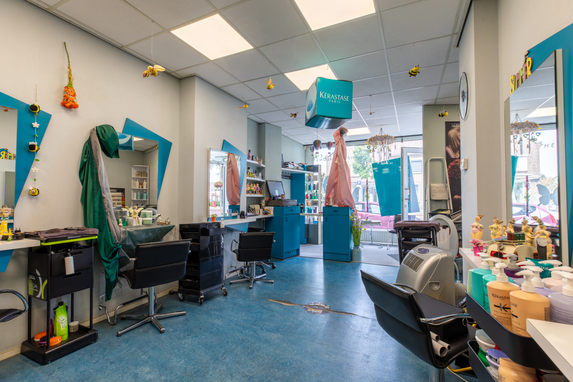 Overdekte entree met toegang tot de winkelruimte/kapsalon met eigen pantry en toilet. Vanuit de achterzijde toegang tot de bovenwoning.