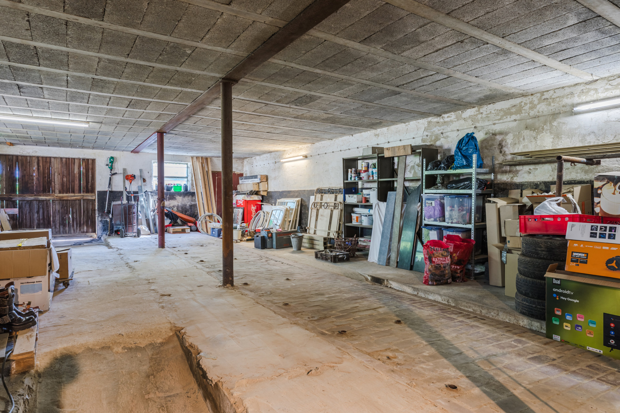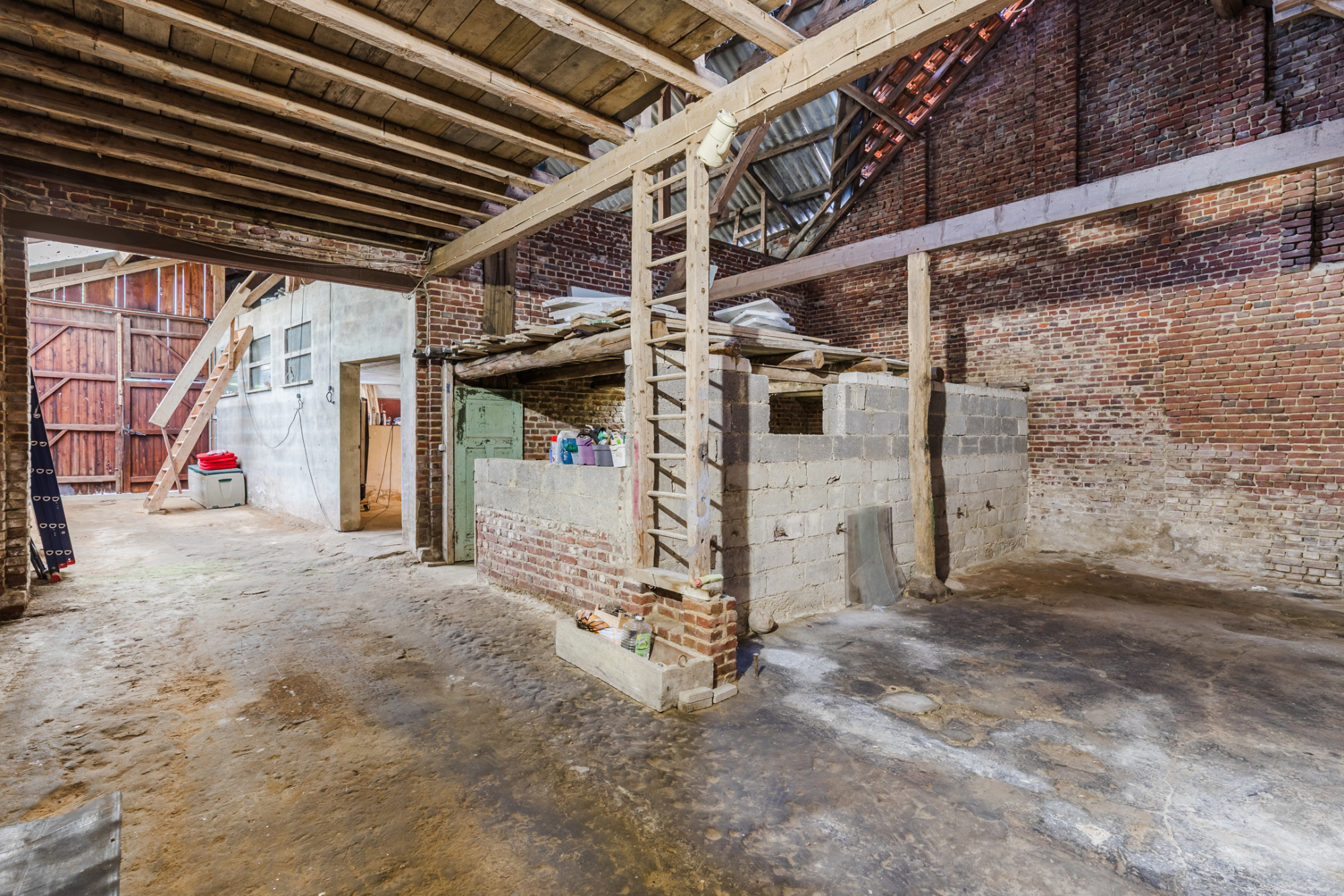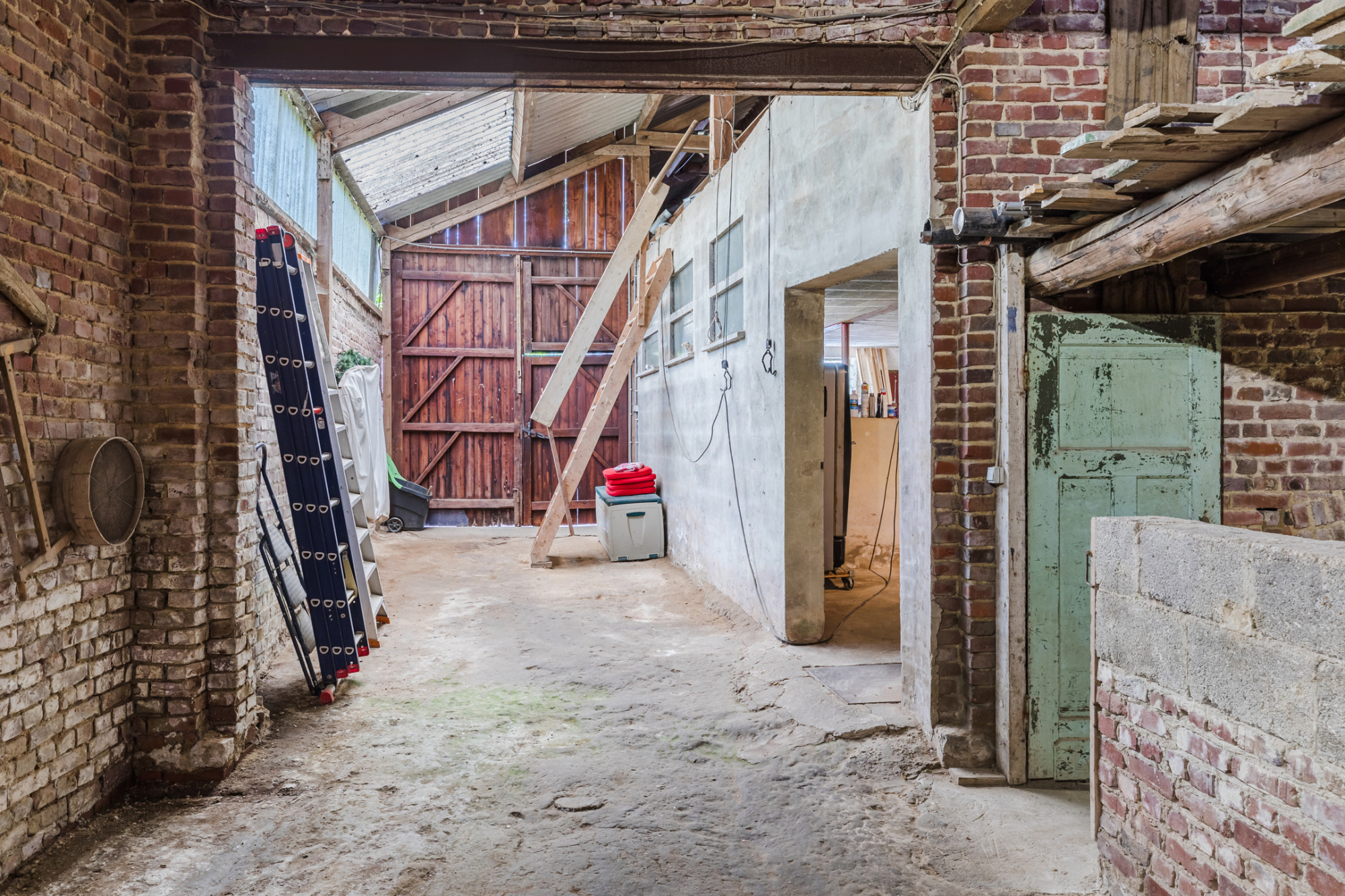 Große Scheune mit mehreren Abteilen und Dachboden.