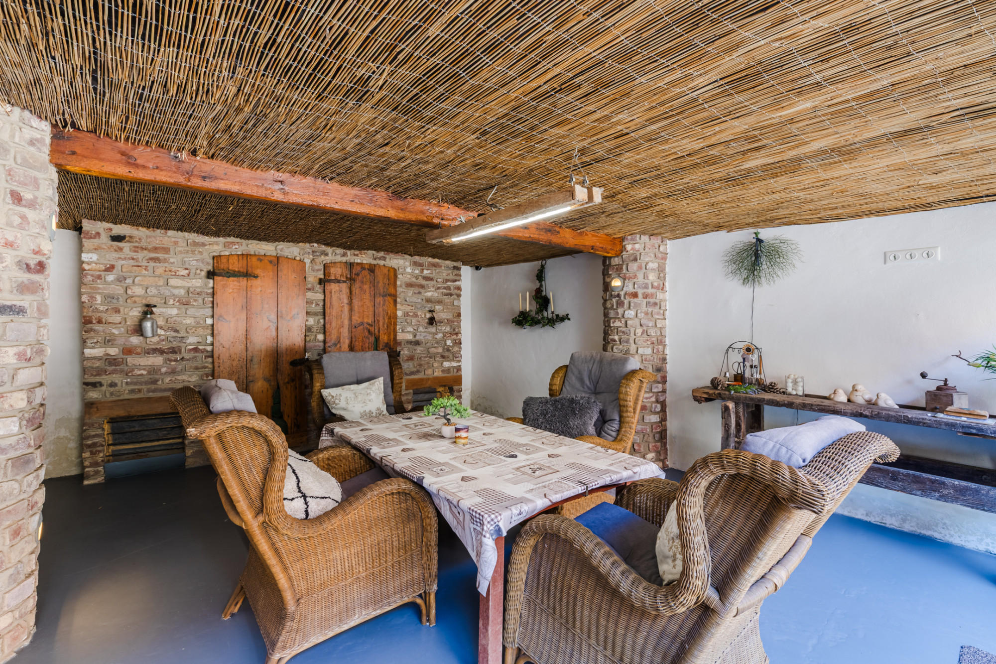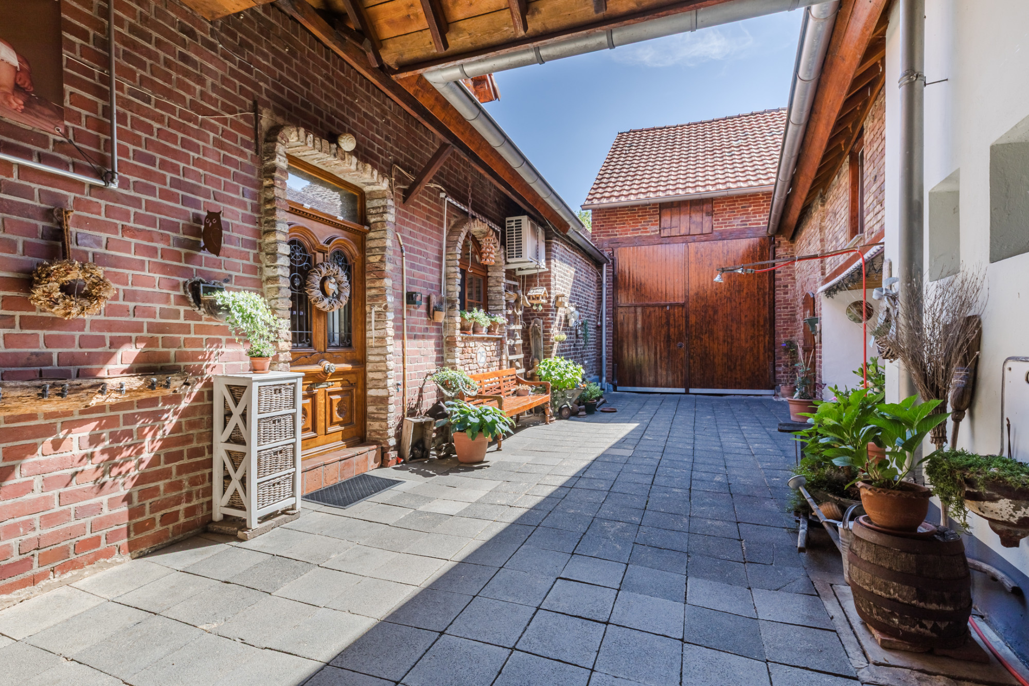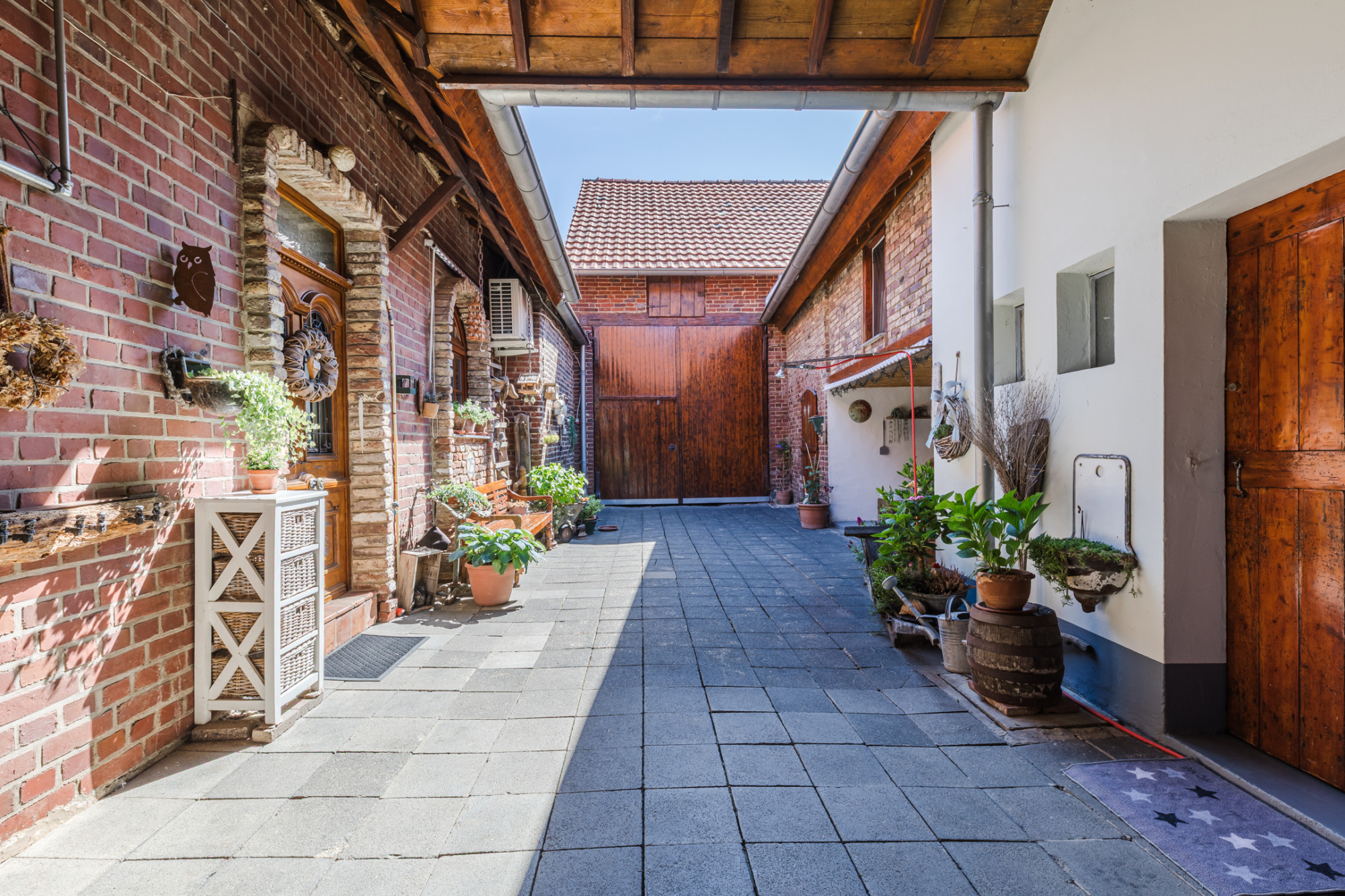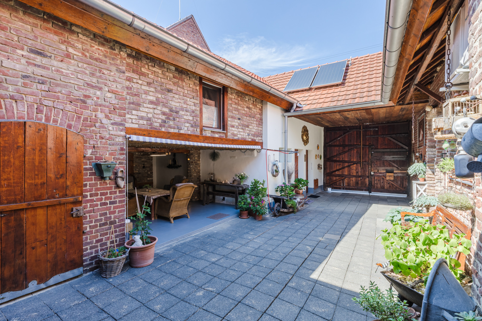 Treten Sie ein in dieses charaktervolle Bauernhaus aus ca. 1900, gelegen auf einem großen Grundstück von 3.696 m². Schon beim Ankommen fallen die wunderschöne Fassade mit Holztor und der schönen Innenhof ins Auge – ideal, um die Morgensonne zu genießen oder den Tag unter der gemütlichen Lounge-Überdachung ausklingen zu lassen.