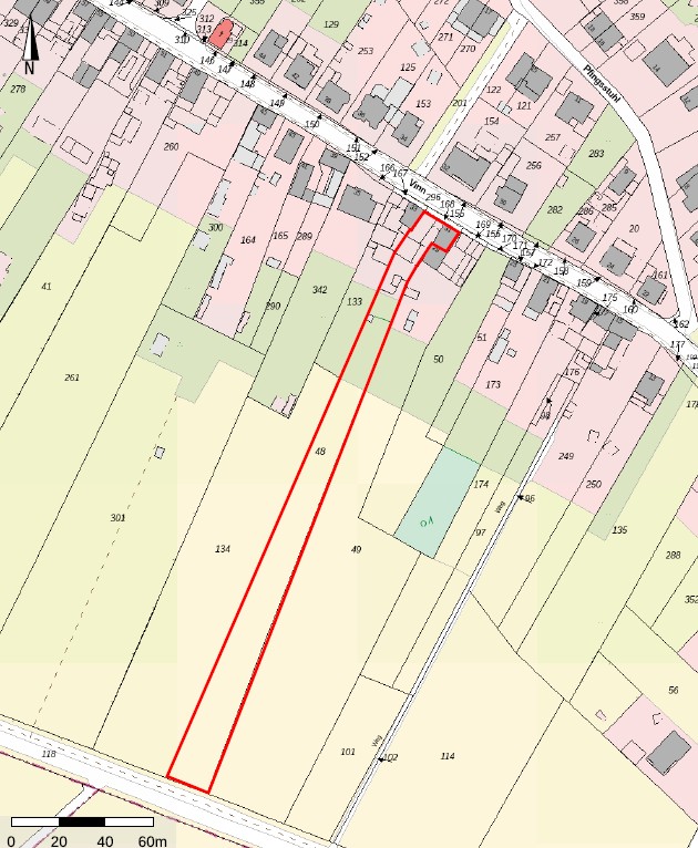 Landwirtschaftsfläche ca. 184 x 14 m – Umwandlung in Weideland möglich.