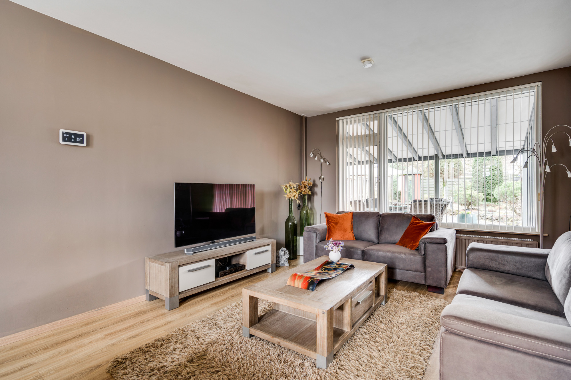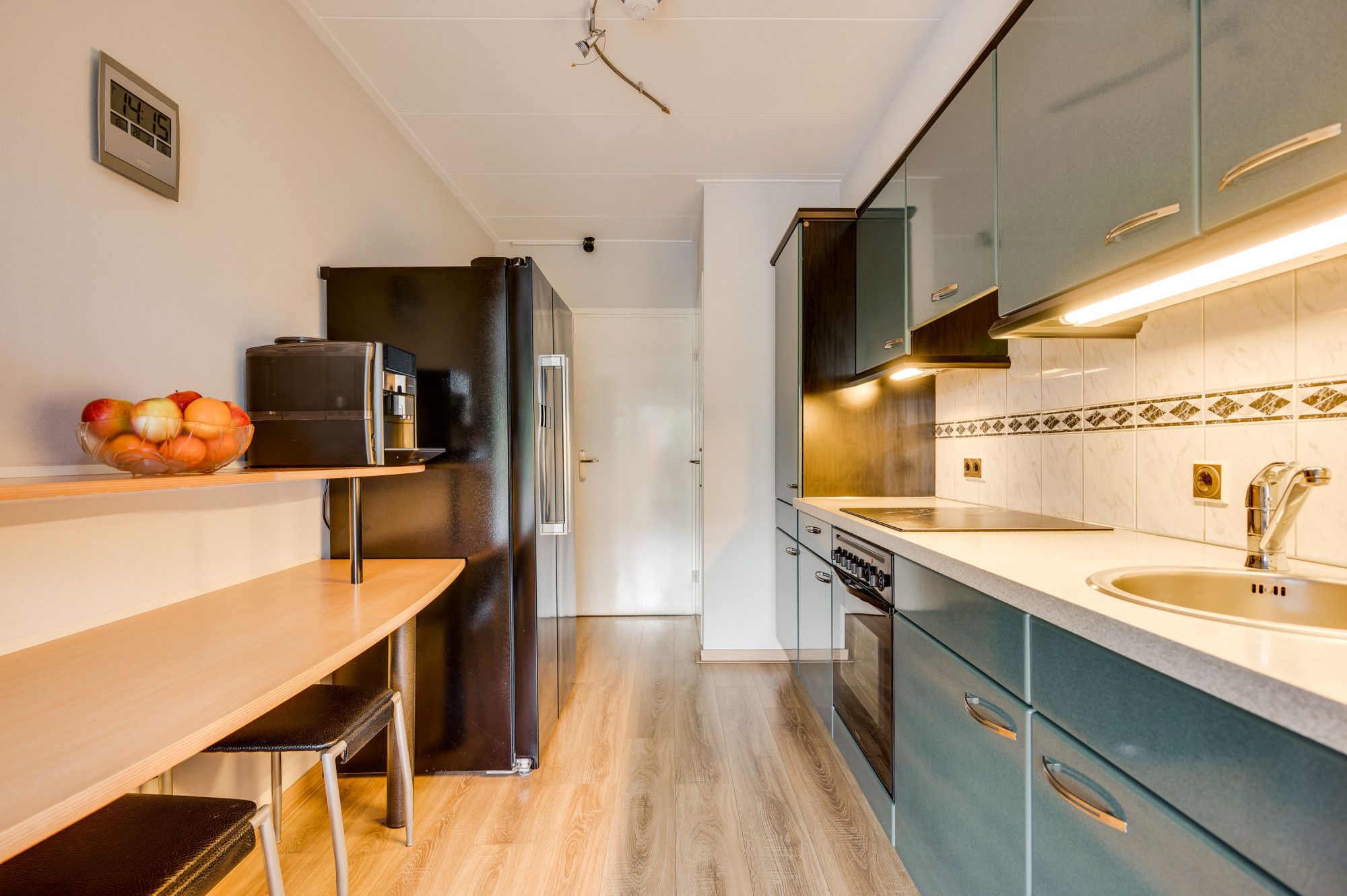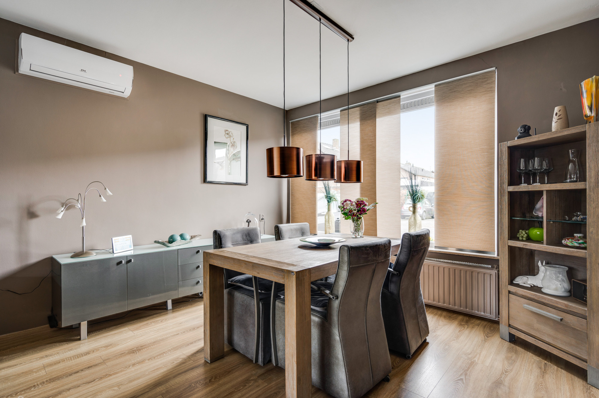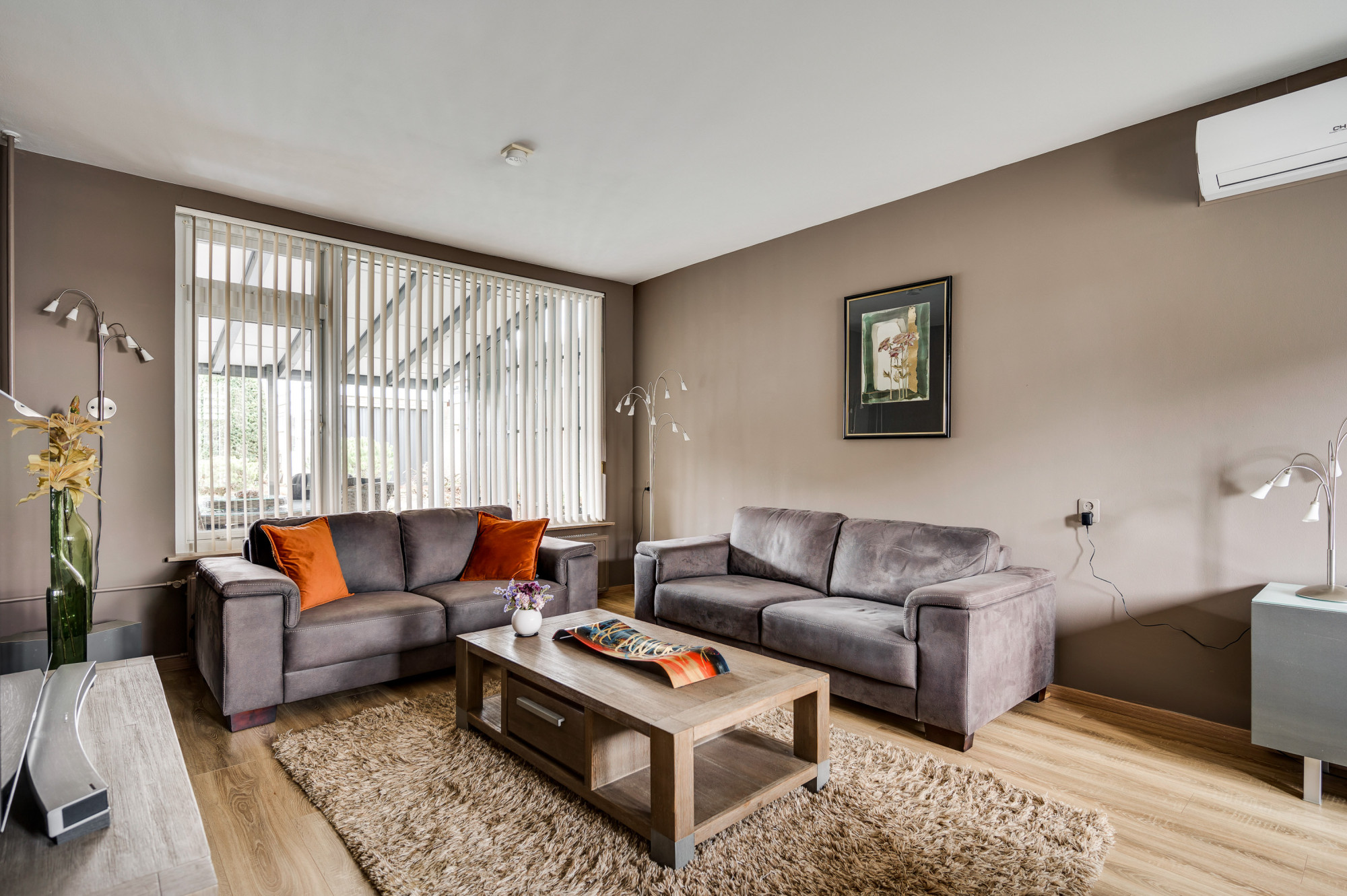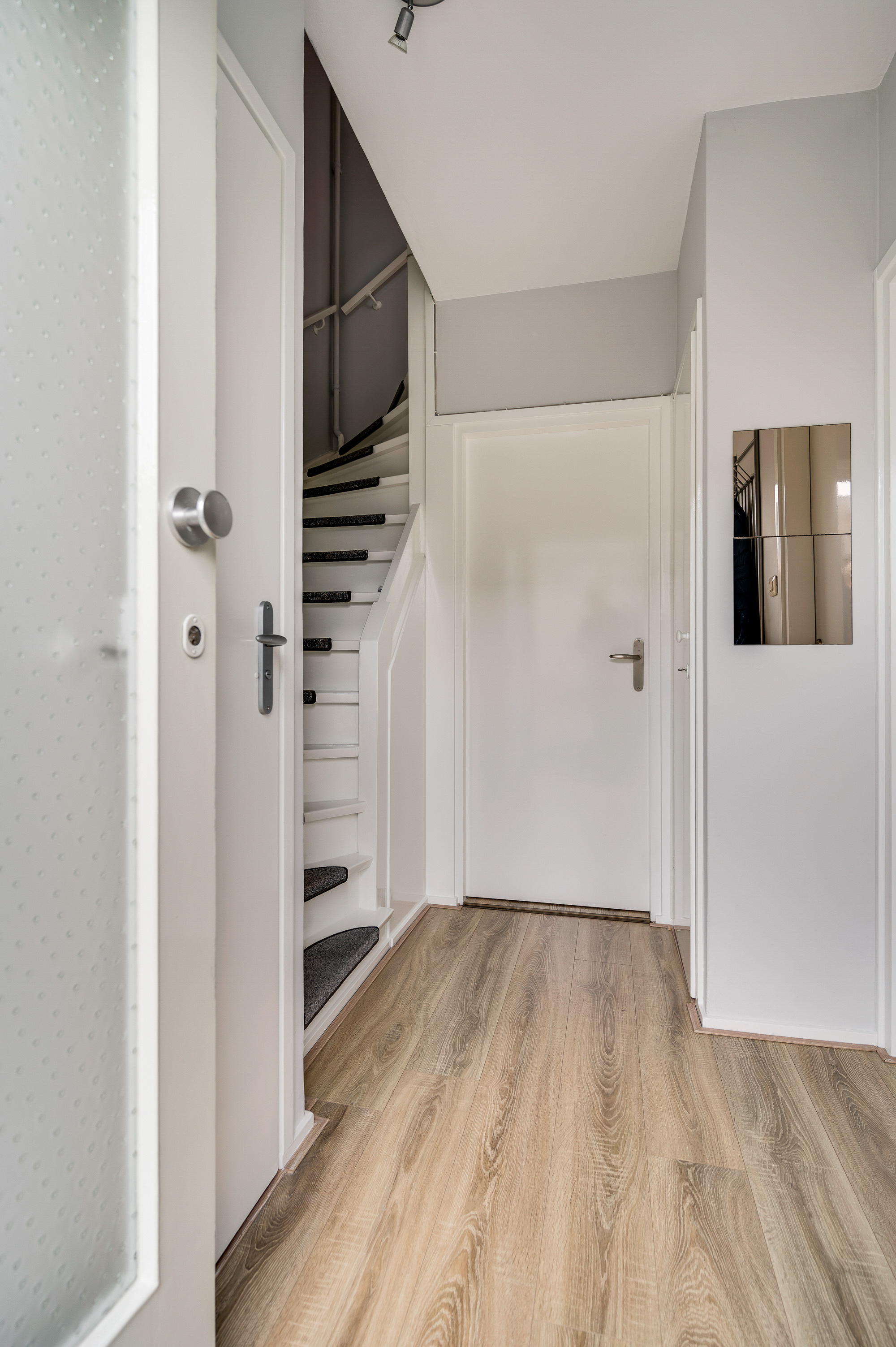 Bij binnenkomst betreedt u de hal met de trapopgang naar de eerste verdieping, de meterkast en de toiletruimte. Vanuit de hal heeft u toegang tot zowel de keuken als de woonkamer. De woonkamer geniet van een fijne lichtinval dankzij de grote raampartijen en is voorzien van airconditioning. Dit is een aangename ruimte om te ontspannen. De keuken is uitgerust met een inductiekookplaat, afzuigkap en een oven. De koel-/vriescombinatie wordt ter overname aangeboden. Extra praktisch is de trapkast met witgoedaansluitingen en ruimte voor extra voorraad. Een barretje en een loopdeur naar de achtertuin maken de keuken compleet. De begane grond is grotendeels afgewerkt met een laminaatvloer.