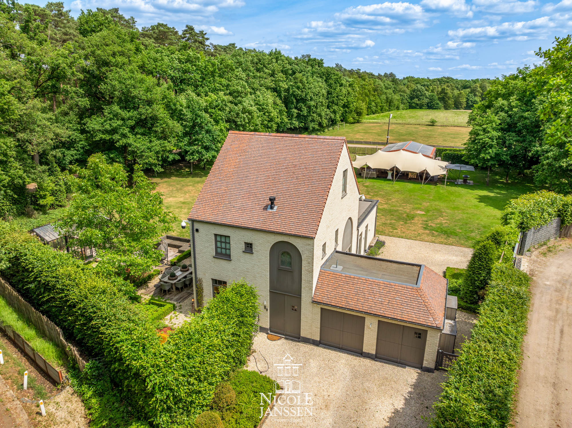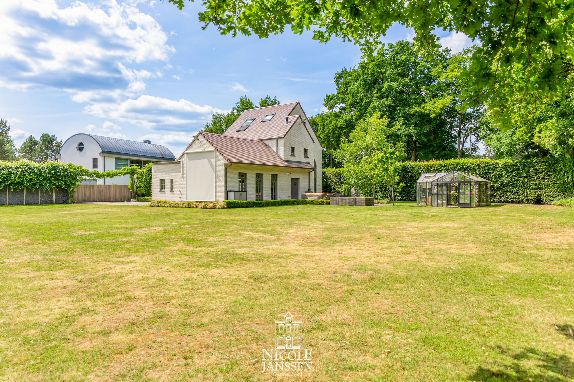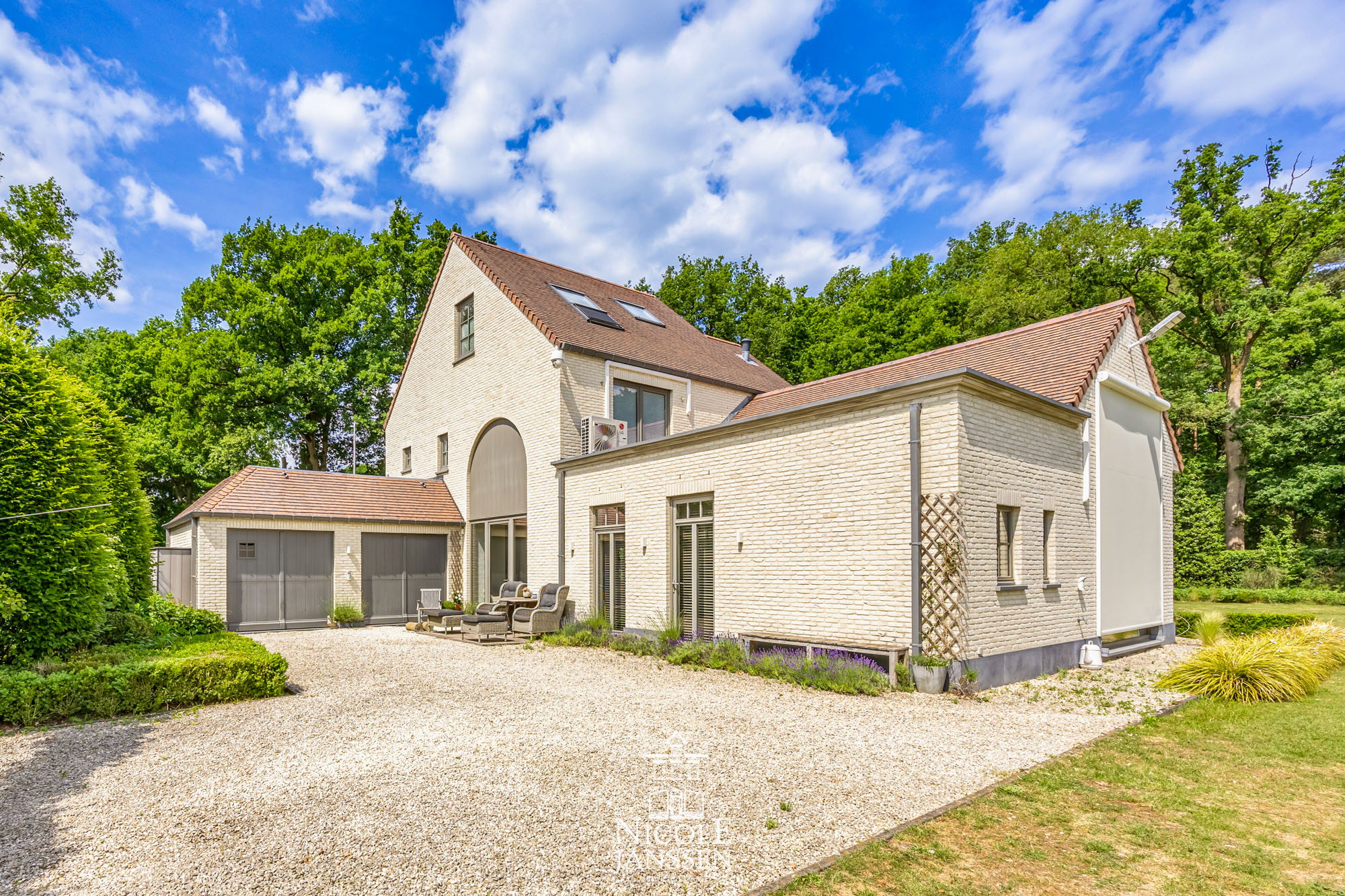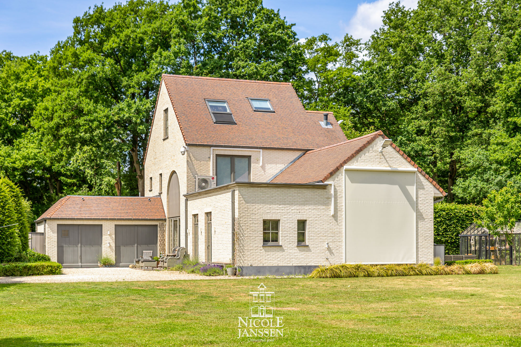 - Bijgebouw plaats voor twee wagens (+ slimme laadpaal) en een apart toilet (verwarming in garage + overdekt gedeelte)
