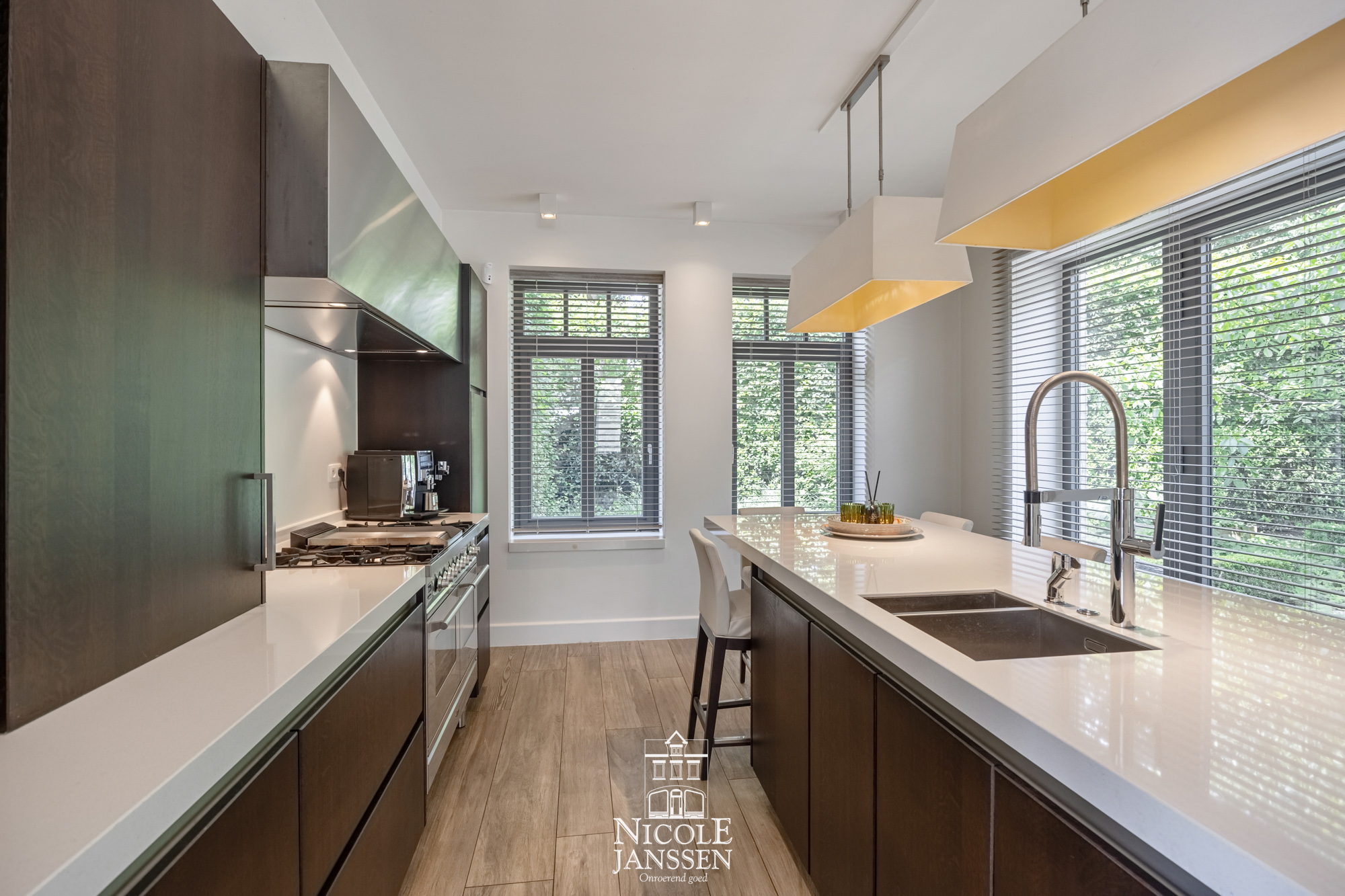 - Achterinkom en ingerichte wasplaats met maatwerk kasten