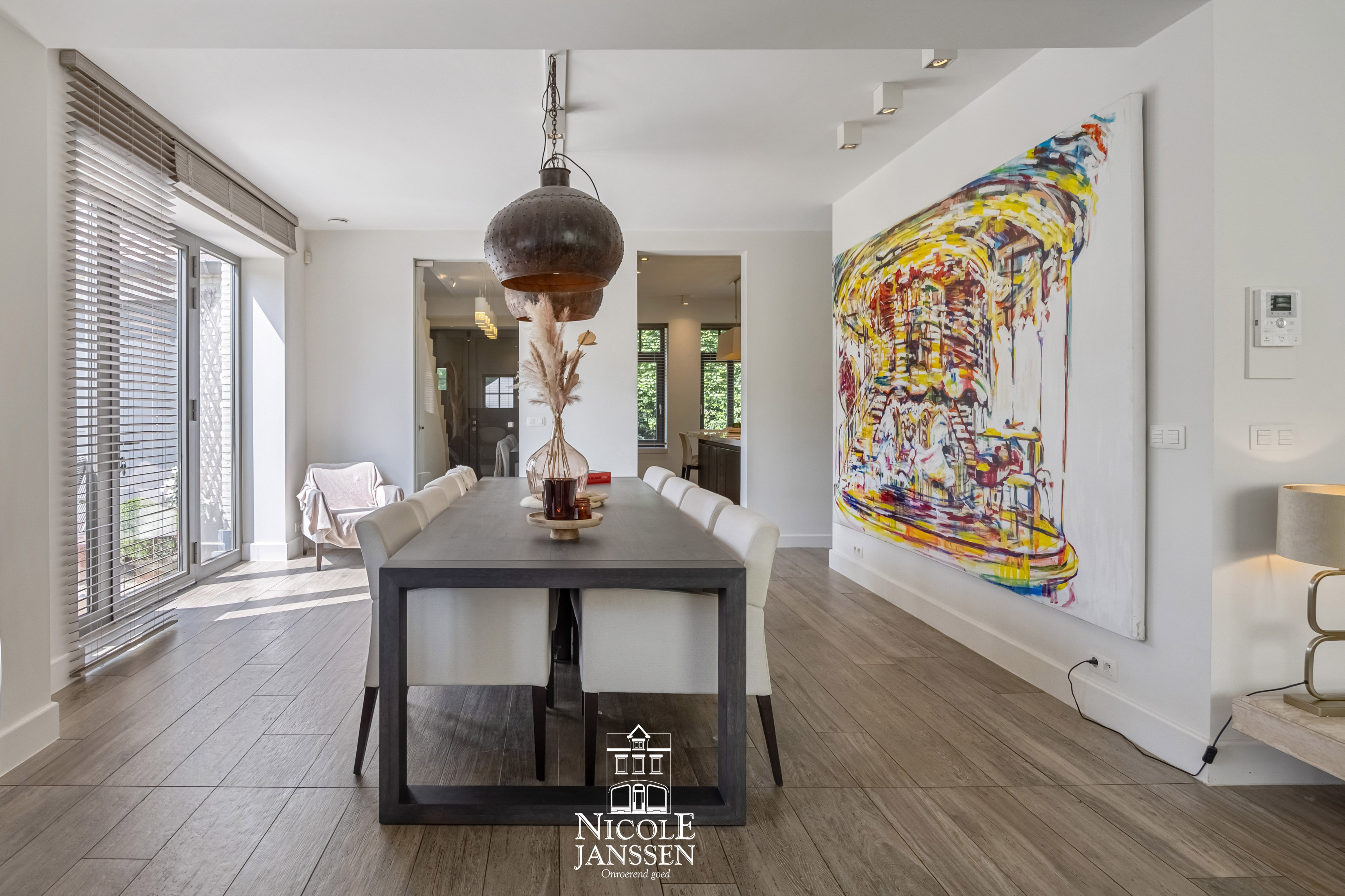- Aansluitend de eetkamer met uitzicht op de tuin, waar het heerlijk vertoeven is