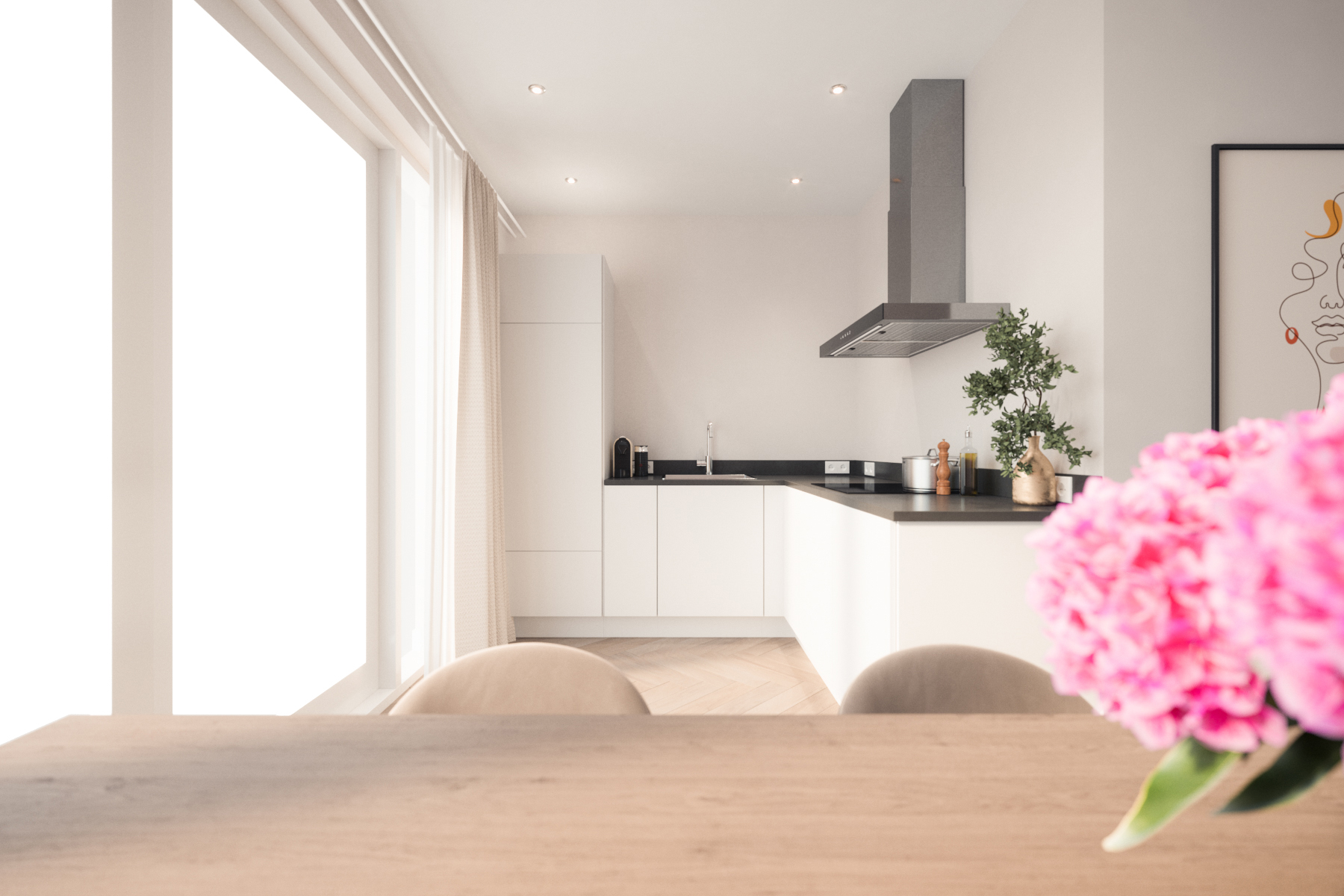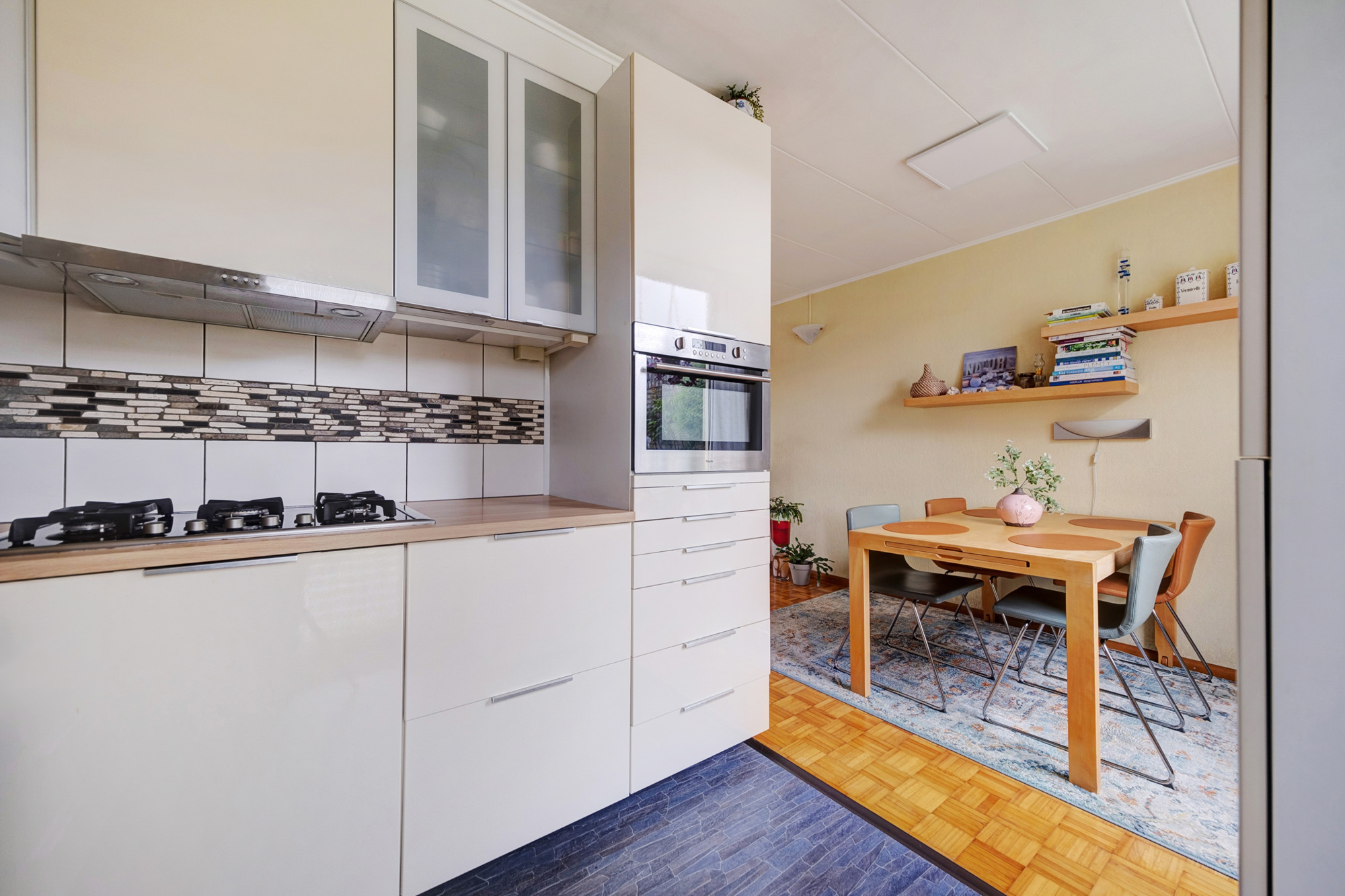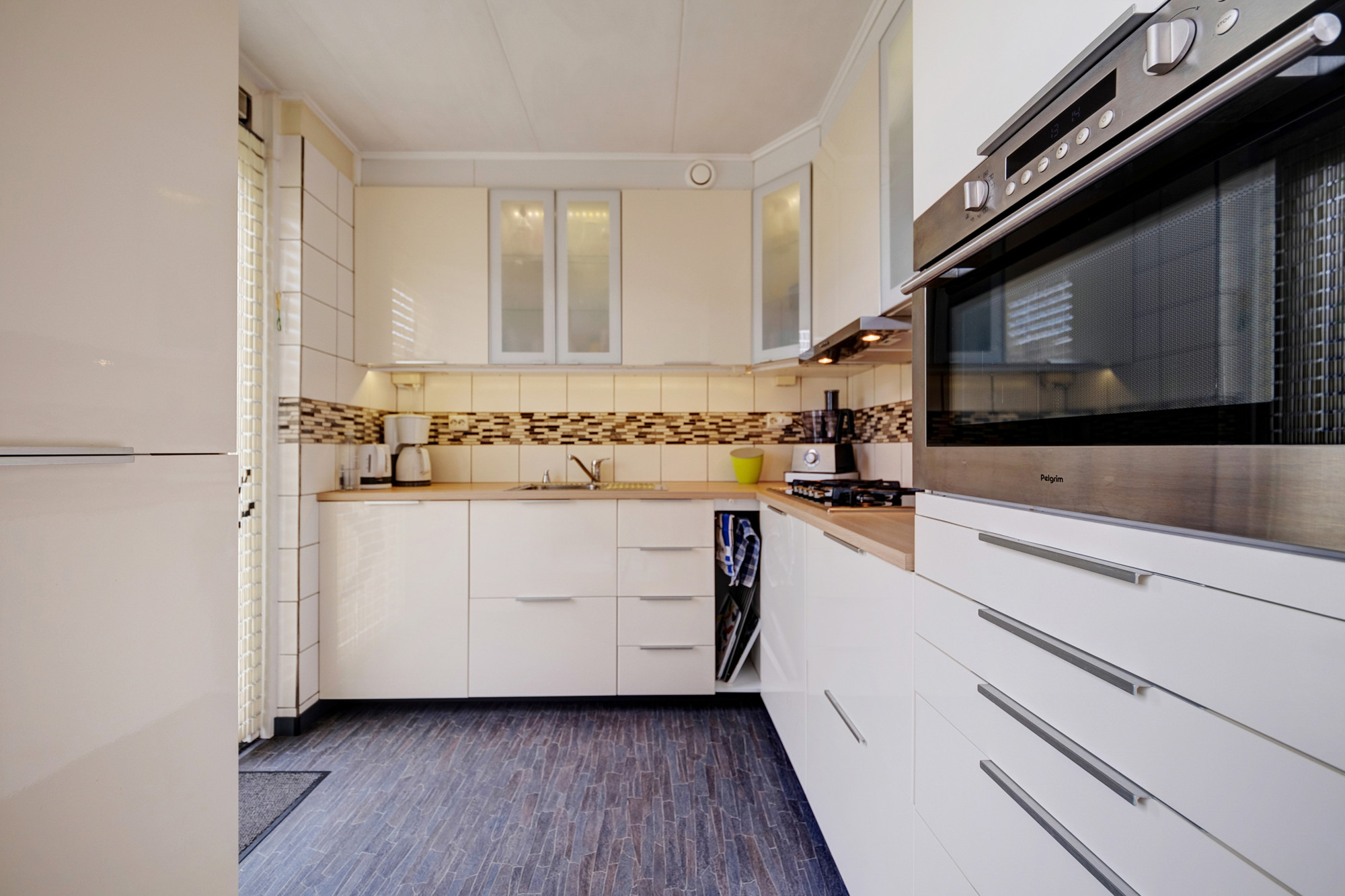 De moderne halfopen keuken, vernieuwd in 2018, is slim ontworpen in een hoekopstelling en uitgerust met hoogwaardige inbouwapparatuur: een 5-pits gasfornuis, vaatwasser, afzuigkap, koel-vriescombinatie en een combimagnetron. Vanuit de keuken heeft u bovendien directe toegang tot de achtertuin, waardoor binnen en buiten naadloos met elkaar verbonden zijn. Dit alles maakt de woning niet alleen functioneel, maar ook een aangename plek om in te leven.