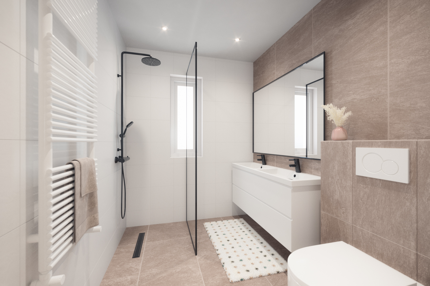 Betreed uw toekomstige thuis via de ruime oprit, die niet alleen leidt naar een praktische garage, maar ook naar de uitnodigende entree van de woning. Bij binnenkomst vindt u een handige trapberging, meterkast, en de opgang naar de bovenverdieping. Direct grenzend aan de hal bevindt zich een gastvrije living en een aparte toiletruimte, uitgerust met een toilet en een stijlvol fonteintje. De royale en lichtovergoten woonkamer vloeit naadloos over in de eetkamer en de halfopen keuken, waardoor het hart van het huis een perfecte plek is voor zowel ontspanning als entertainment.