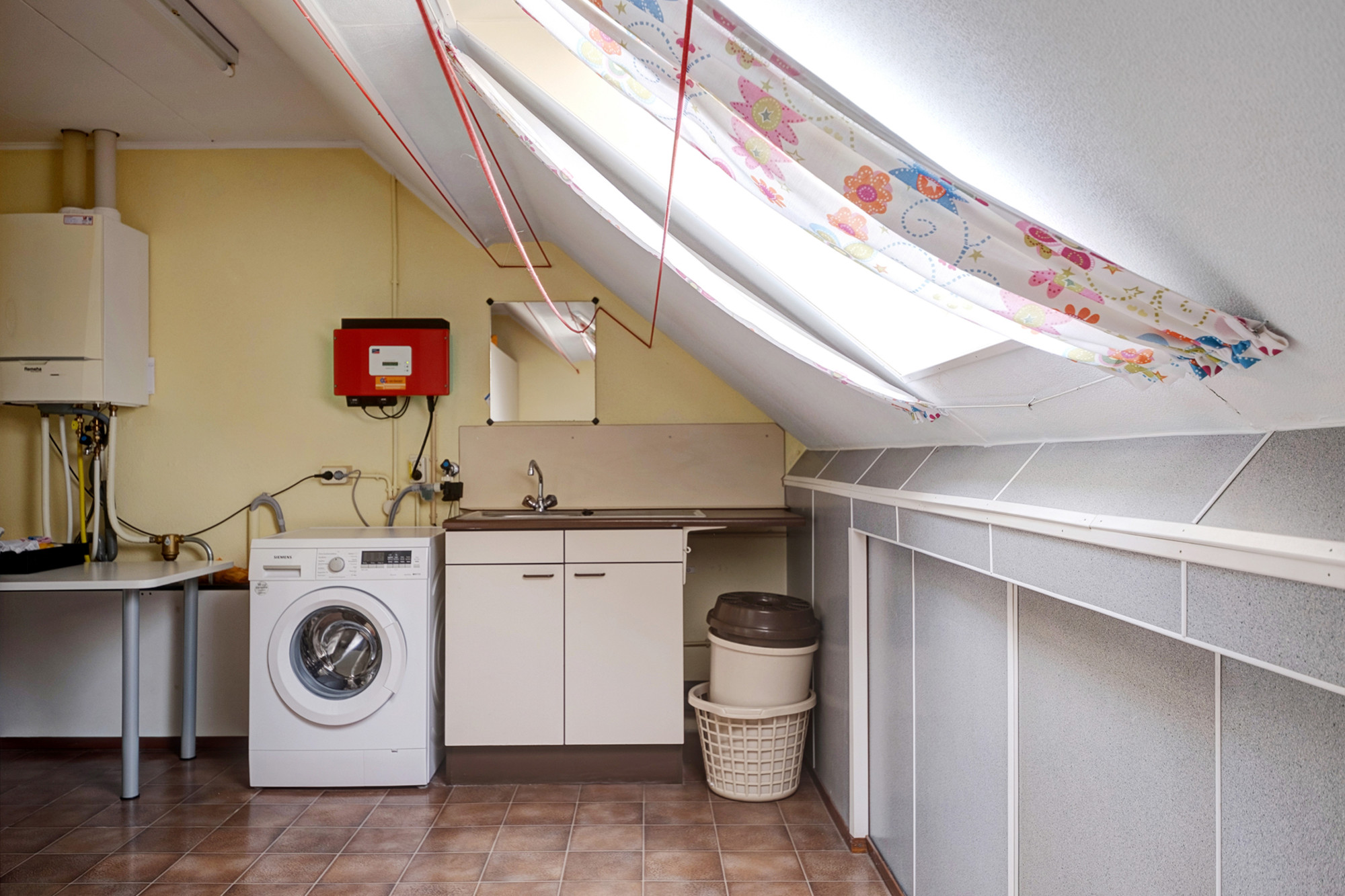 Naast de slaapkamer bevindt zich de wasruimte, uitgerust met witgoedaansluitingen en de standplaats van de Cv-installatie van het merk Remeha, wat zorgt voor een efficiënte verwarming en warmwatervoorziening van de woning.