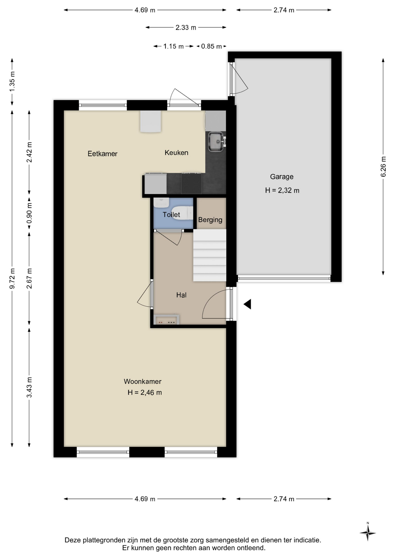 Alle door ons kantoor verstrekte informatie omtrent onroerende zaken, moet beschouwd worden als een uitnodiging om in onderhandeling te treden, en is geheel vrijblijvend! Alle vermelde maten en afmetingen zijn slechts bij benadering. Aan deze beperkte informatie kunnen geen rechten worden ontleend. Indien in enige documentatie of op enige website informatie staat die niet overeen komt met de werkelijkheid, dan geldt de feitelijke situatie waarin de woning zich bevindt, zoals koper deze tijdens de bezichtiging heeft kunnen waarnemen, en wordt de woning in deze feitelijke situatie/staat verkocht. Een (eventueel) bijgevoegde plattegrond dient uitsluitend als globale indicatie/visualisatie. Hieraan kunnen uitdrukkelijk geen rechten worden ontleend.