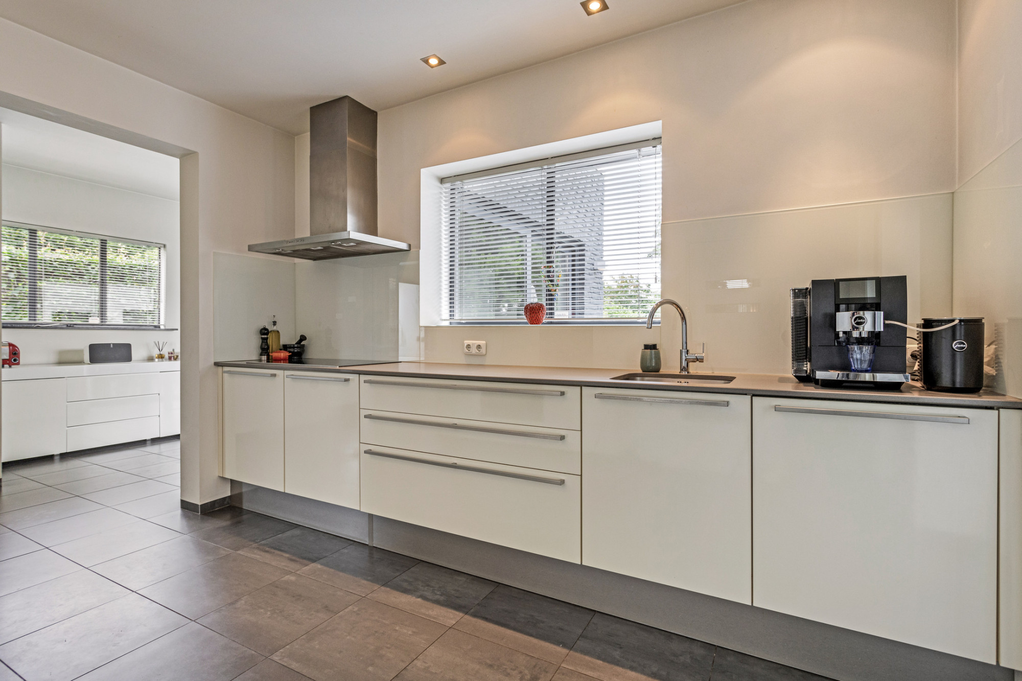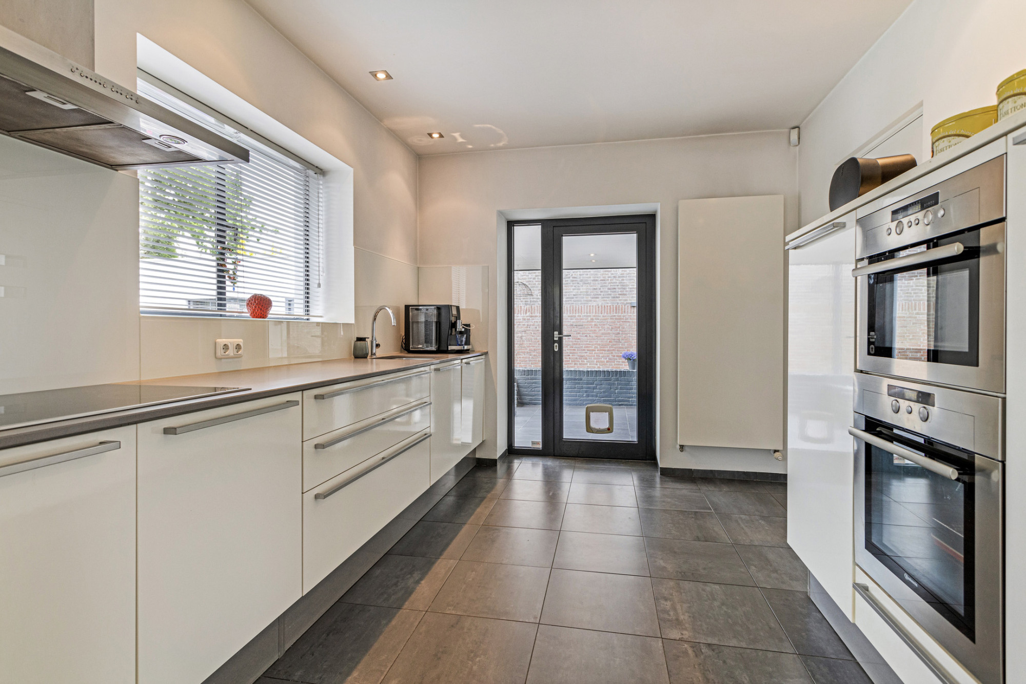 Keuken (3.72 x 2.93 m) met ruime keukeninstallatie met een composiet werkblad en vele handige vernuftige opbergmogelijkheden en inclusief inbouwapparatuur, te weten: combi oven, inductie kookplaat, RVS afzuigkap, koelkast, vaatwasser en magnetron.