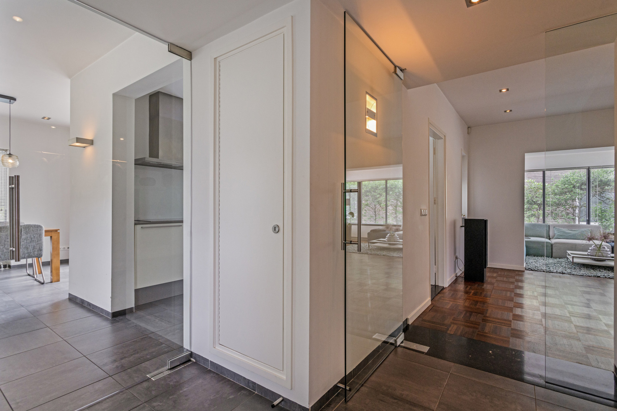 Ontvangsthal (3.22 x 2.82 m) voorzien van glazen deuren en met garderobe.